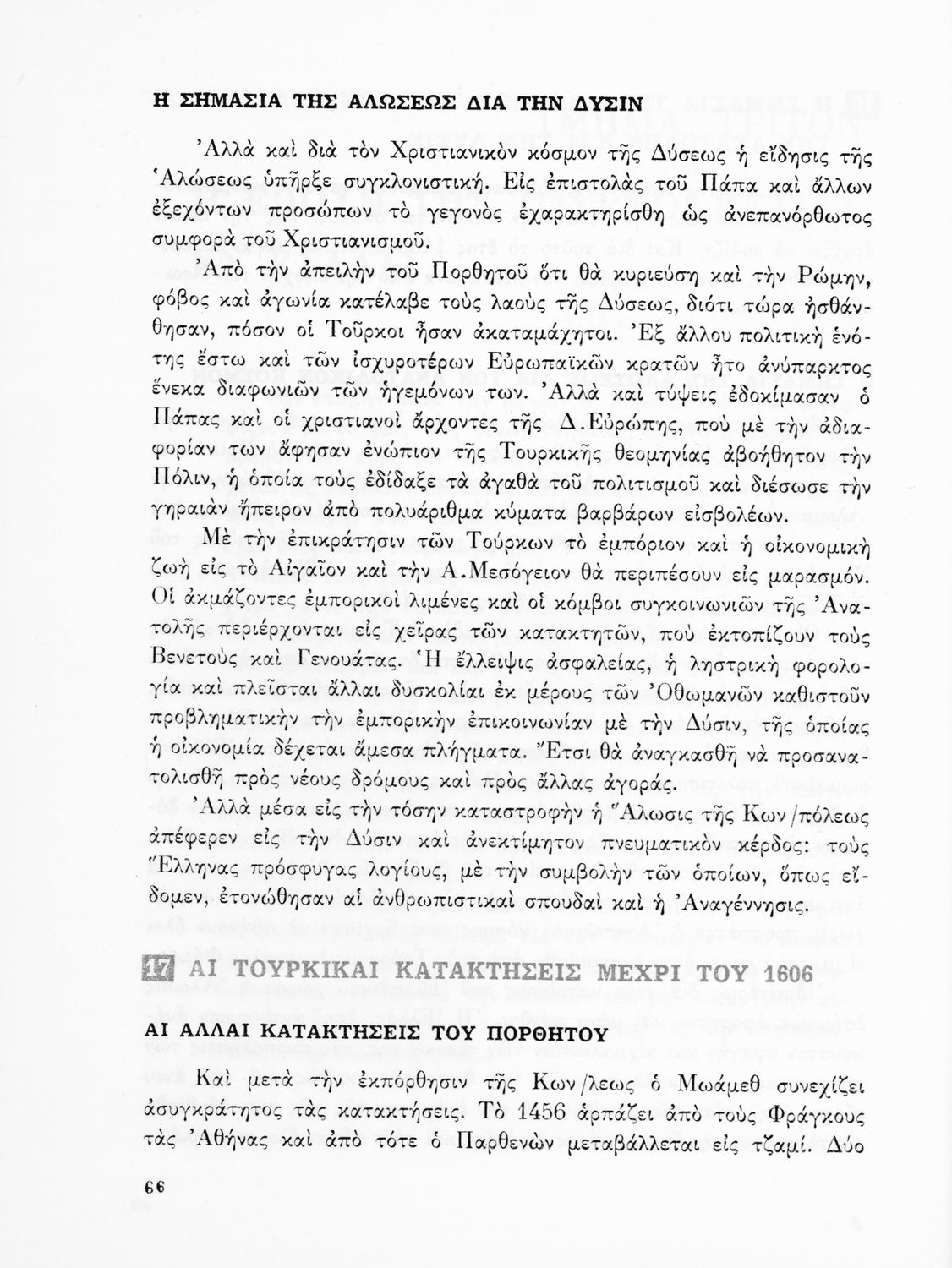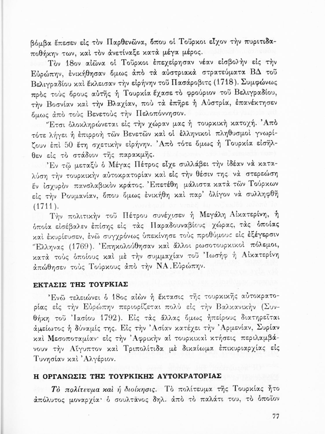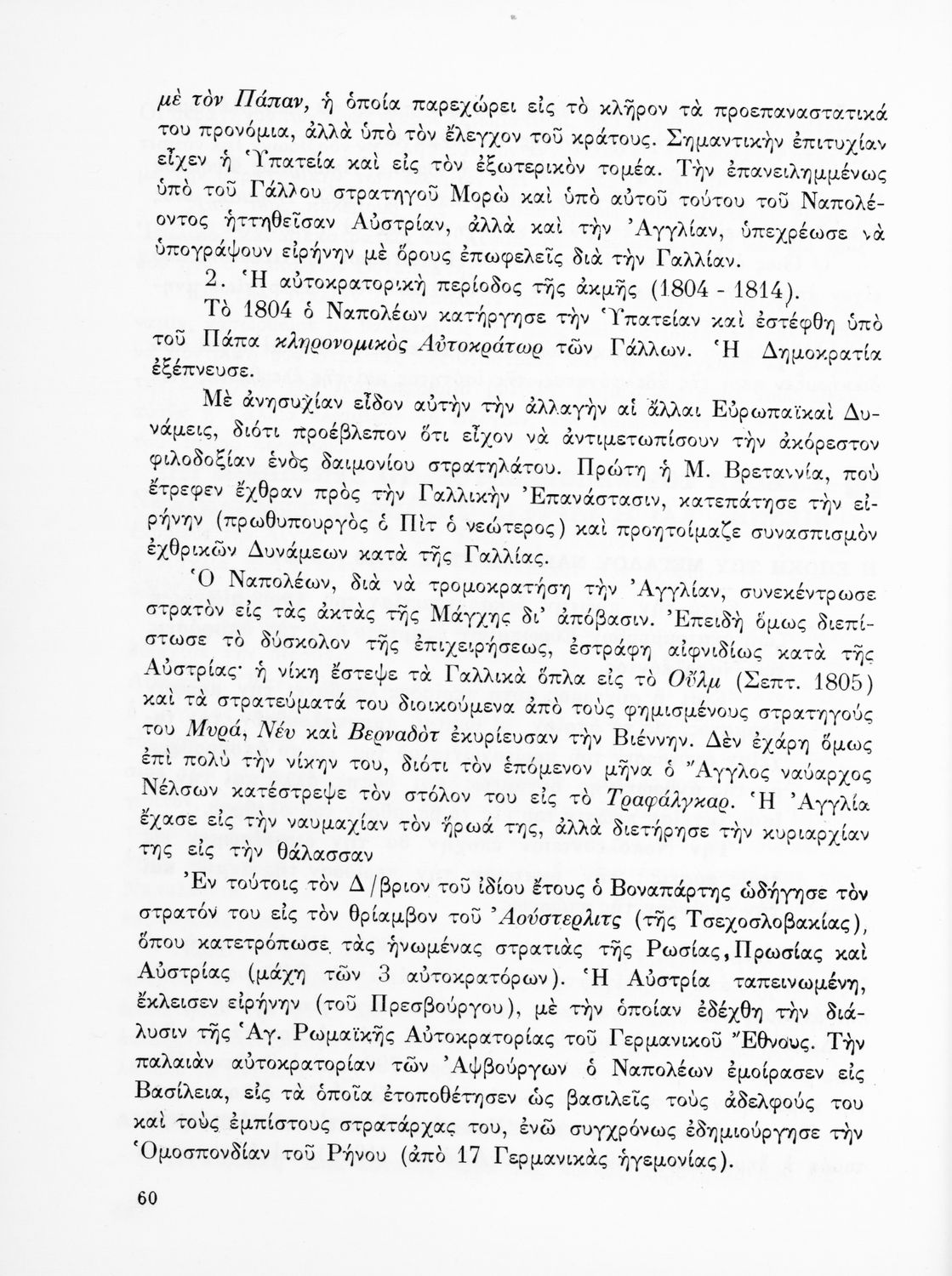Σχολικό εγχειρίδιο Ιστορίας Γ΄ Γυμνασίου που καλύπτει την περίοδο της Αναγέννησης και του Διαφωτισμού στην Ευρώπη και την προετοιμασία της Ελληνικής Επανάστασης. Συνοπτικά αναφέρεται στο διάστημα από τη βασίλεια του 'Όθωνα ως τους δύο Παγκόσμιους Πολέμους και τον Ψυχρό Πόλεμο. Παρουσιάζει και την πνευματική κίνηση κατά τον 19ο και 20ο αιώνα. Φέρει το σύμβολο της δικτατορίας.