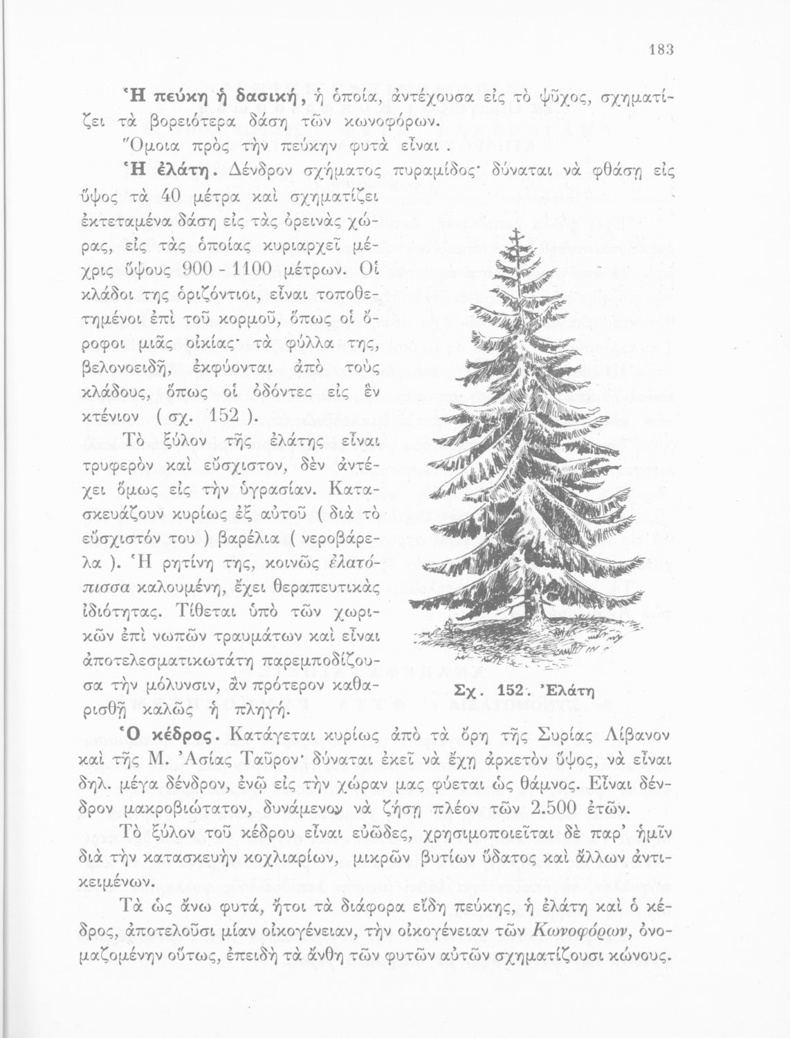Σχολικό εγχειρίδιο Φυτολογίας που εξετάζει φυτά και δέντρα της Ελλάδας ανάλογα με τη συνομοταξία στην οποία ανήκουν και παρέχει πληροφορίες για την αναπαραγωγή τους και τη χρησιμότητά τους για τον άνθρωπο.