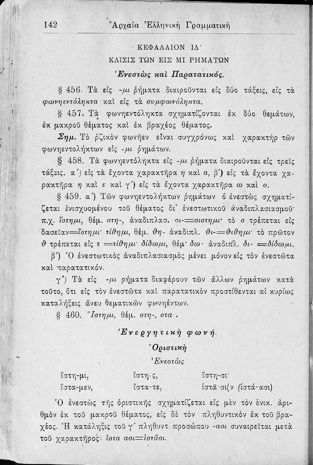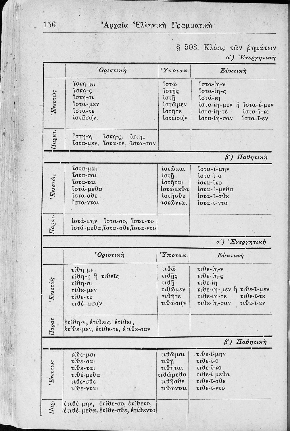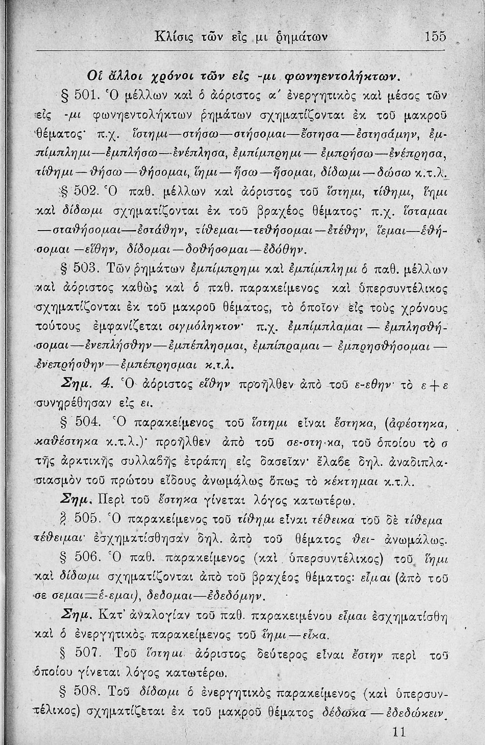 Σχολικό εγχειρίδιο Αρχαίων Ελληνικών για τα Ελληνικά Σχολεία, Παρθεναγωγεία και Γυμνάσια που περιέχει τους κανόνες γραμματικής και είναι χωρισμένο σε φθογγολογικό, τυπολογικό και ετυμολογικό μέρος.