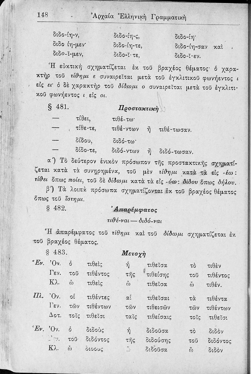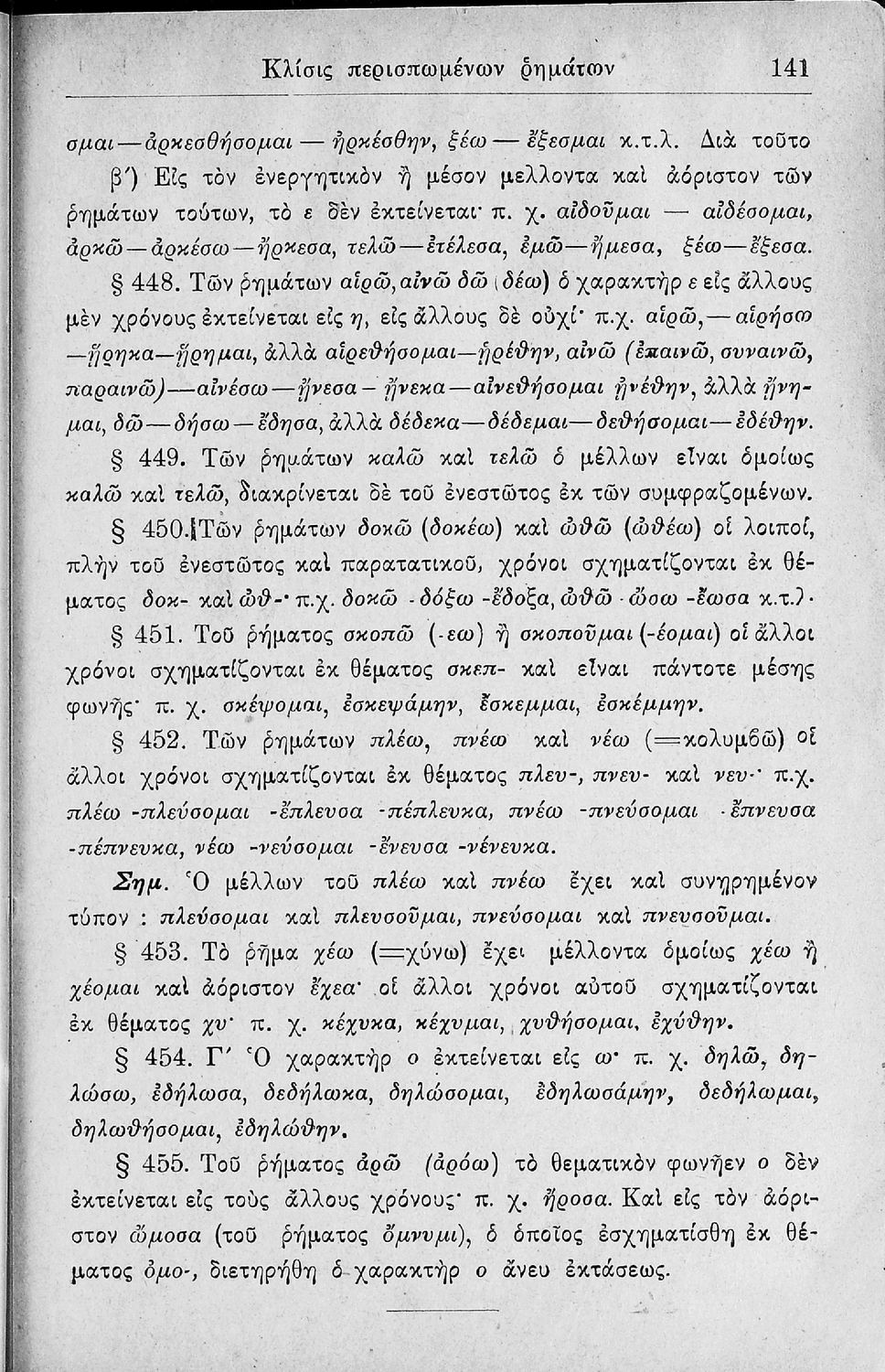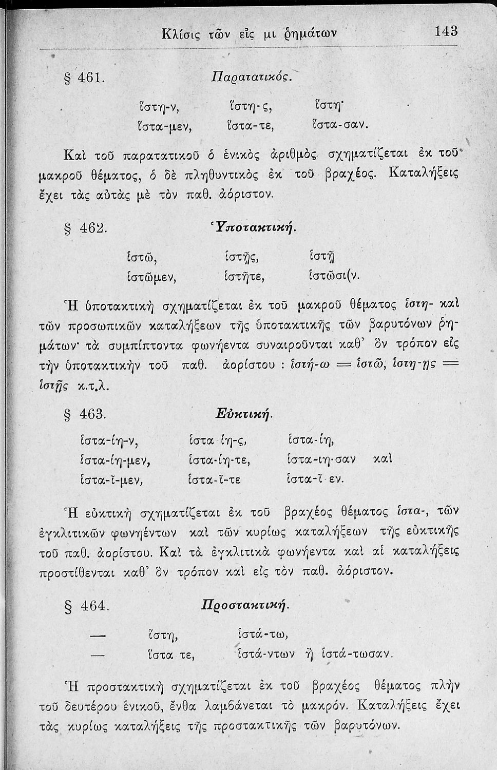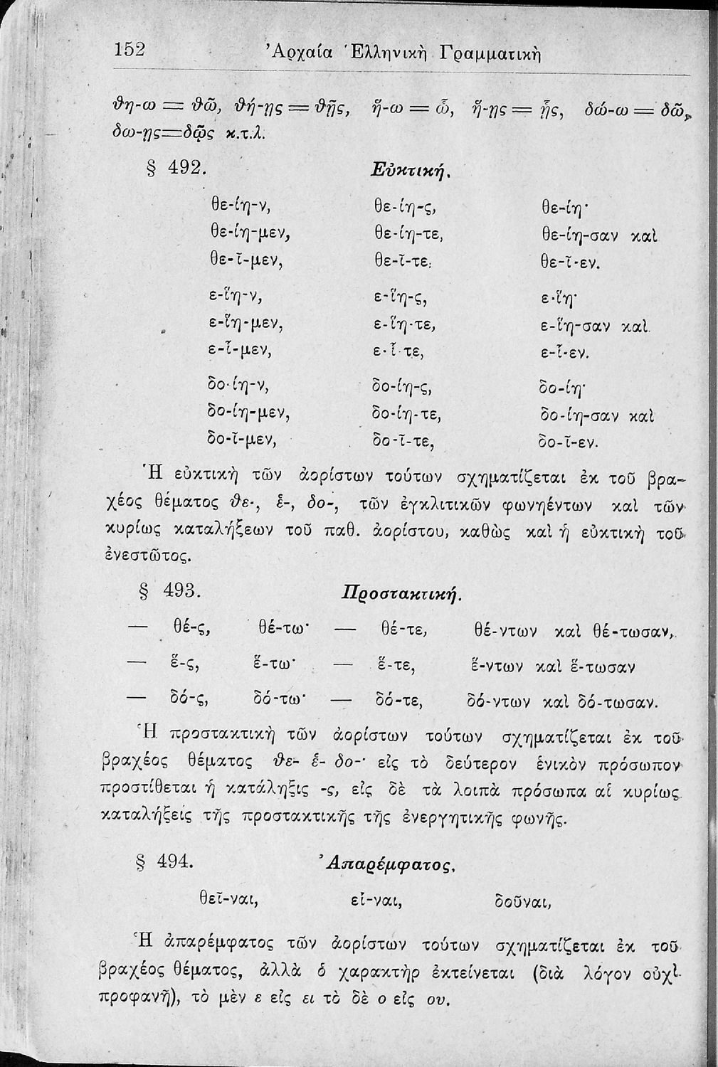 Σχολικό εγχειρίδιο Αρχαίων Ελληνικών για τα Ελληνικά Σχολεία, Παρθεναγωγεία και Γυμνάσια που περιέχει τους κανόνες γραμματικής και είναι χωρισμένο σε φθογγολογικό, τυπολογικό και ετυμολογικό μέρος.