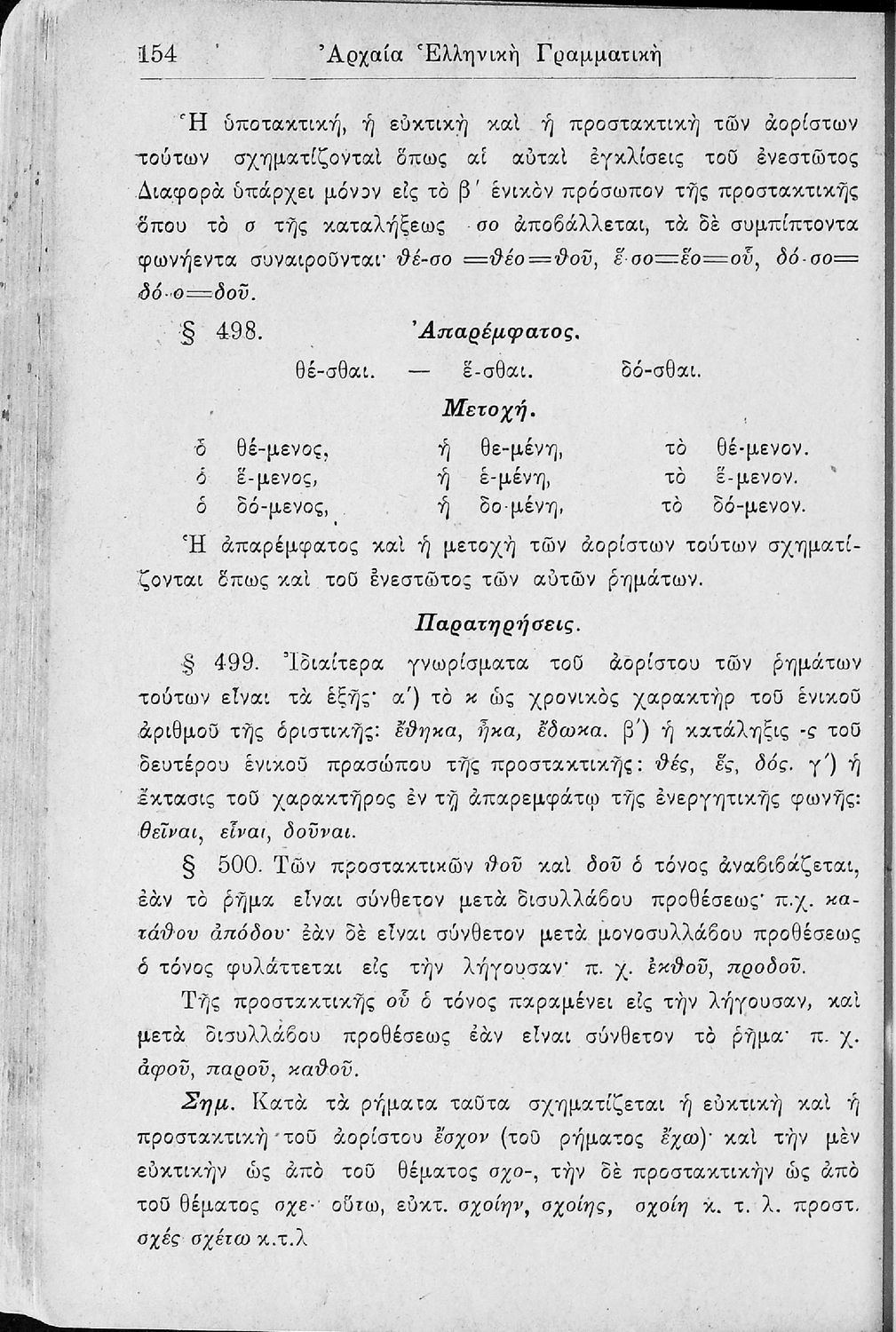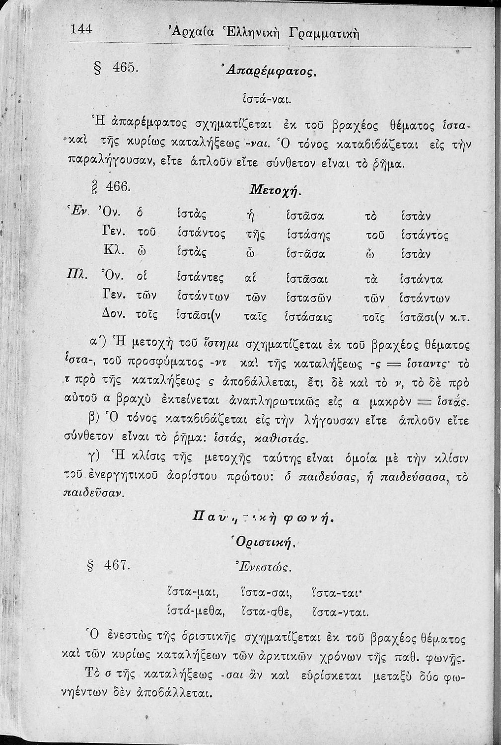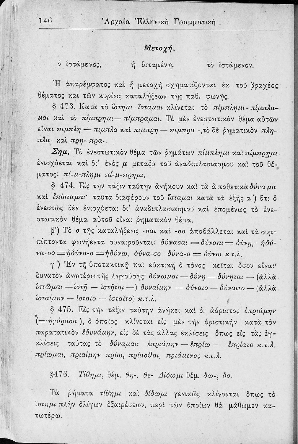 Σχολικό εγχειρίδιο Αρχαίων Ελληνικών για τα Ελληνικά Σχολεία και Παρθεναγωγεία που περιλαμβάνει κανόνες της γραμματικής της αρχαίας ελληνικής και είναι χωρισμένη στο φθογγολογικό και στο τυπολογικό μέρος.