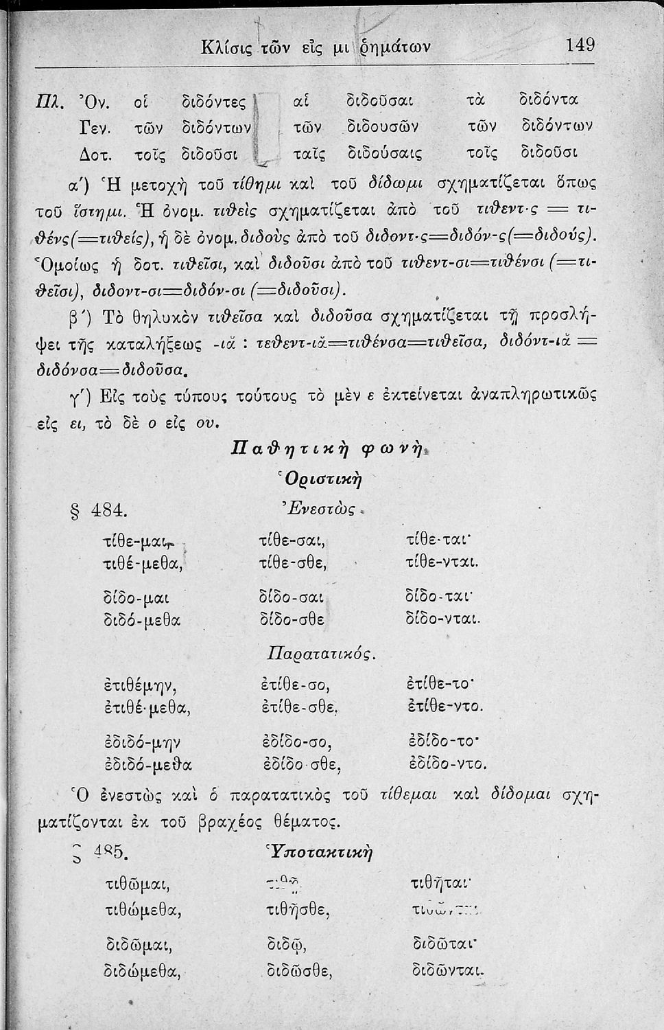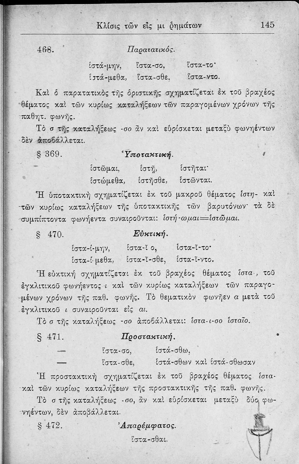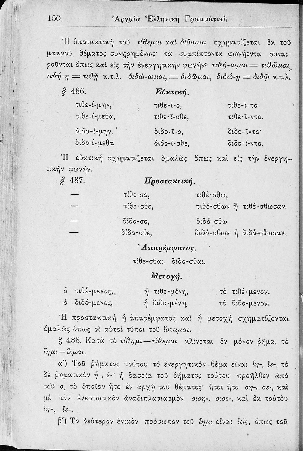 Σχολικό εγχειρίδιο Αρχαίων Ελληνικών για τα Ελληνικά Σχολεία και Παρθεναγωγεία που περιλαμβάνει κανόνες της γραμματικής της αρχαίας ελληνικής και είναι χωρισμένη στο φθογγολογικό και στο τυπολογικό μέρος.