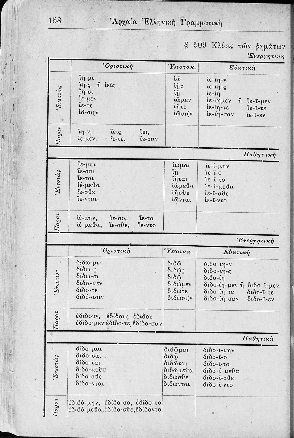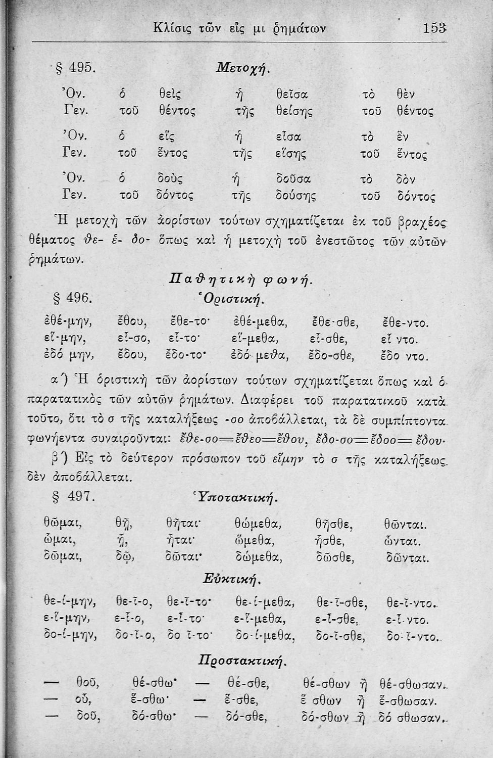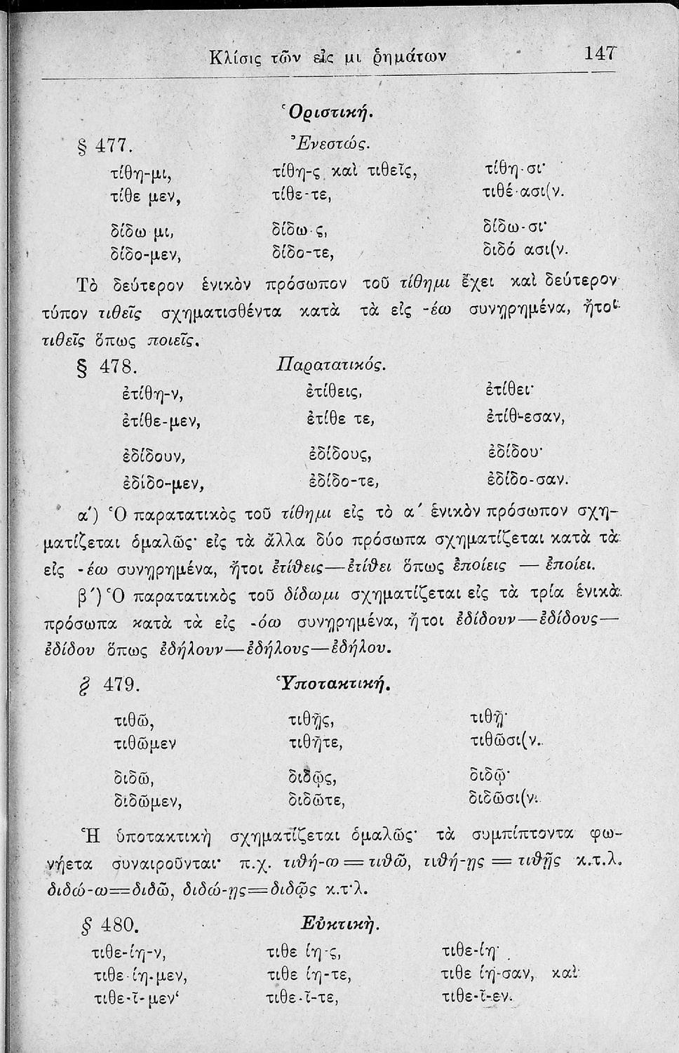 Μαθητικό βοήθημα Αρχαίων Ελληνικών για τα Ελληνικά Σχολεία, Παρθεναγωγεία και Γυμνάσια που περιλαμβάνει γραμματική της αρχαίας ελληνικής και κατάλογο ανωμάλων ρημάτων.