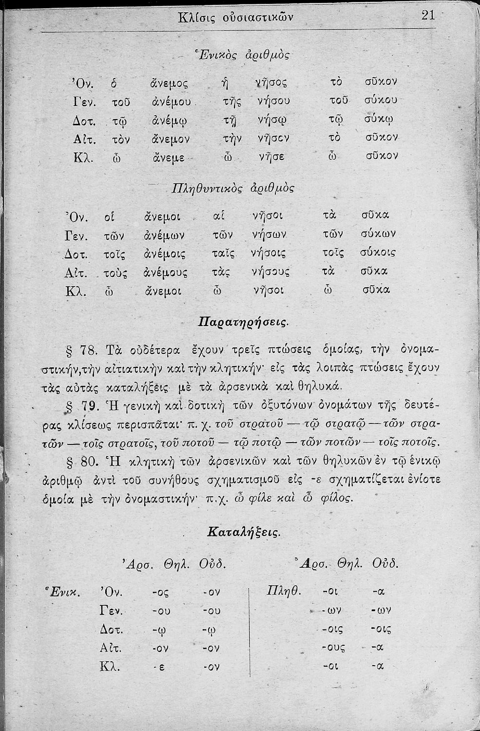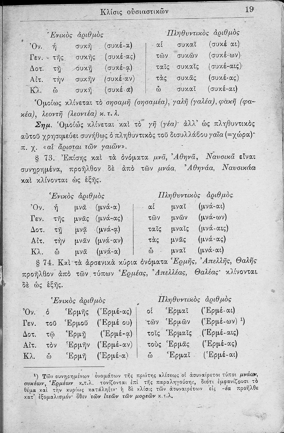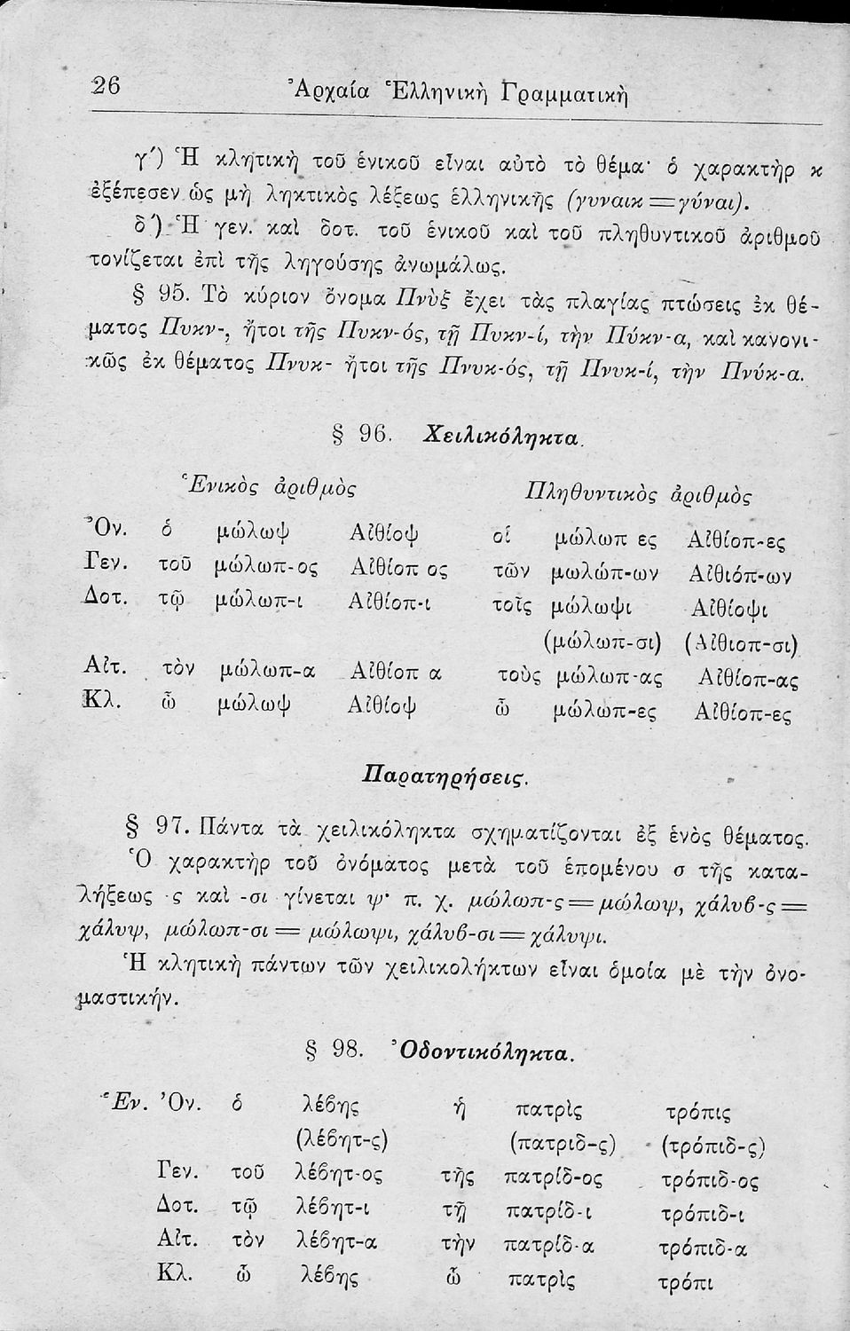 Σχολικό εγχειρίδιο Αρχαίων Ελληνικών για τα Ελληνικά Σχολεία και Παρθεναγωγεία που περιλαμβάνει κανόνες της γραμματικής της αρχαίας ελληνικής και είναι χωρισμένη στο φθογγολογικό και στο τυπολογικό μέρος.