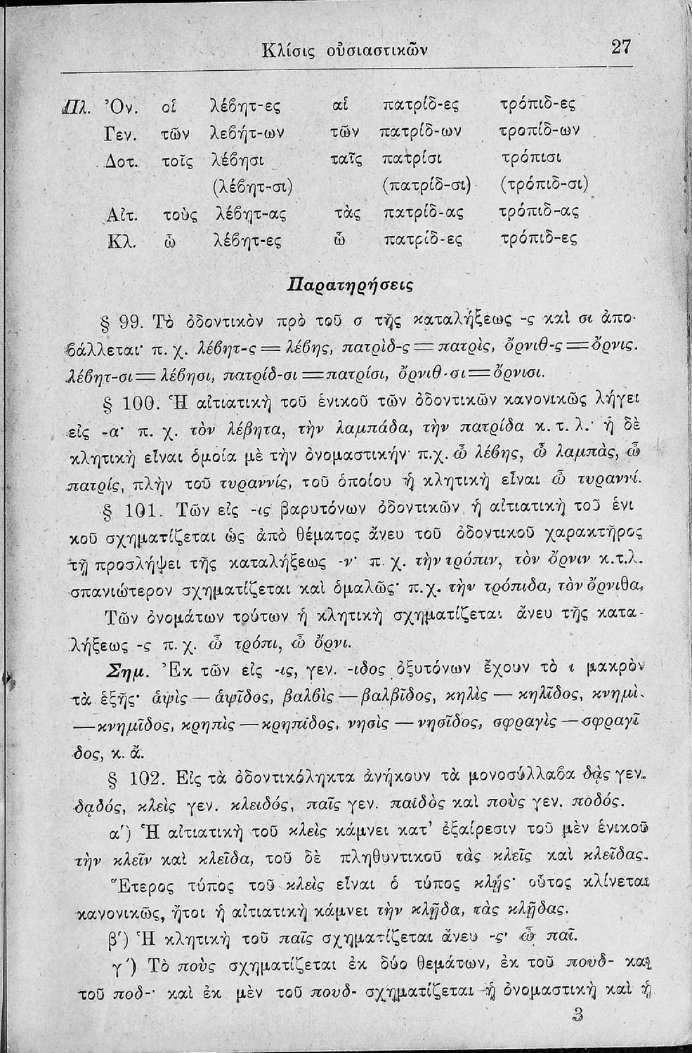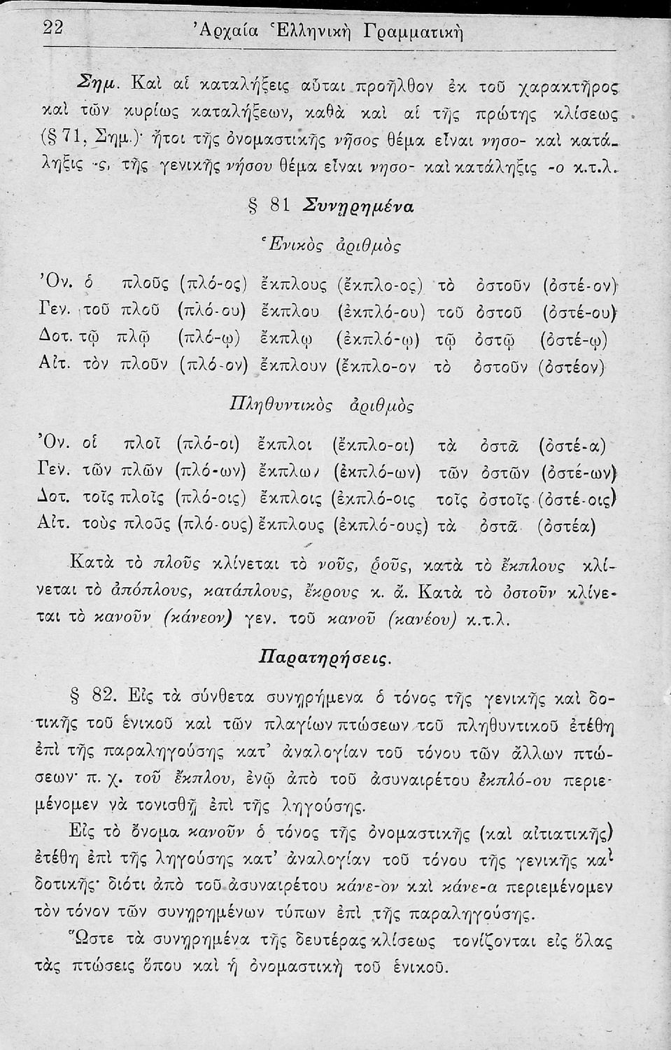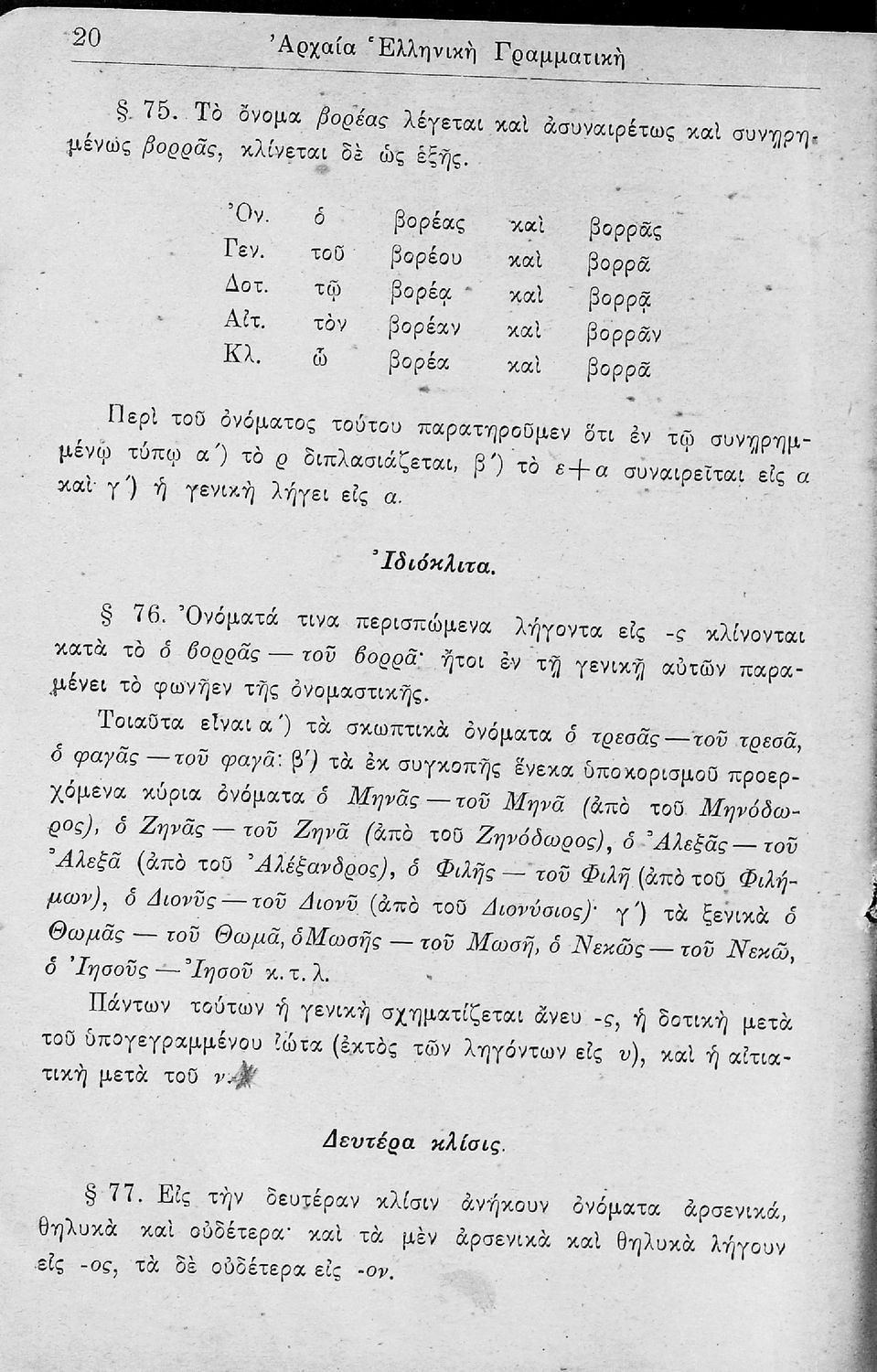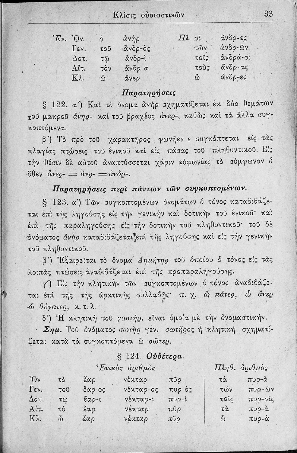 Σχολικό εγχειρίδιο Αρχαίων Ελληνικών για τα Ελληνικά Σχολεία και Παρθεναγωγεία που περιλαμβάνει κανόνες της γραμματικής της αρχαίας ελληνικής και είναι χωρισμένη στο φθογγολογικό και στο τυπολογικό μέρος.