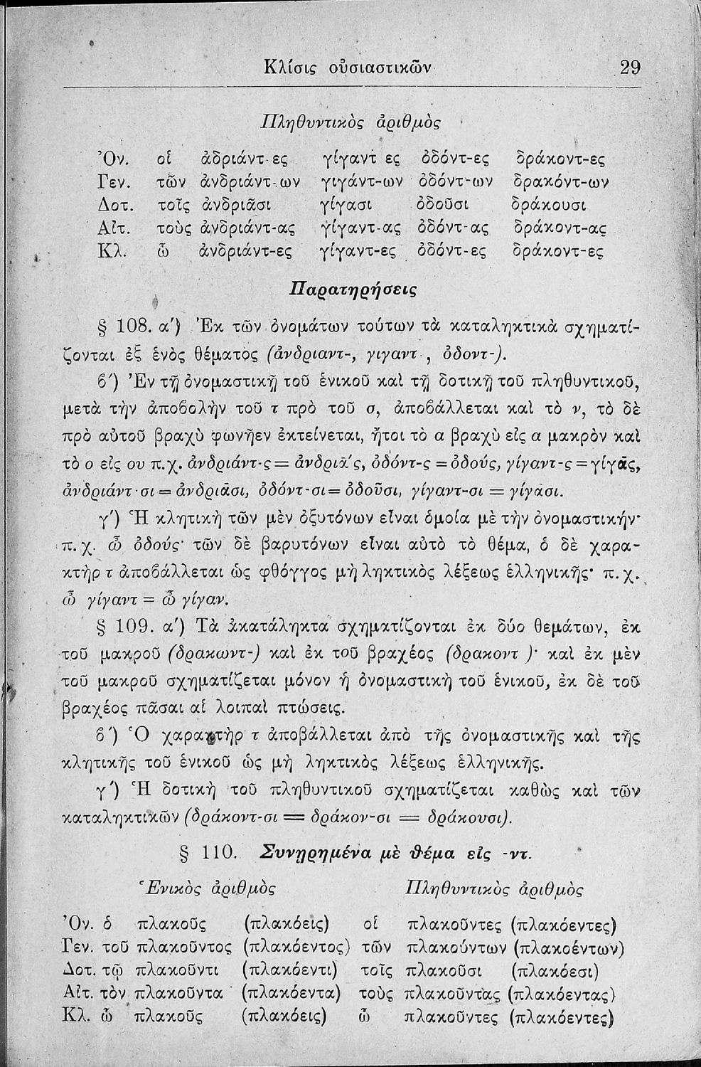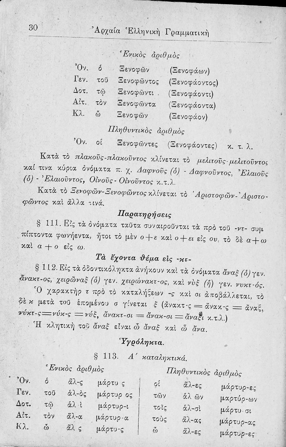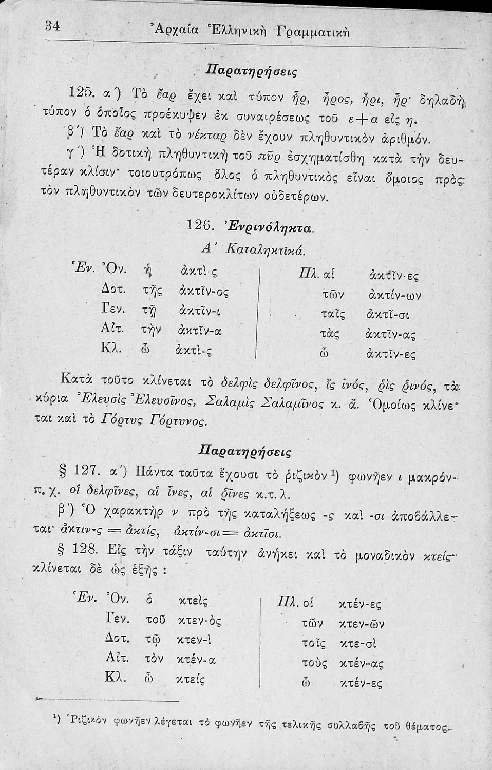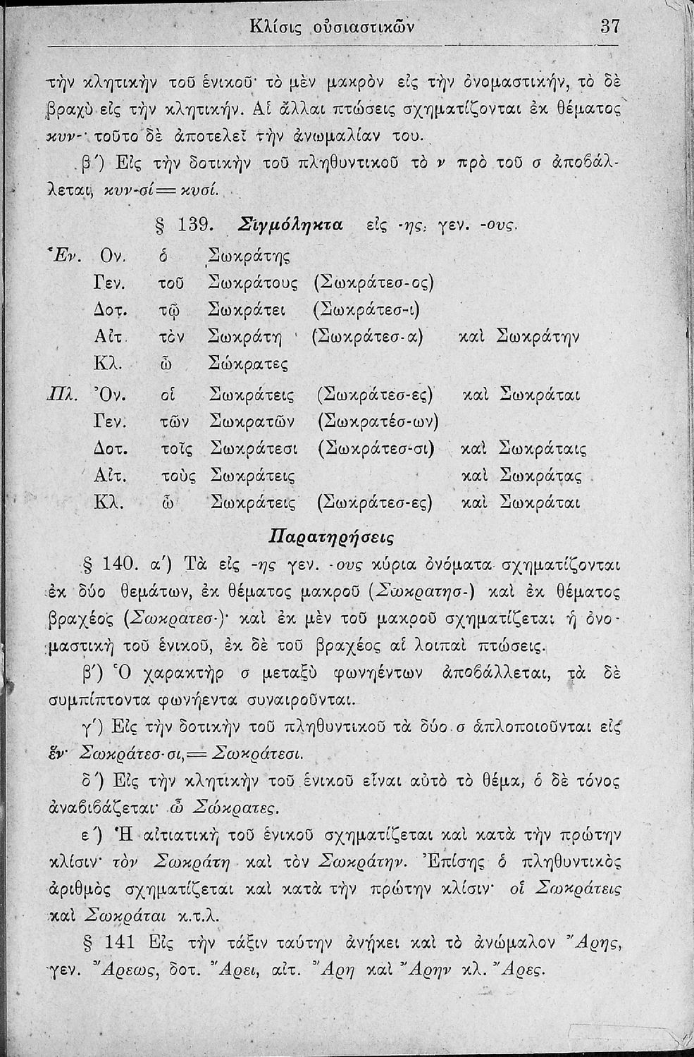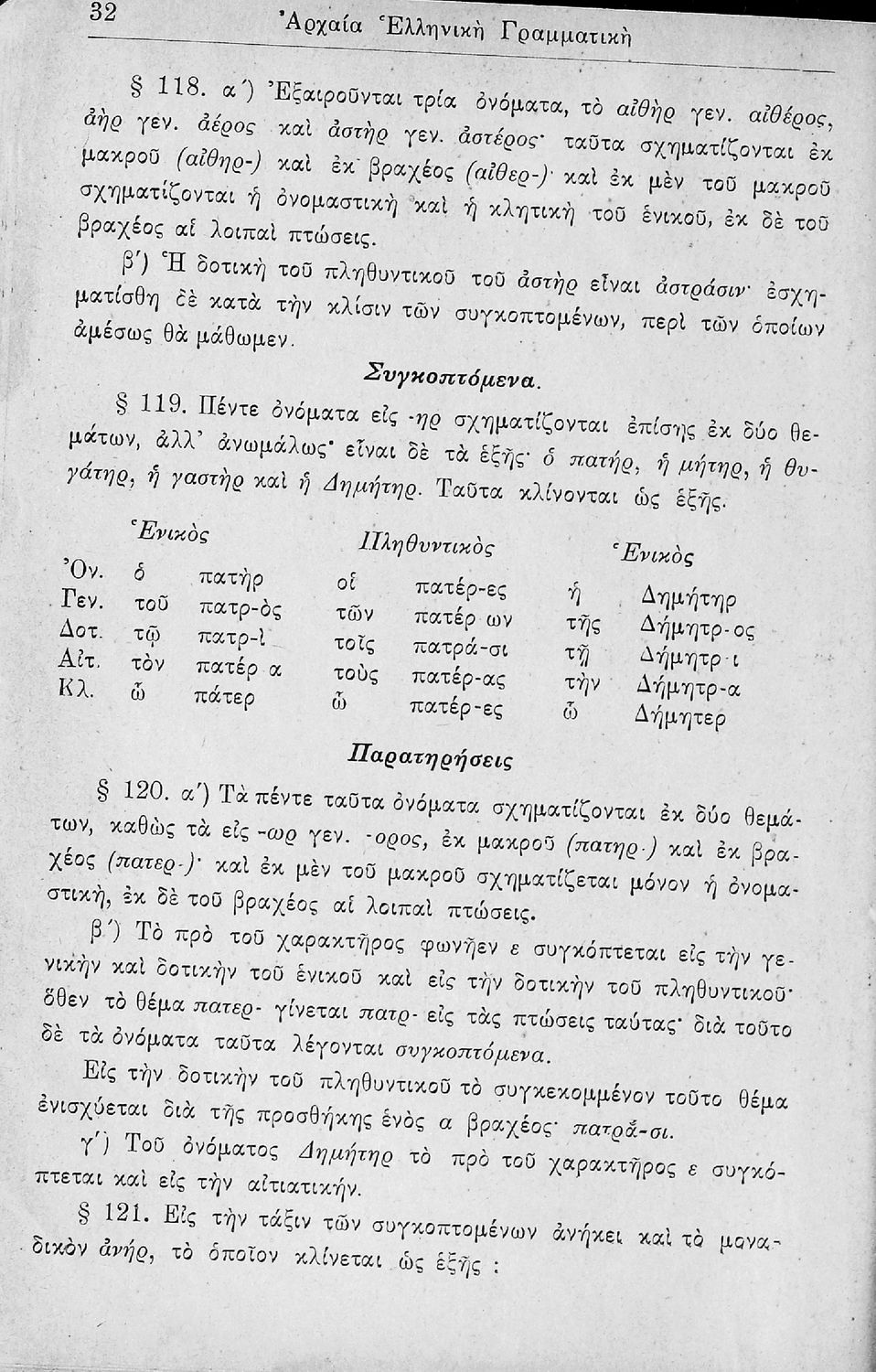Σχολικό εγχειρίδιο Αρχαίων Ελληνικών για τα Ελληνικά Σχολεία, Παρθεναγωγεία και Γυμνάσια που περιέχει τους κανόνες γραμματικής και είναι χωρισμένο σε φθογγολογικό, τυπολογικό και ετυμολογικό μέρος.