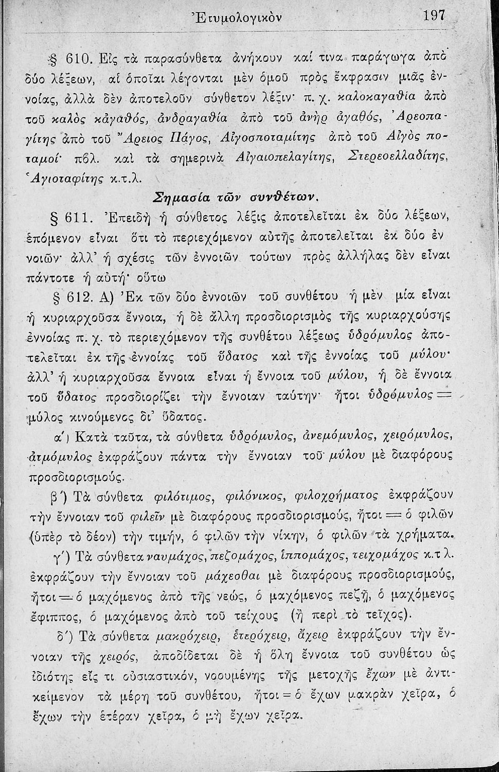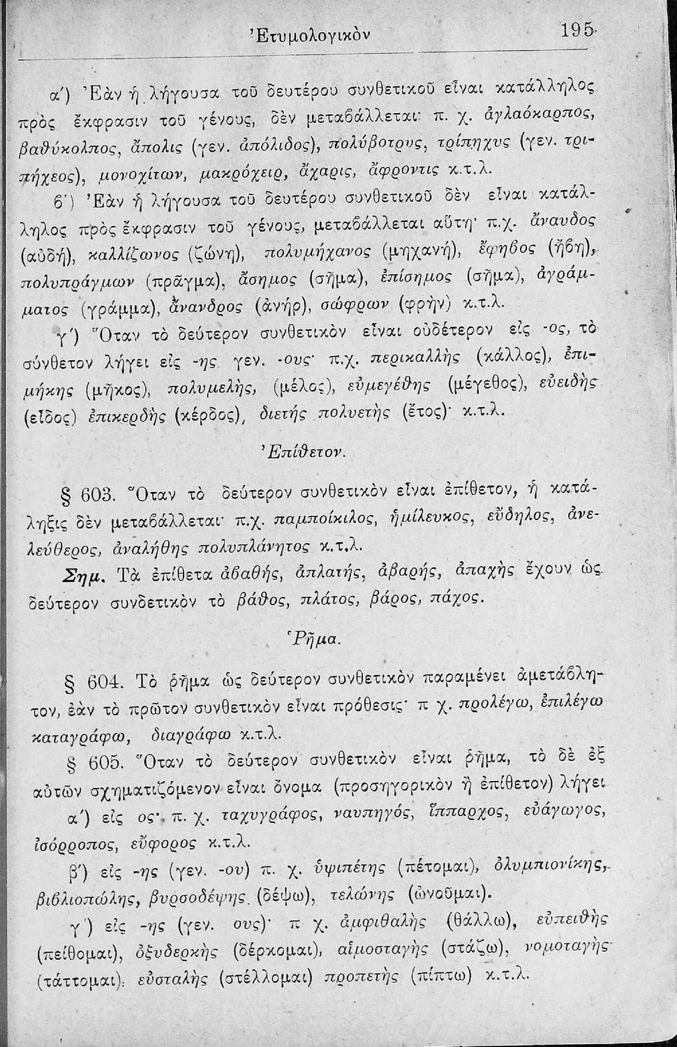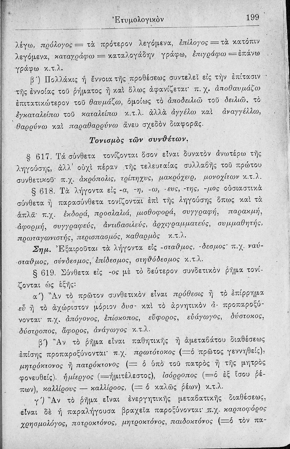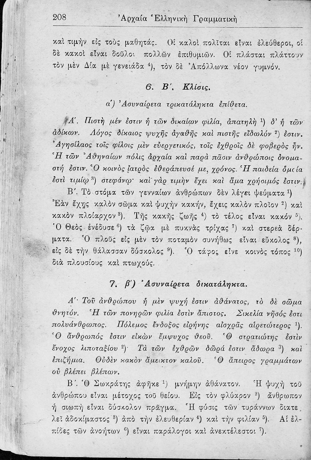 Σχολικό εγχειρίδιο Αρχαίων Ελληνικών για τα Ελληνικά Σχολεία, Παρθεναγωγεία και Γυμνάσια που περιέχει τους κανόνες γραμματικής και είναι χωρισμένο σε φθογγολογικό, τυπολογικό και ετυμολογικό μέρος.