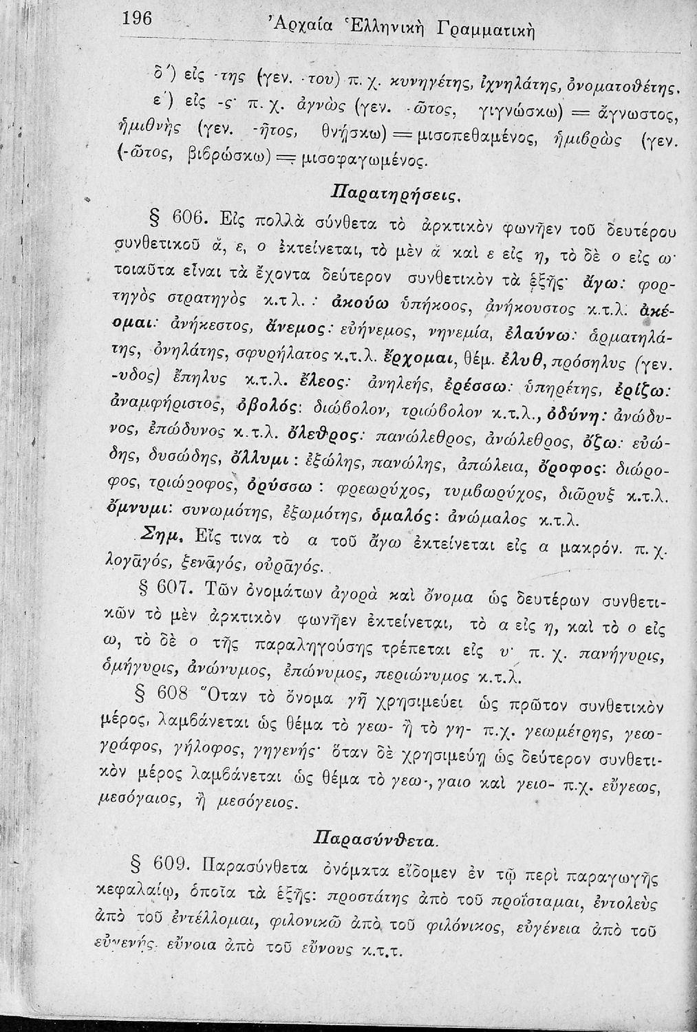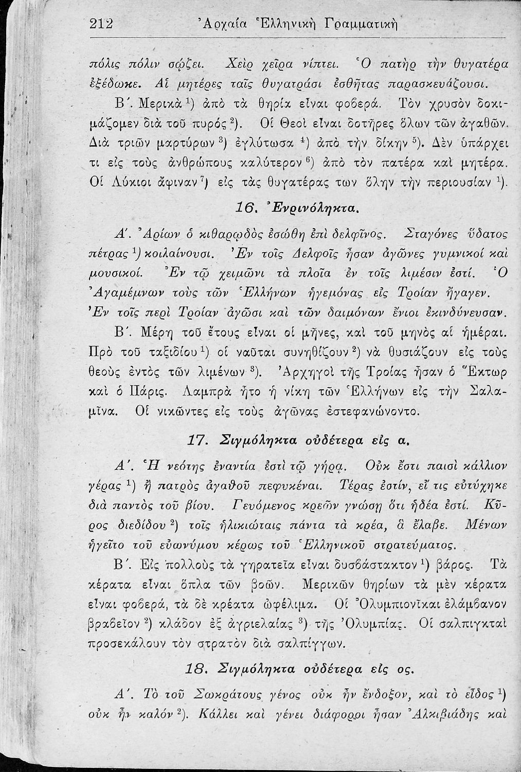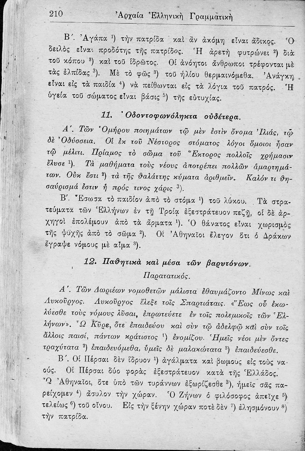 Σχολικό εγχειρίδιο Αρχαίων Ελληνικών για τα Ελληνικά Σχολεία και Παρθεναγωγεία που περιλαμβάνει κανόνες της γραμματικής της αρχαίας ελληνικής και είναι χωρισμένη στο φθογγολογικό και στο τυπολογικό μέρος.