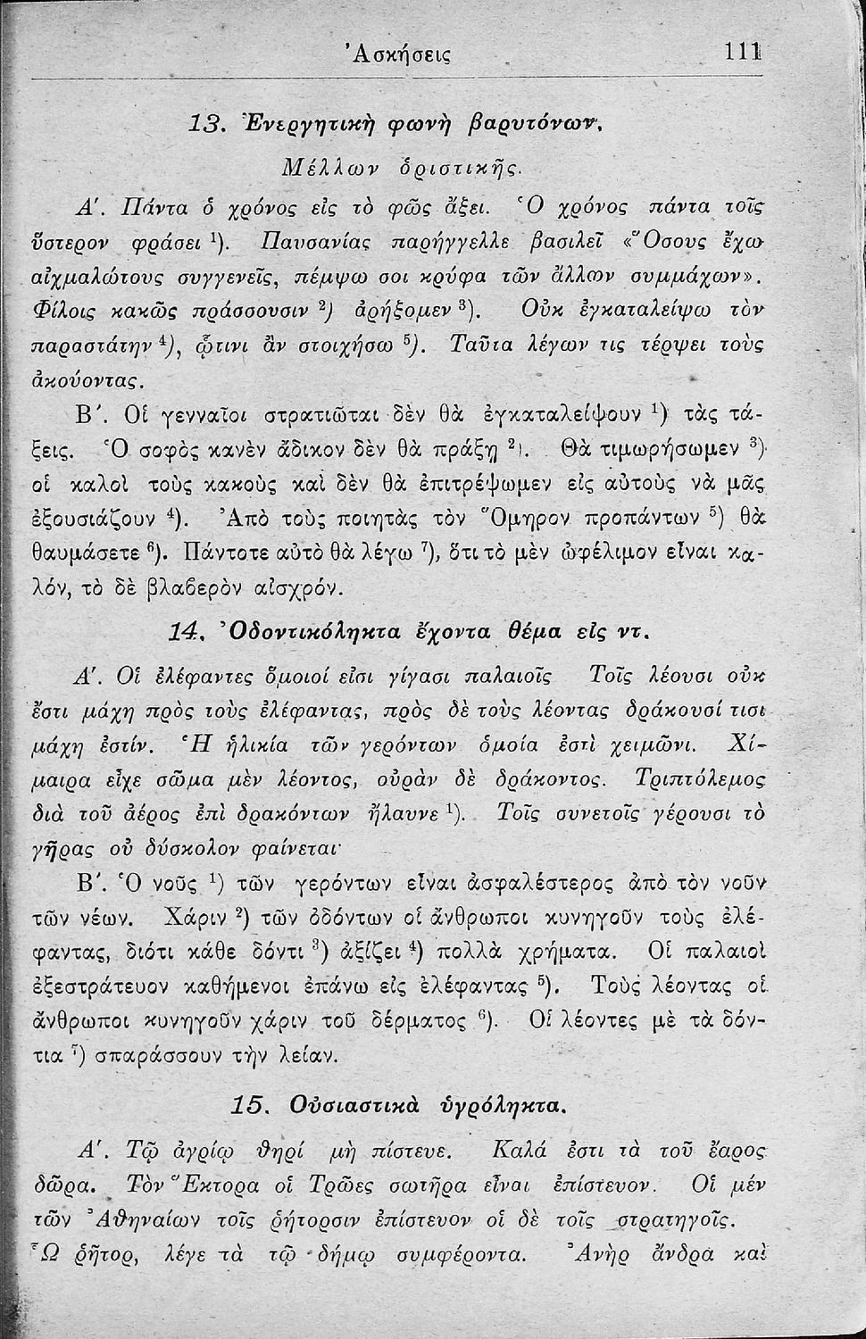 Σχολικό εγχειρίδιο Αρχαίων Ελληνικών για τα Ελληνικά Σχολεία που αποτελεί γραμματική της αρχαίας ελληνικής και είναι χωρισμένο στο φθογγολογικό και το τυπολογικό μέρος. Περιέχει και σύντομα κείμενα που χρησιμοποιούνται για τη διδασκαλία των γραμματικών φαινομένων και ασκήσεις.