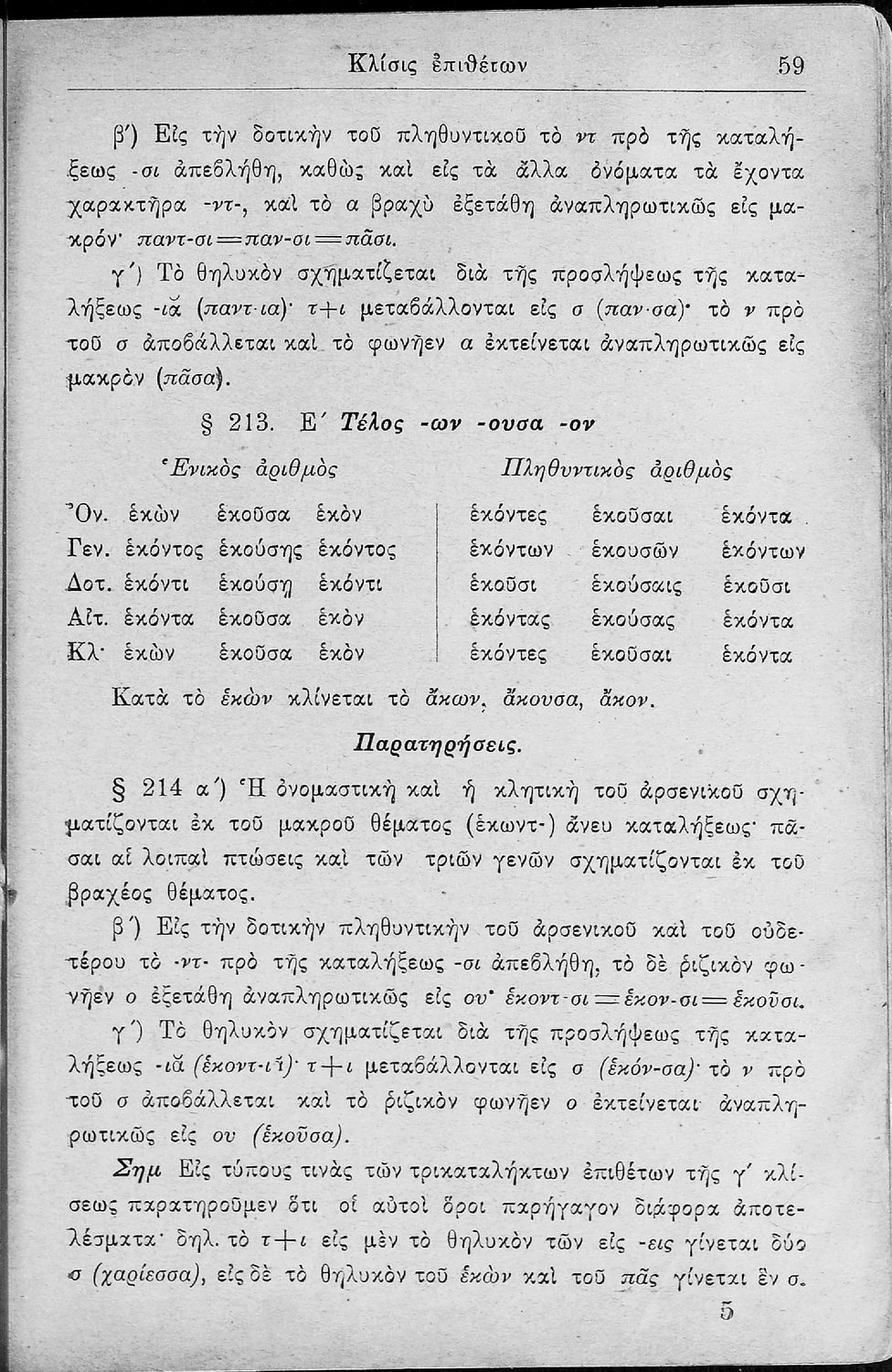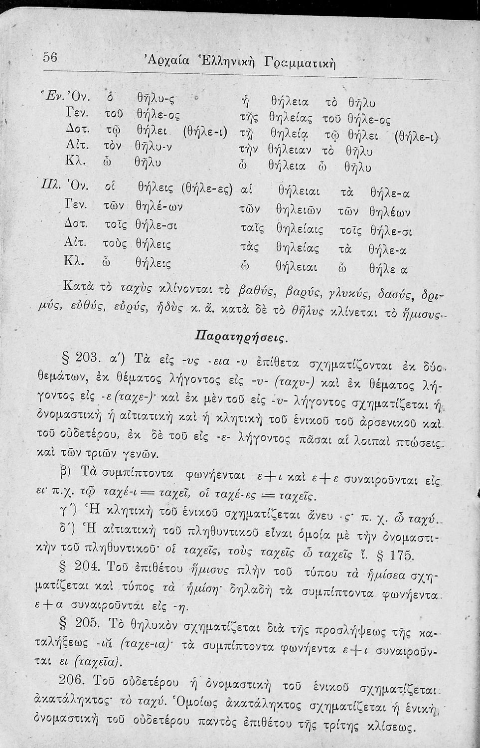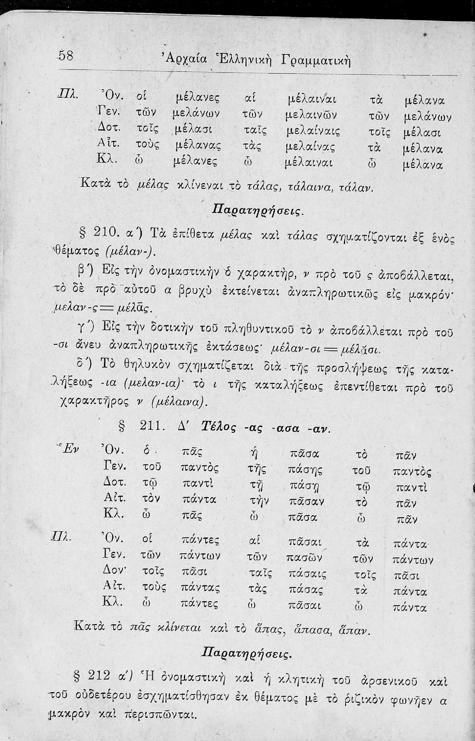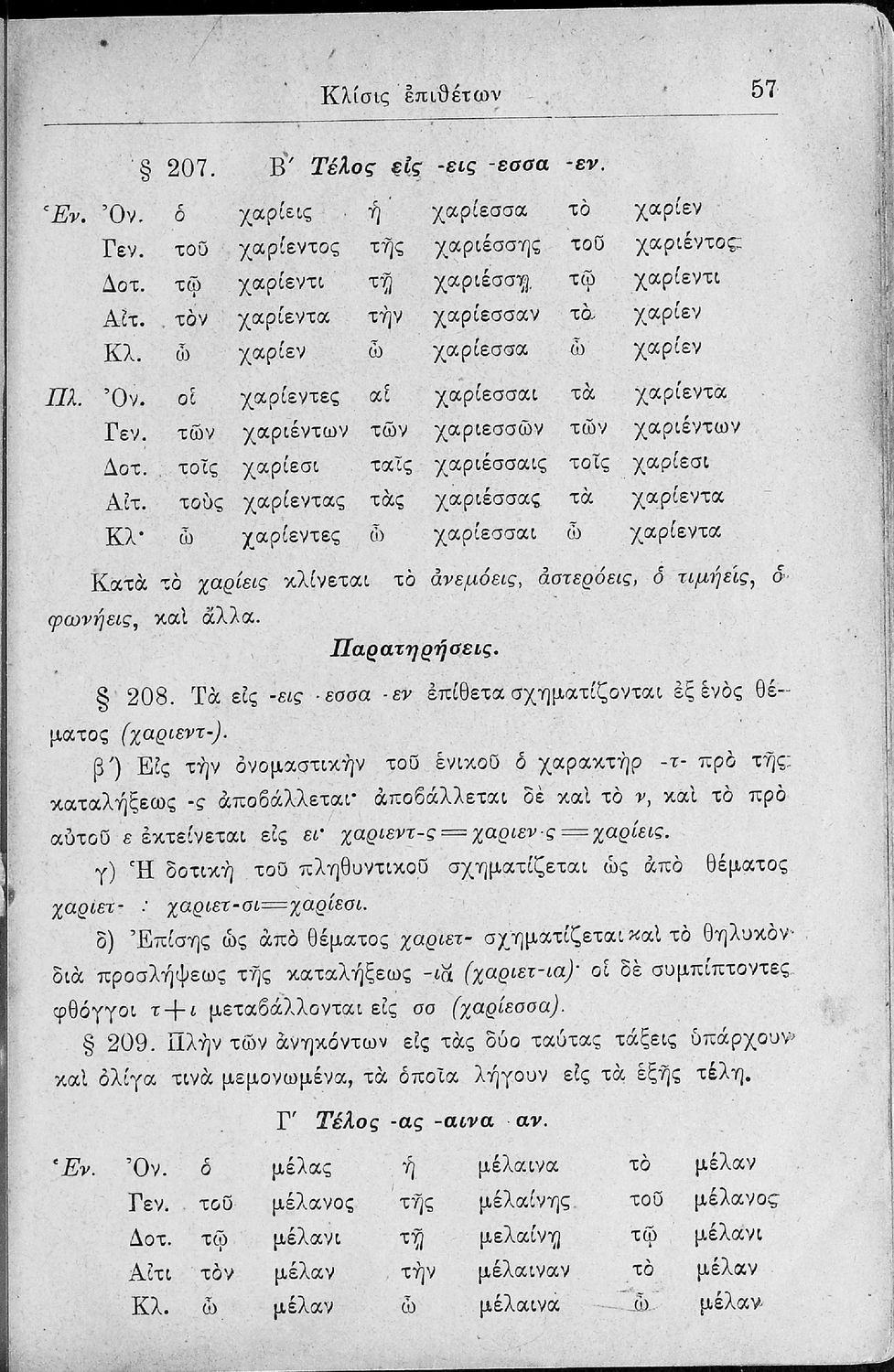 Σχολικό εγχειρίδιο Αρχαίων Ελληνικών για τα Ελληνικά Σχολεία, Παρθεναγωγεία και Γυμνάσια που περιέχει τους κανόνες γραμματικής και είναι χωρισμένο σε φθογγολογικό, τυπολογικό και ετυμολογικό μέρος.