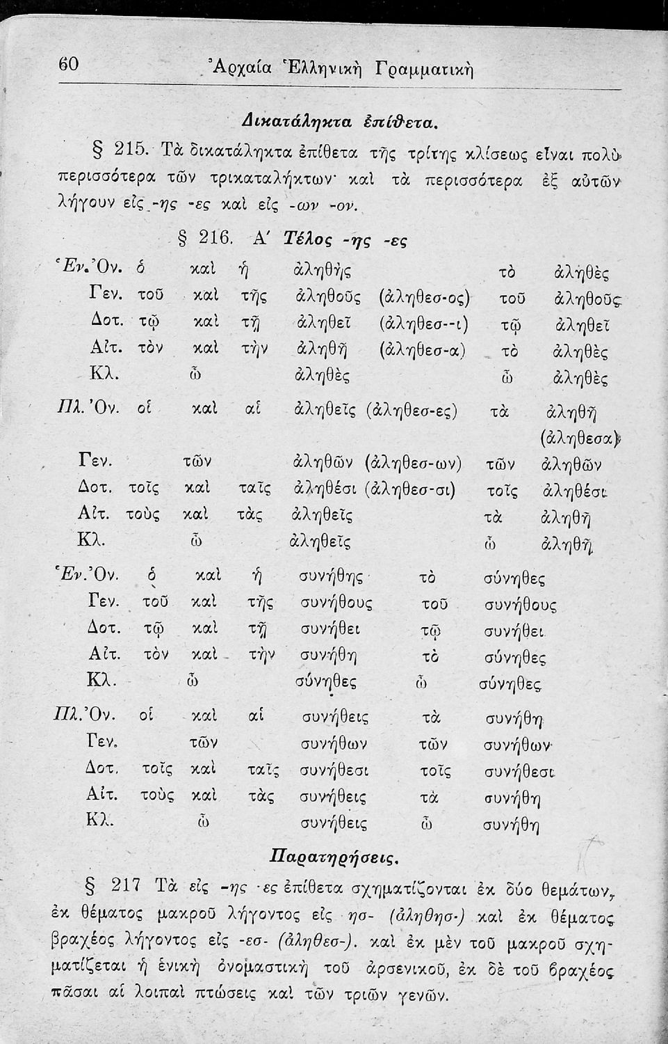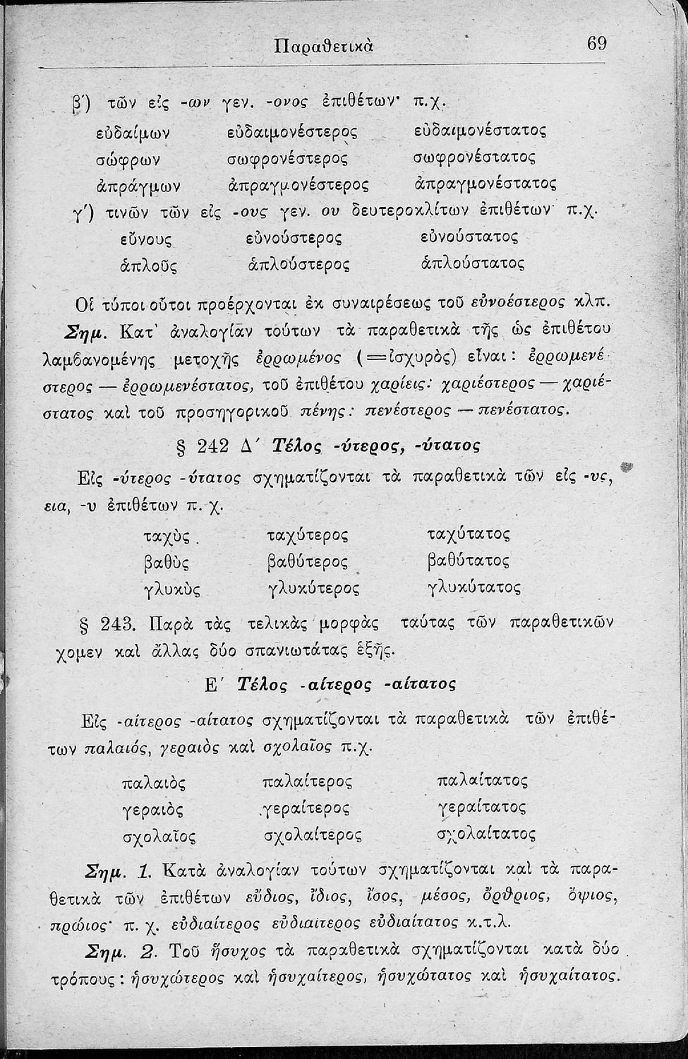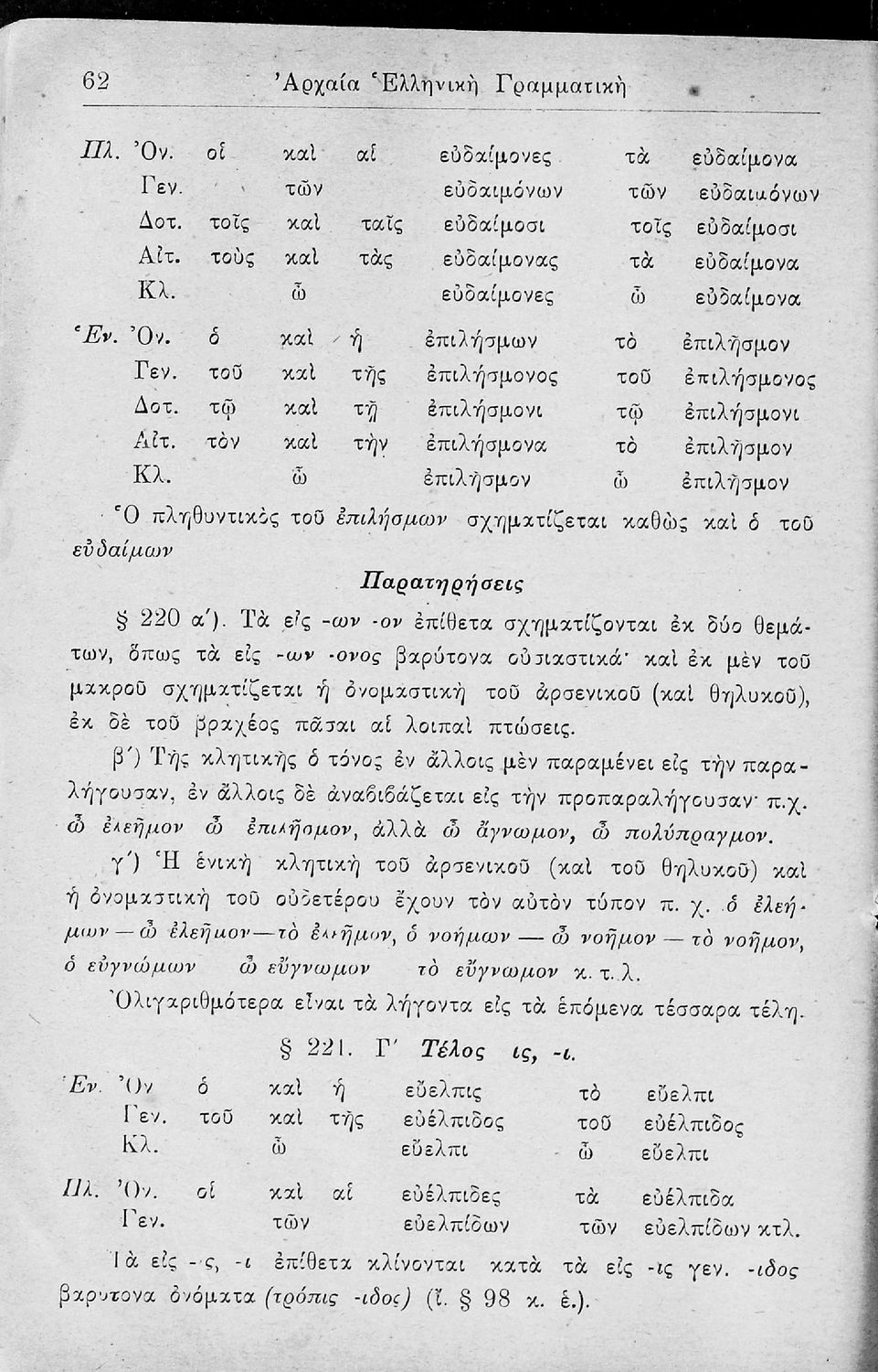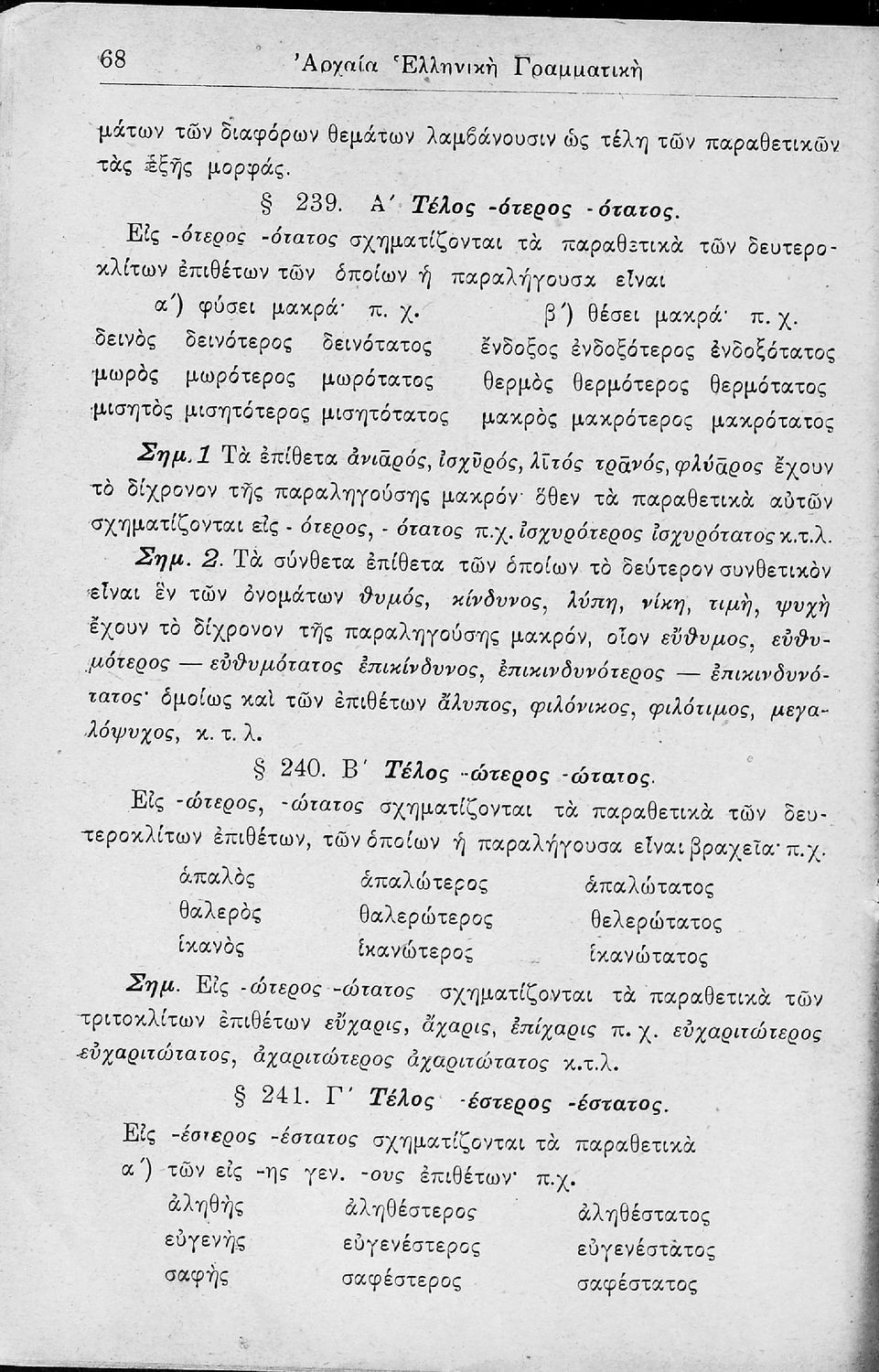 Σχολικό εγχειρίδιο Αρχαίων Ελληνικών για τα Ελληνικά Σχολεία και Παρθεναγωγεία που περιλαμβάνει κανόνες της γραμματικής της αρχαίας ελληνικής και είναι χωρισμένη στο φθογγολογικό και στο τυπολογικό μέρος.