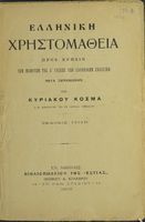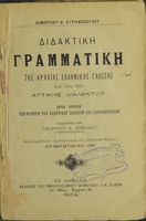 Βαθμίδα εκπαίδευσης: Δευτεροβάθμια Τάξη: Ελληνικό Σχολείο Μάθημα: Αρχαία Ελληνικά Γλώσσα: Καθαρεύουσα Παρουσίαση περιεχομένου: Σχολικό εγχειρίδιο Αρχαίων Ελληνικών για τα Ελληνικά Σχολεία που αποτελεί γραμματική της αρχαίας ελληνικής και είναι χωρισμένο στο φθογγολογικό και το τυπολογικό μέρος. Περιέχει και σύντομα κείμενα που χρησιμοποιούνται για τη διδασκαλία των γραμματικών φαινομένων και ασκήσεις. |