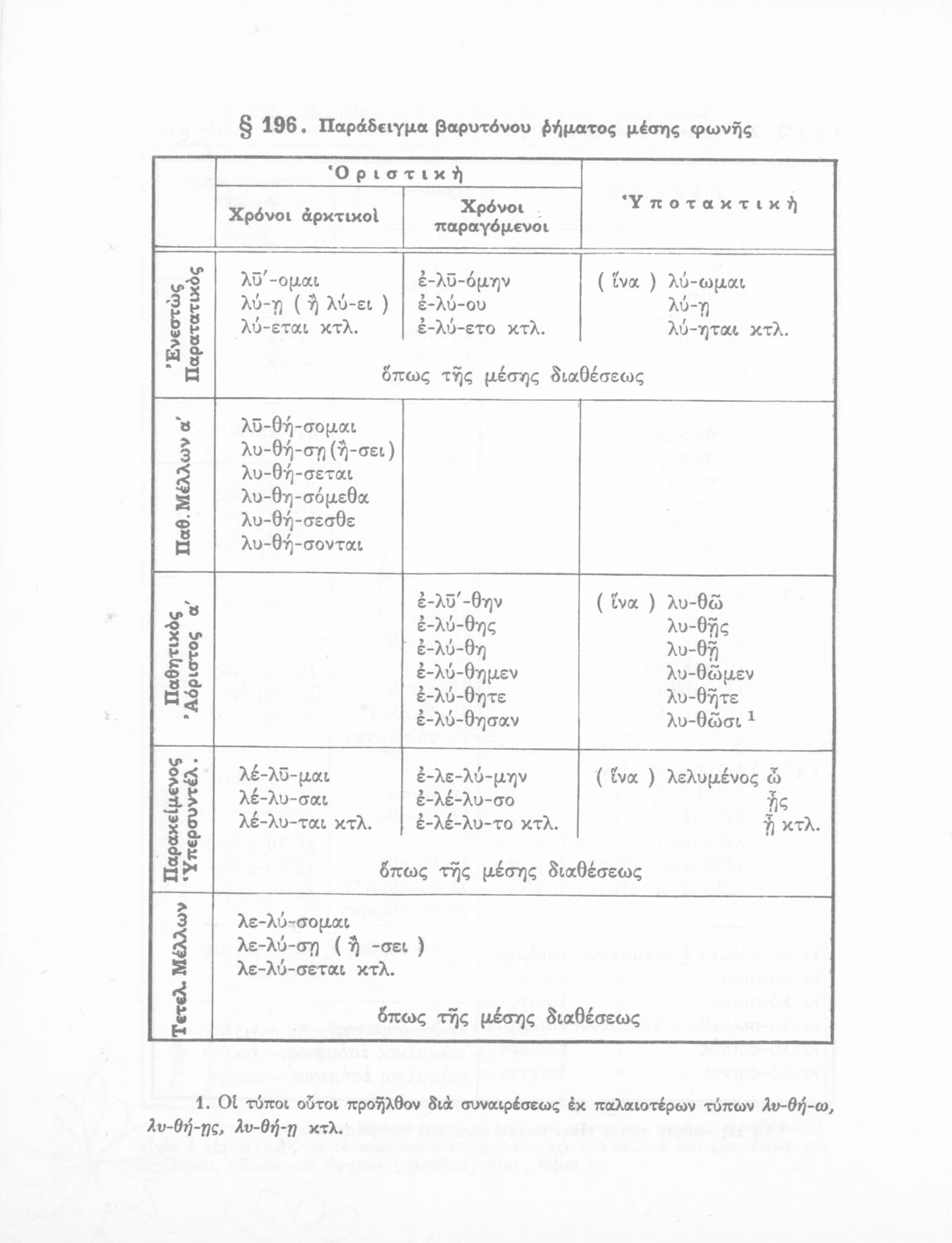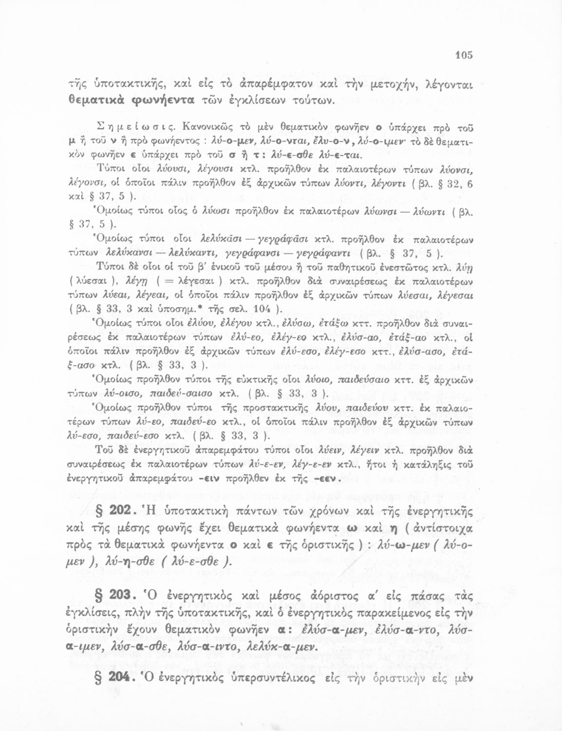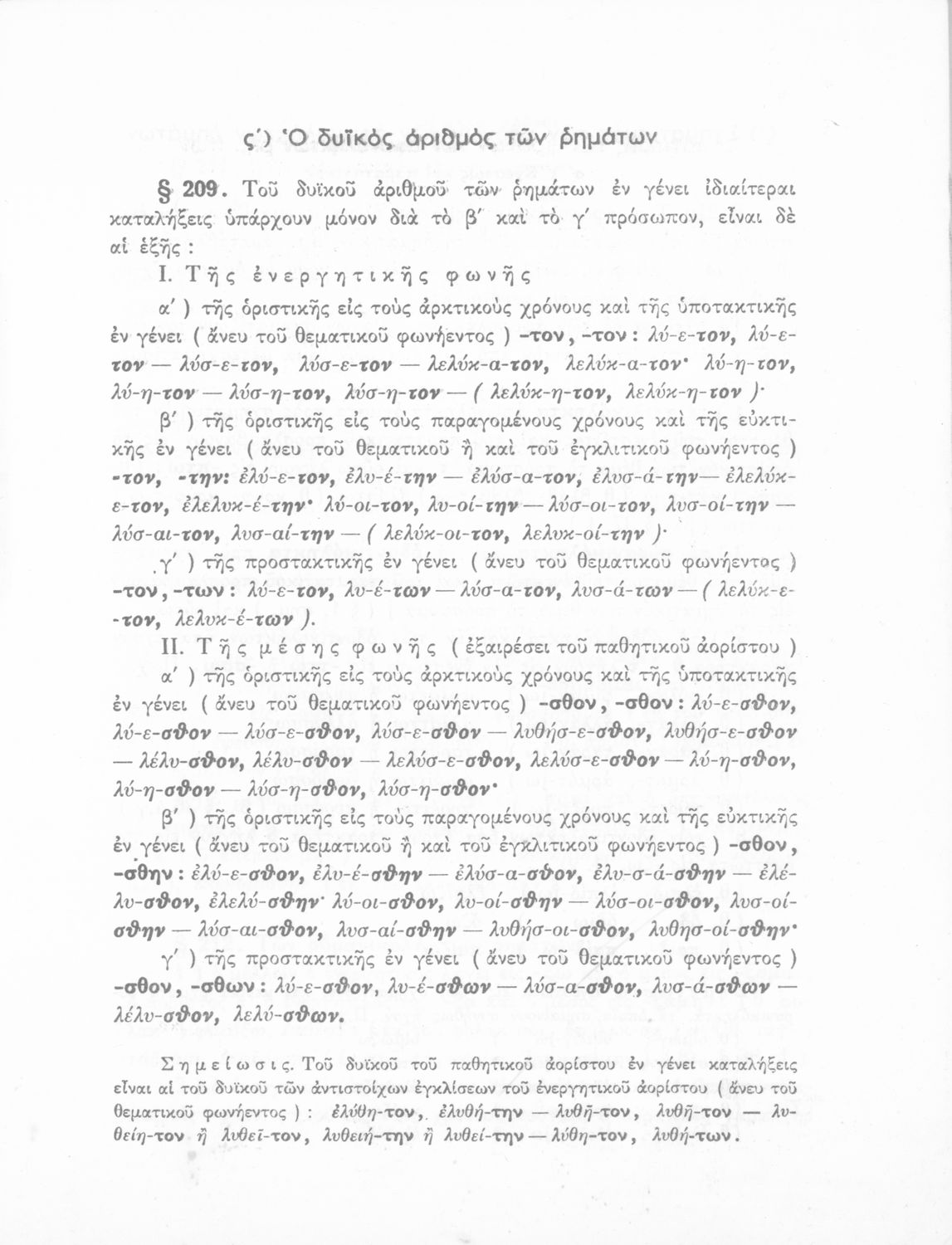 Σχολικό εγχειρίδιο Αρχαίων Ελληνικών Γυμνασίου που περιλαμβάνει τη γραμματική της αρχαίας ελληνικής και είναι χωρισμένο σε φθογγολογικό και τυπολογικό μέρος Περιέχει και κατάλογο ανωμάλων ρημάτων.