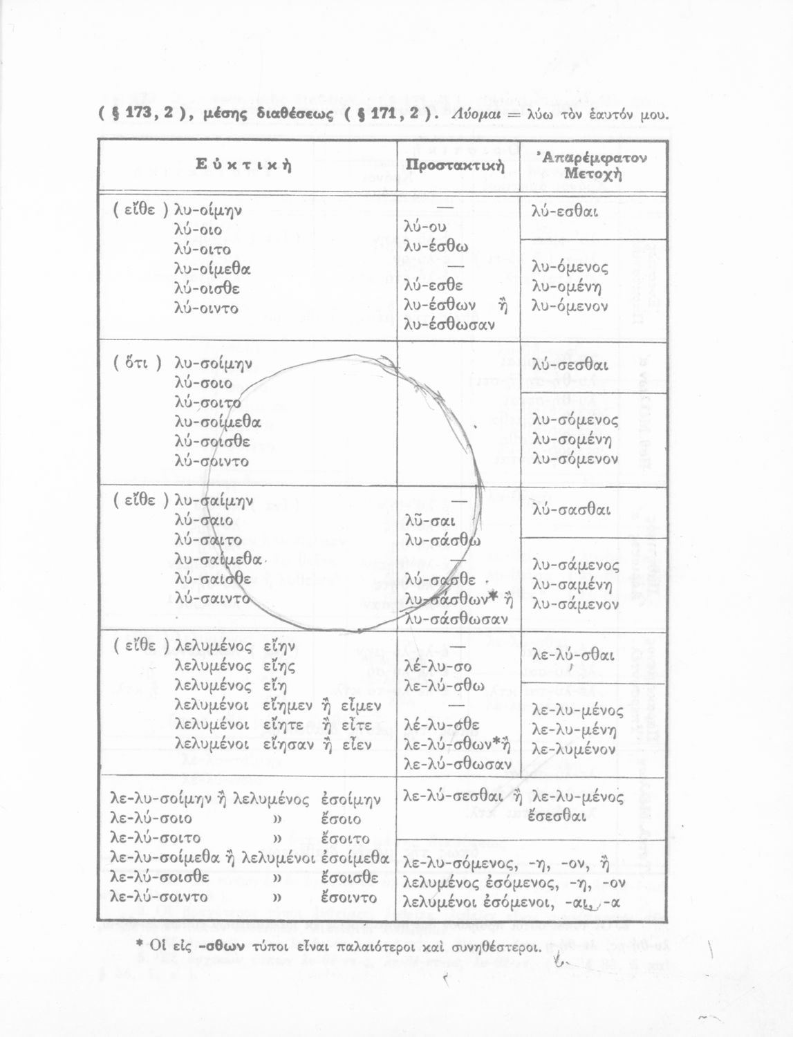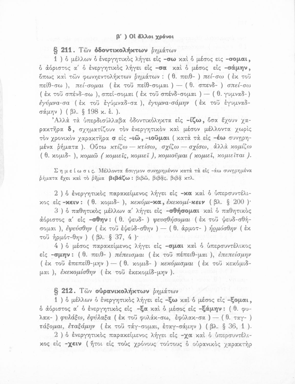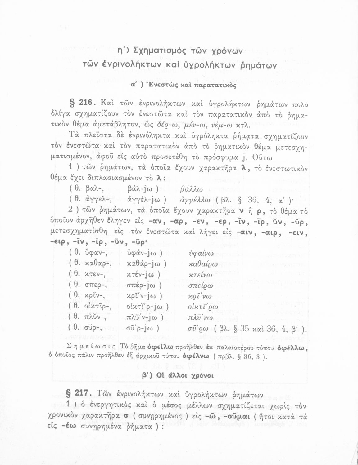 Σχολικό εγχειρίδιο Αρχαίων Ελληνικών Γυμνασίου που περιλαμβάνει τη γραμματική της αρχαίας ελληνικής και είναι χωρισμένο σε φθογγολογικό και τυπολογικό μέρος Περιέχει και κατάλογο ανωμάλων ρημάτων.