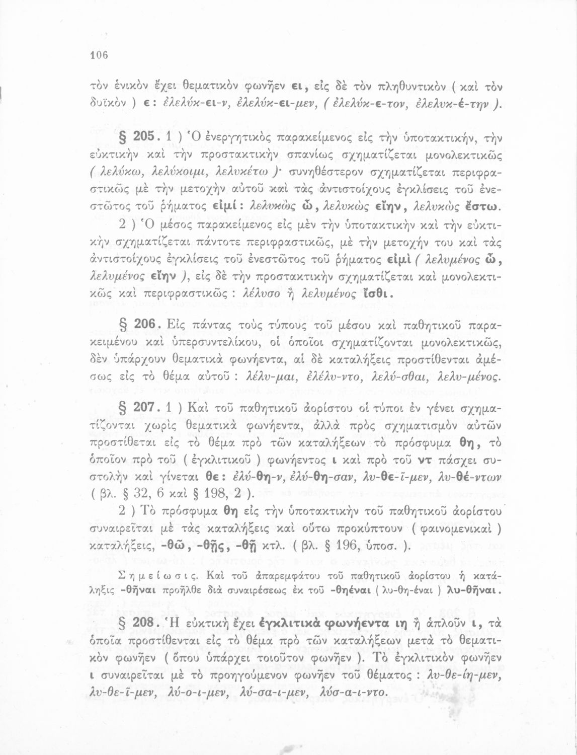 Σχολικό εγχειρίδιο Αρχαίων Ελληνικών Α', Β', και Γ' Γυμνασίου που περιέχει τους κανόνες γραμματικής και είναι χωρισμένο σε φθογγολογικό, τυπολογικό και ετυμολογικό μέρος. Περιέχει και κατάλογο ανωμάλων ρημάτων.