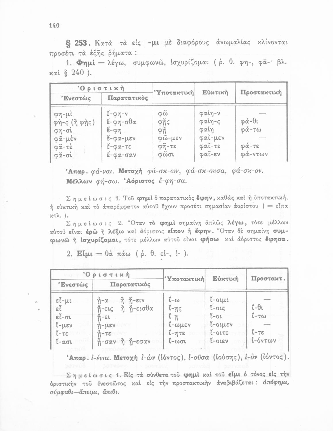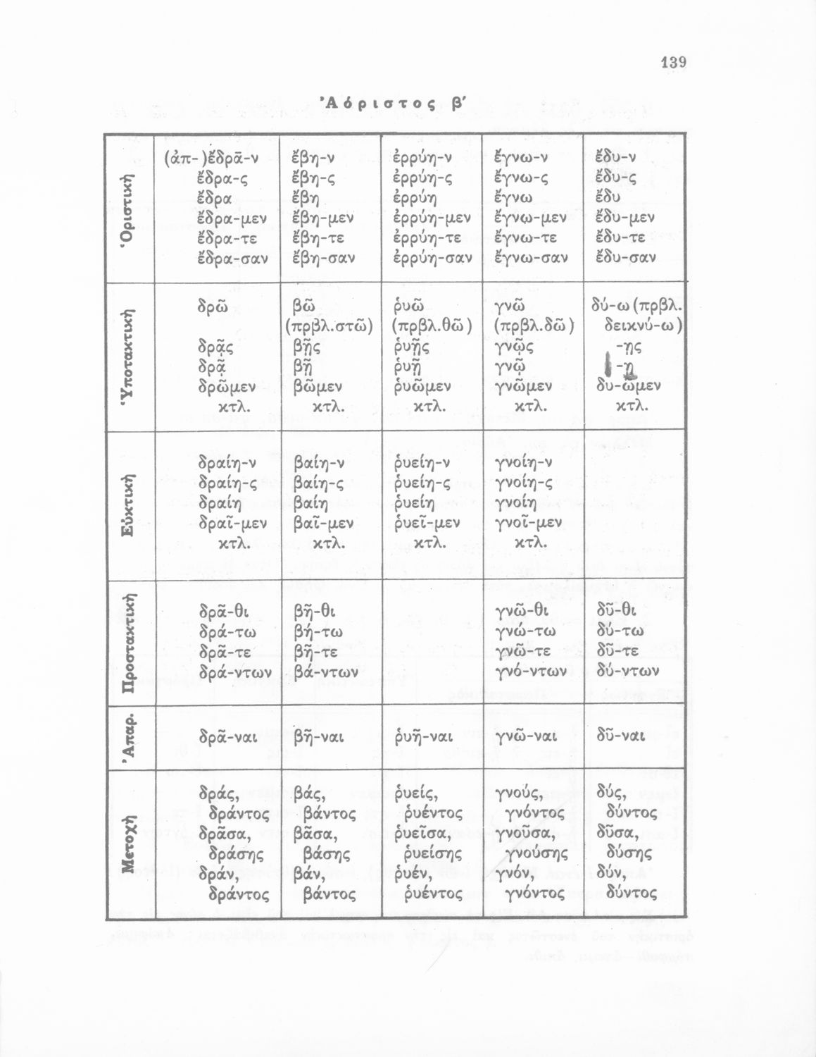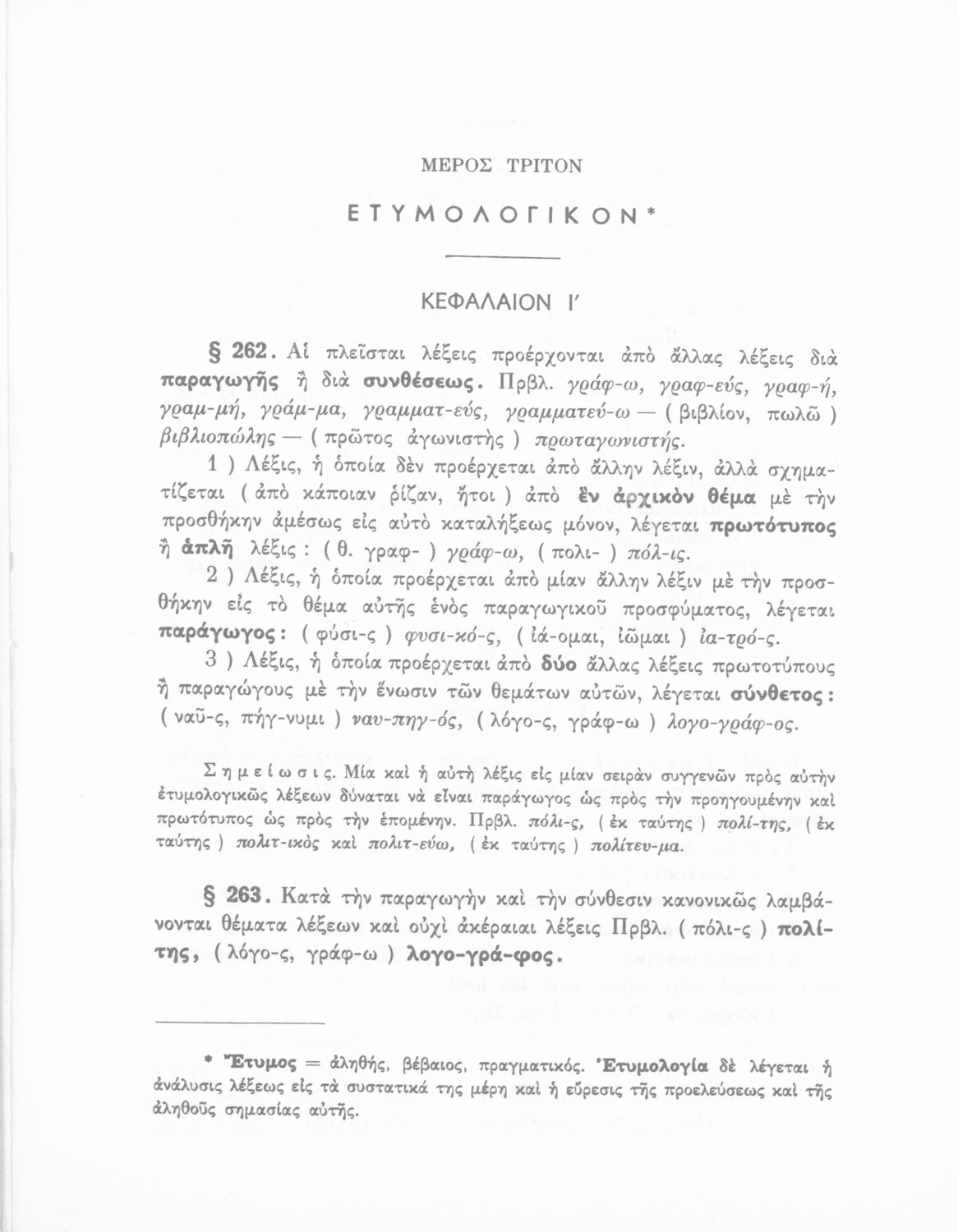 Σχολικό εγχειρίδιο Αρχαίων Ελληνικών Α', Β', και Γ' Γυμνασίου που περιέχει τους κανόνες γραμματικής και είναι χωρισμένο σε φθογγολογικό, τυπολογικό και ετυμολογικό μέρος. Περιέχει και κατάλογο ανωμάλων ρημάτων.