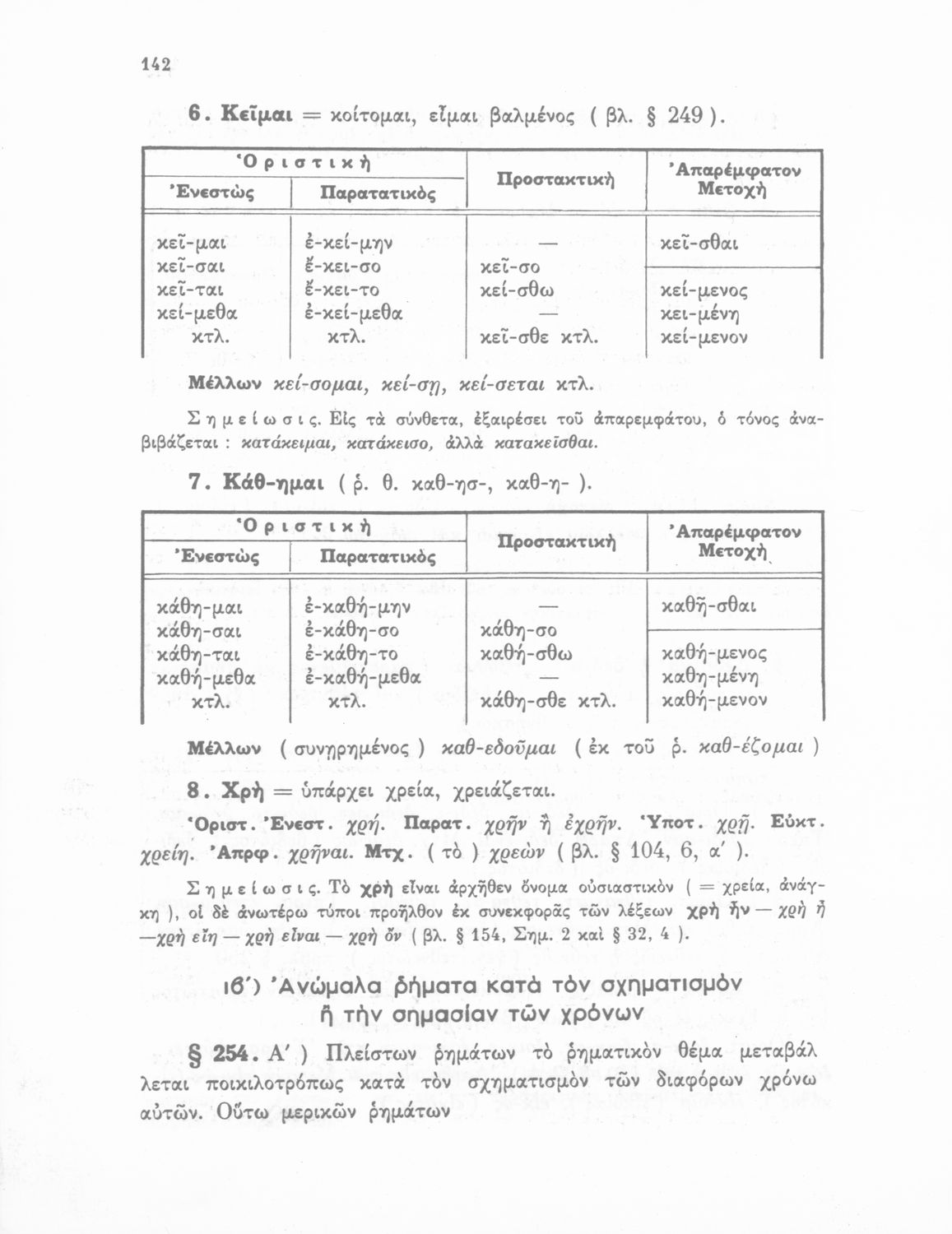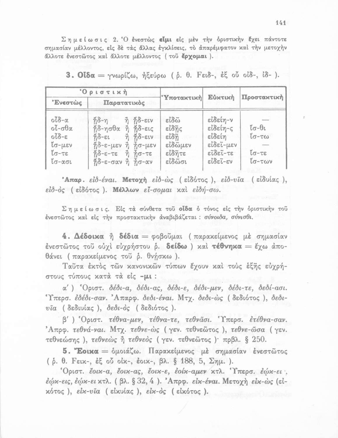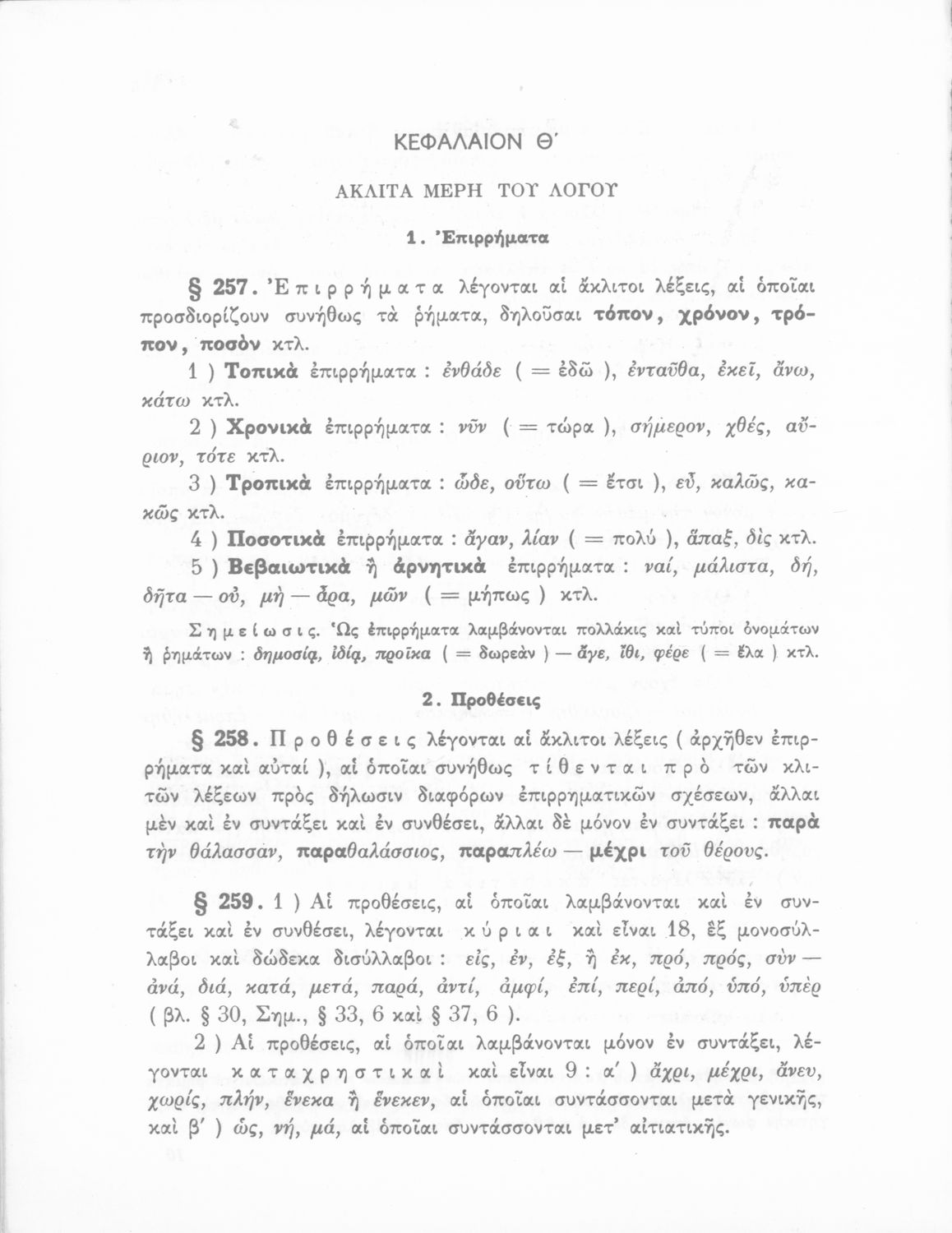 Σχολικό εγχειρίδιο Αρχαίων Ελληνικών Α', Β', και Γ' Γυμνασίου που περιέχει τους κανόνες γραμματικής και είναι χωρισμένο σε φθογγολογικό, τυπολογικό και ετυμολογικό μέρος. Περιέχει και κατάλογο ανωμάλων ρημάτων.