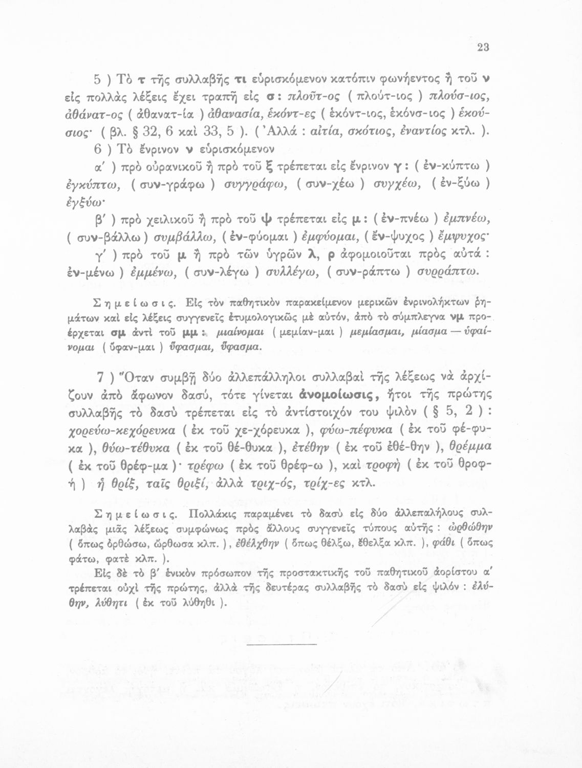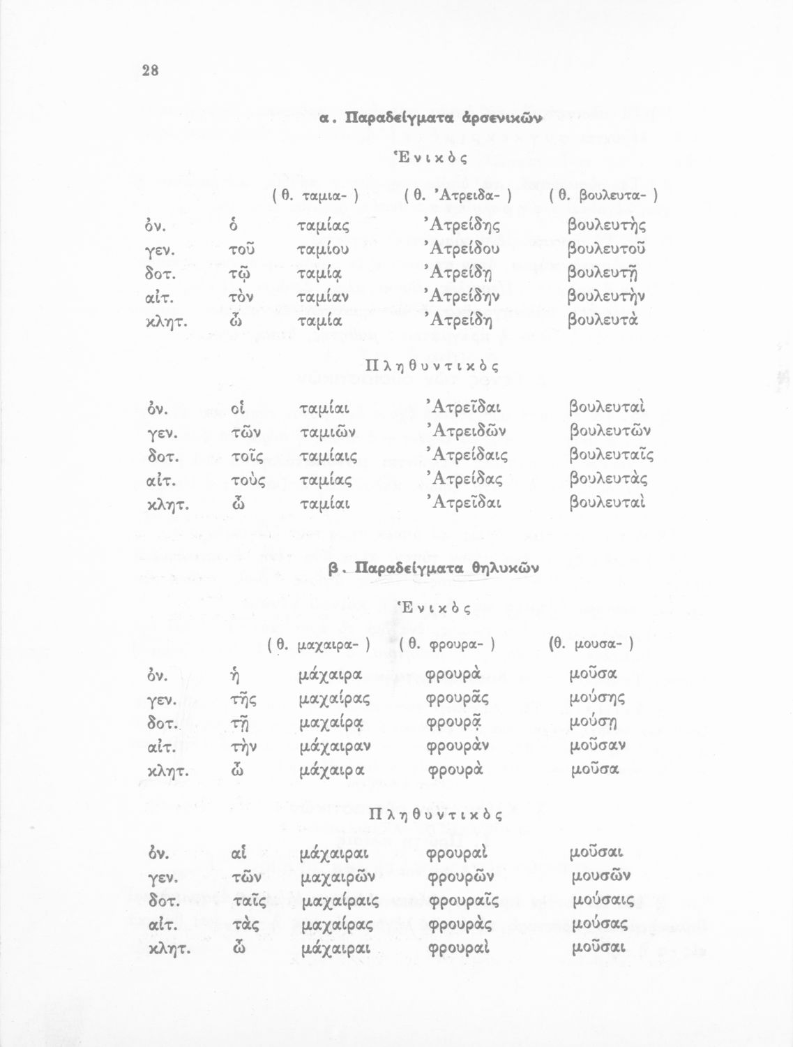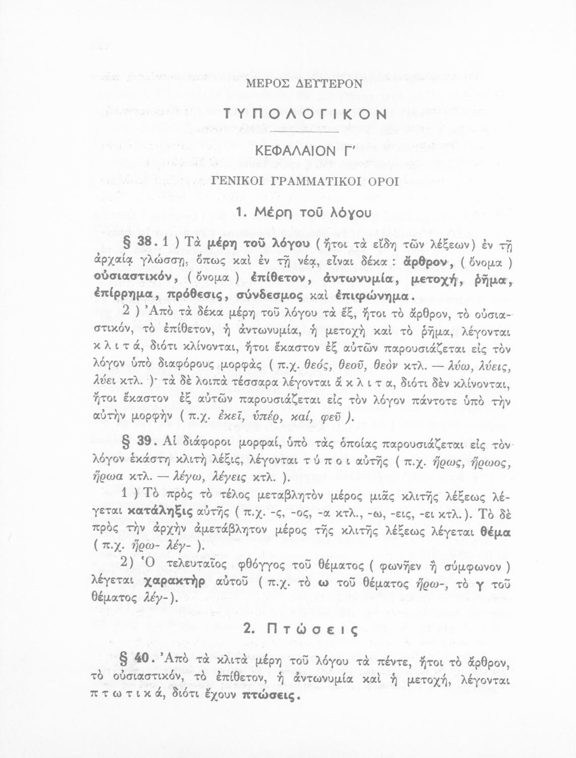 Σχολικό εγχειρίδιο Αρχαίων Ελληνικών Γυμνασίου που περιλαμβάνει τη γραμματική της αρχαίας ελληνικής και είναι χωρισμένο σε φθογγολογικό και τυπολογικό μέρος Περιέχει και κατάλογο ανωμάλων ρημάτων.
