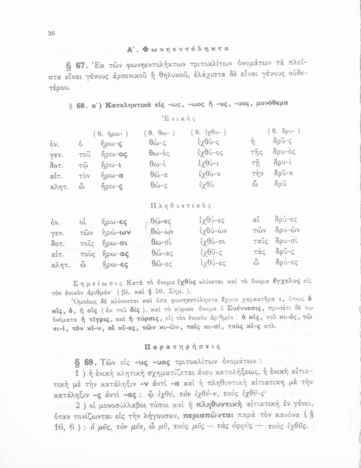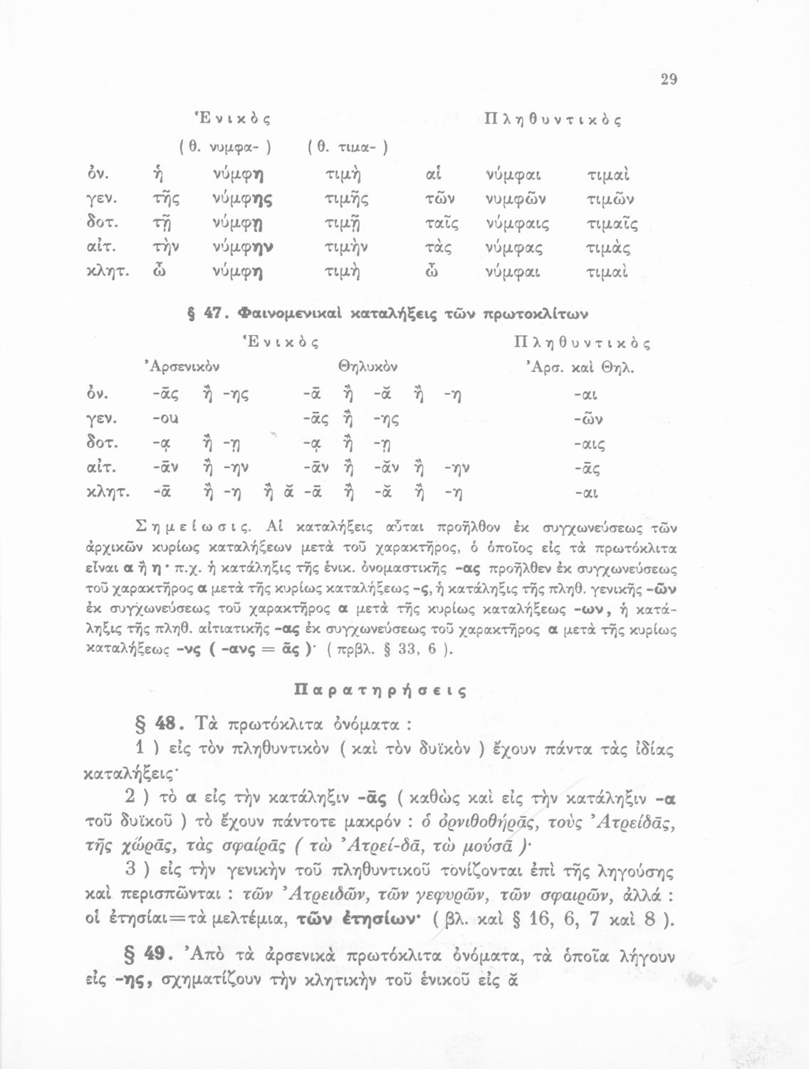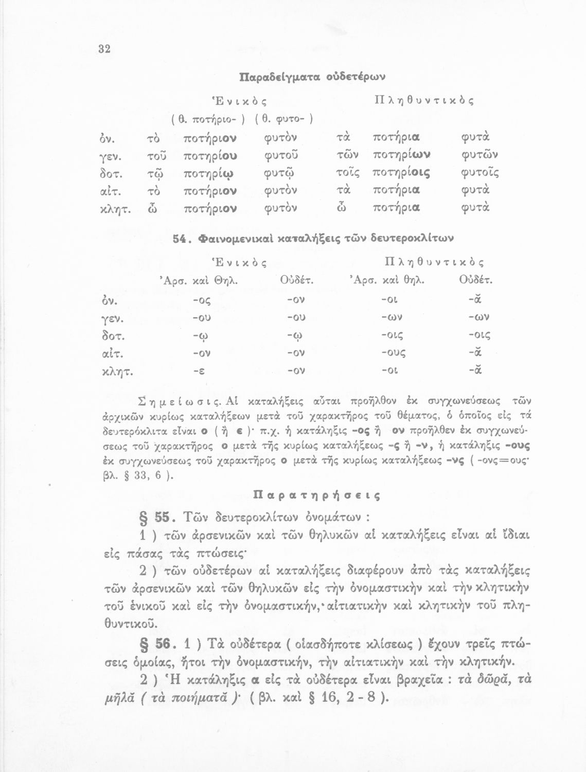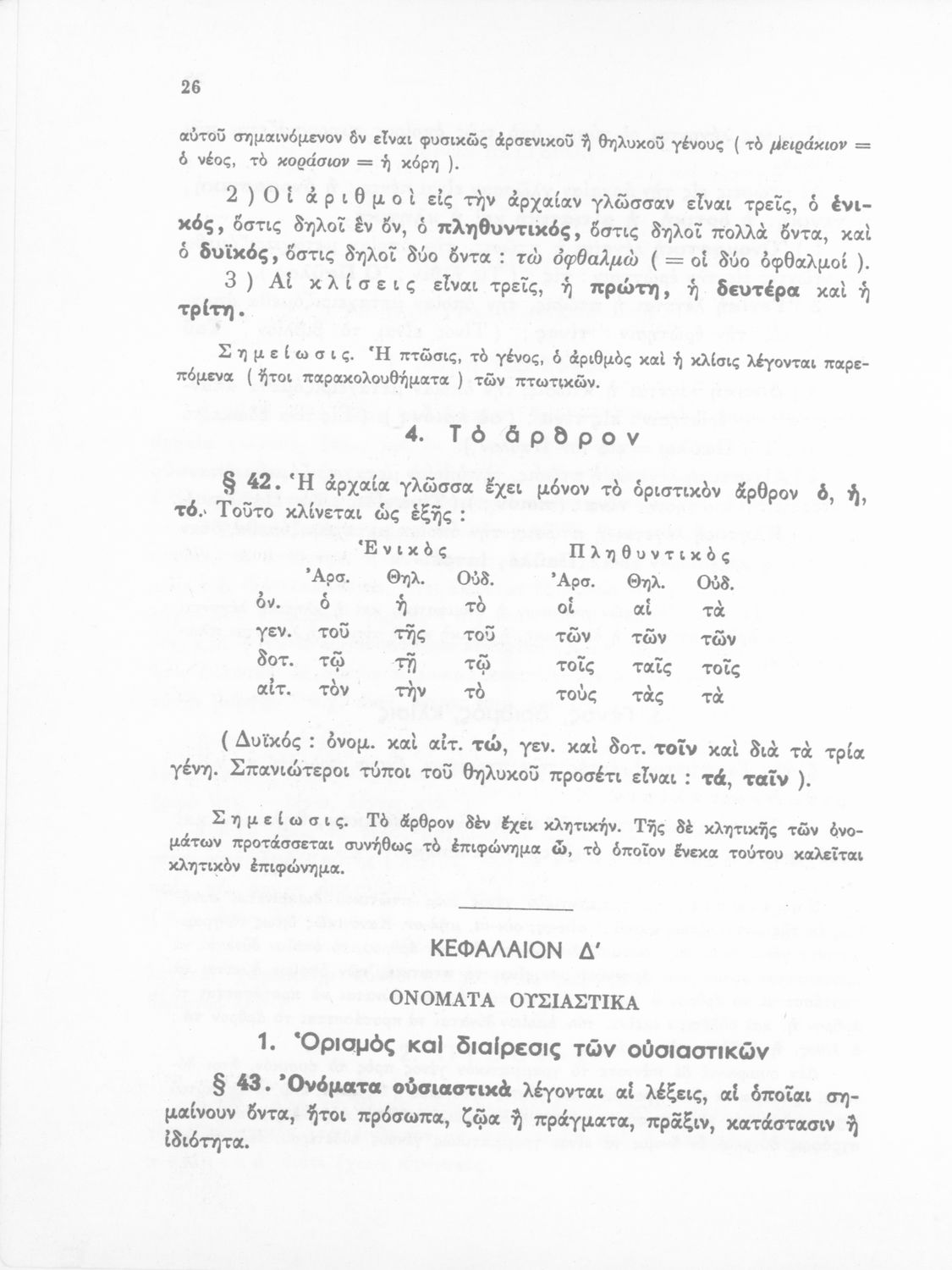 Σχολικό εγχειρίδιο Αρχαίων Ελληνικών Γυμνασίου που περιλαμβάνει τη γραμματική της αρχαίας ελληνικής και είναι χωρισμένο σε φθογγολογικό και τυπολογικό μέρος Περιέχει και κατάλογο ανωμάλων ρημάτων.