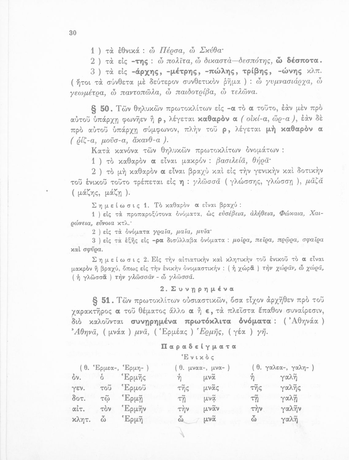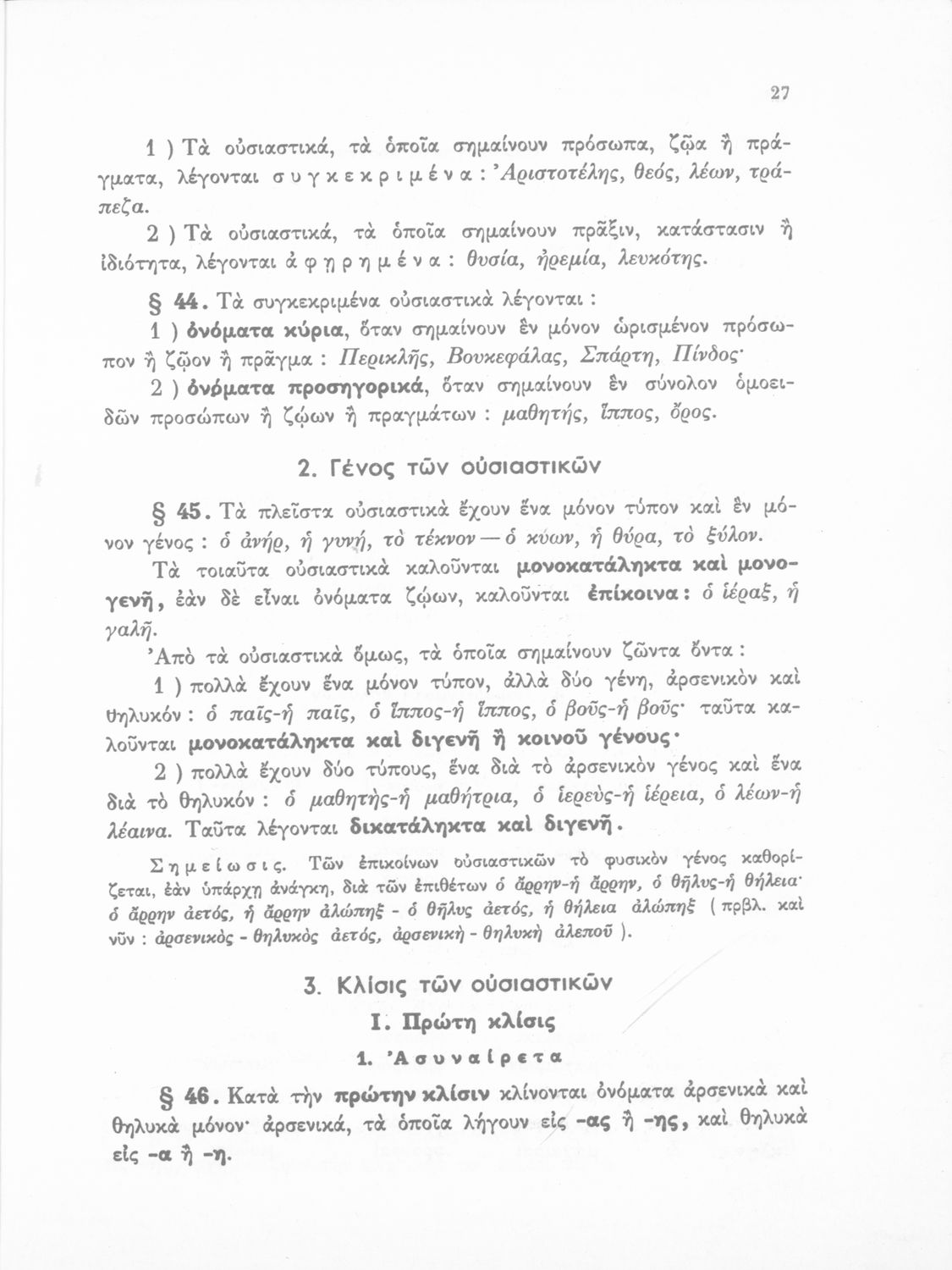 Σχολικό εγχειρίδιο Αρχαίων Ελληνικών Γυμνασίου που περιλαμβάνει τους κανόνες γραμματικής και είναι χωρισμένη στο φθογγολογικό, το τυπολογικό και ετυμολογικό μέρος.