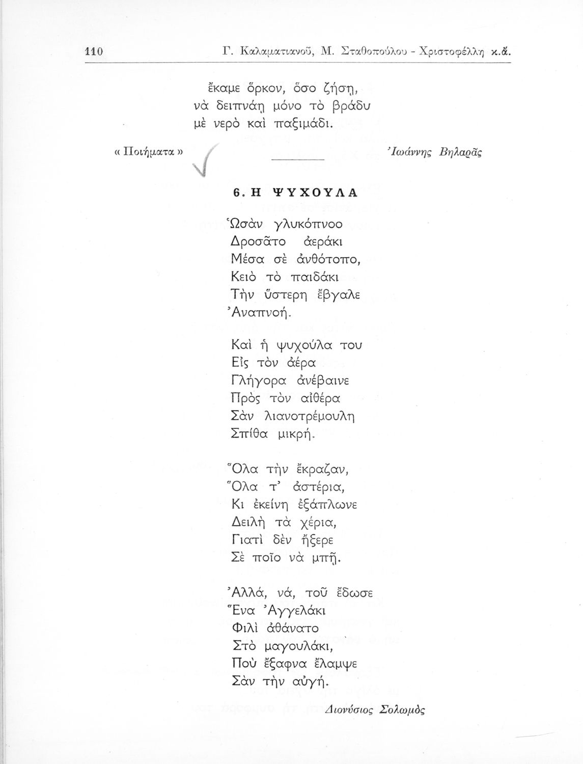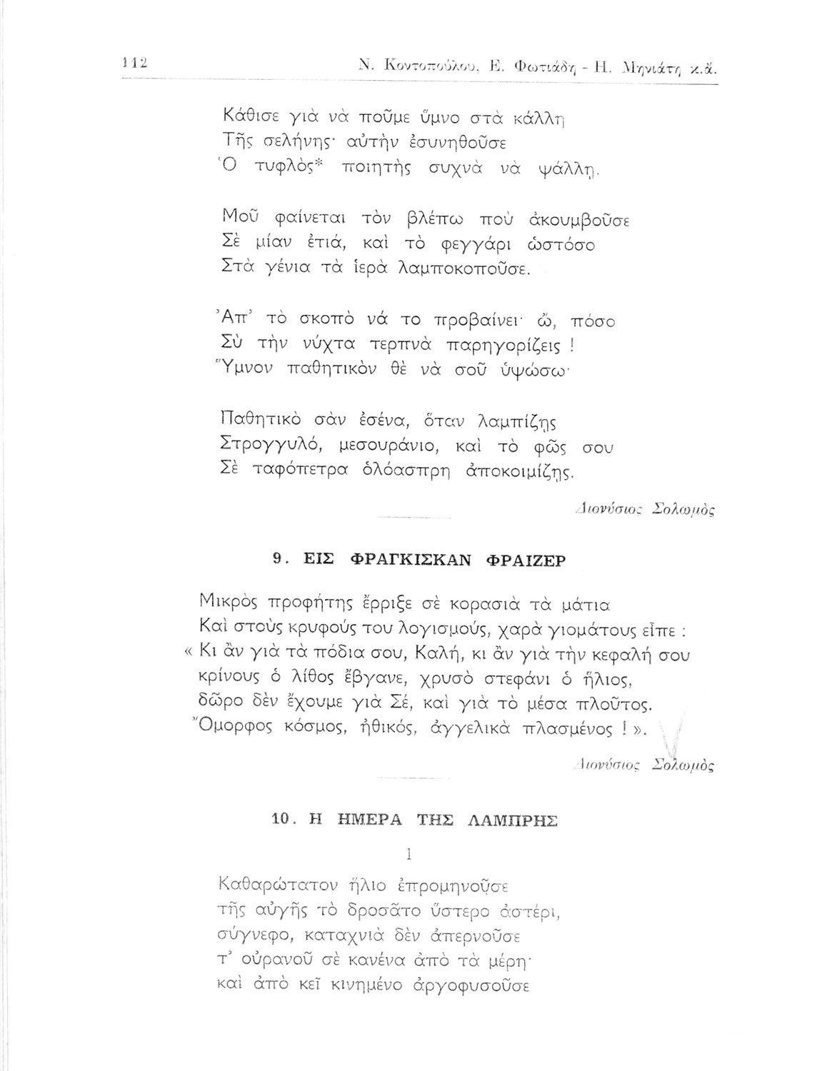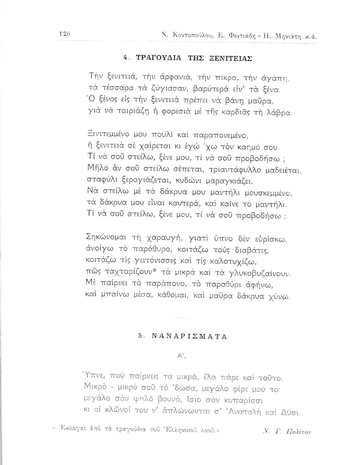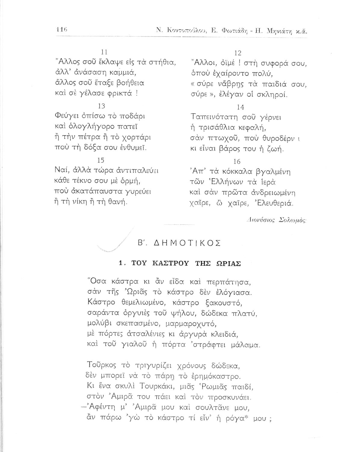 Σχολικό εγχειρίδιο Νέων Ελληνικών Ε΄ Γυμνασίου που περιέχει πεζά και ποιήματα συγγραφέων της βυζαντινής και μεταβυζαντινής περιόδου πατριωτικού και θρησκευτικού περιεχομένου. Περιλαμβάνει και πεζά και ποιήματα Ελλήνων και ξένων συγγραφέων και δημοτικά τραγούδια πατριωτικού περιεχομένου και παράρτημα με βιογραφίες των συγγραφέων και λεξιλόγιο.
