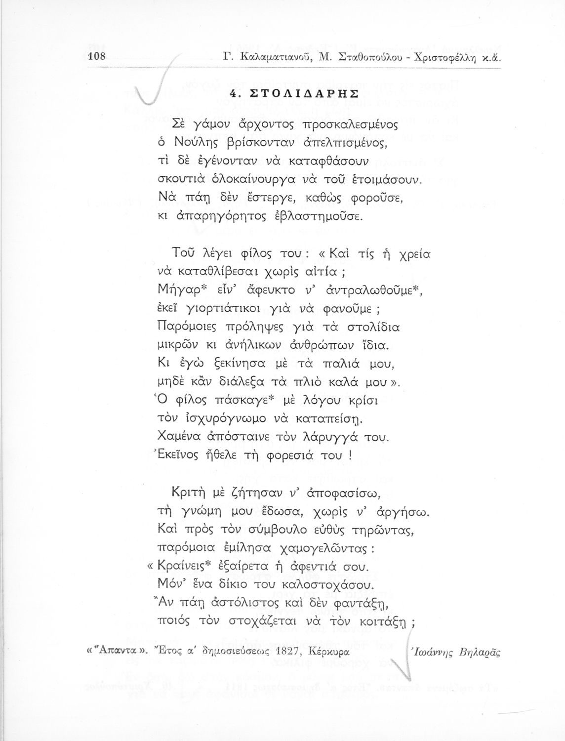 LDR 01629 2200217 4500 035 ## _a01-46103 040 ## _aΙνστιτούτο Εκπαιδευτικής Πολιτικής 041 ## _ael 100 ## _aΓ. Καλαματιανός _aΜ. Σταθοπούλου-Χριστοφέλλη _aΝ. Κοντόπουλος _aΕ. Φωτιάδης _aΗλ. Μηνιάτης 110 ## _a46103 245 0# _aΝεοελληνικά αναγνώσματα Ε' Γυμνασίου 250 ## _a1η Έκδοση 260 ## _aΑθήνα _bΟργανισμός Εκδόσεως Σχολικών Βιβλίων _c1956 300 ## _a379 _bΕικόνες (ασπρόμαυρες) _c20 520 ## _aΣχολικό εγχειρίδιο Νέων Ελληνικών Ε΄ Γυμνασίου που περιέχει πεζά και ποιήματα συγγραφέων της βυζαντινής και μεταβυζαντινής περιόδου πατριωτικού και θρησκευτικού περιεχομένου. Περιλαμβάνει και πεζά και ποιήματα Ελλήνων και ξένων συγγραφέων και δημοτικά τραγούδια πατριωτικού περιεχομένου και παράρτημα με βιογραφίες των συγγραφέων και λεξιλόγιο. 521 ## _aΕ' Γυμνασίου 522 ## _aΕλλάδα 546 ## _aΔημοτική, Καθαρεύουσα 563 ## _aΣκληρό Εξώφυλλο 583 ## _a7063/2-12-1955 _c1955 650 #4 _aΖαμπέλιος _aΚοραής _aΠαπαρρηγόπουλος _aΤρικούπης _aΧορτάτσης