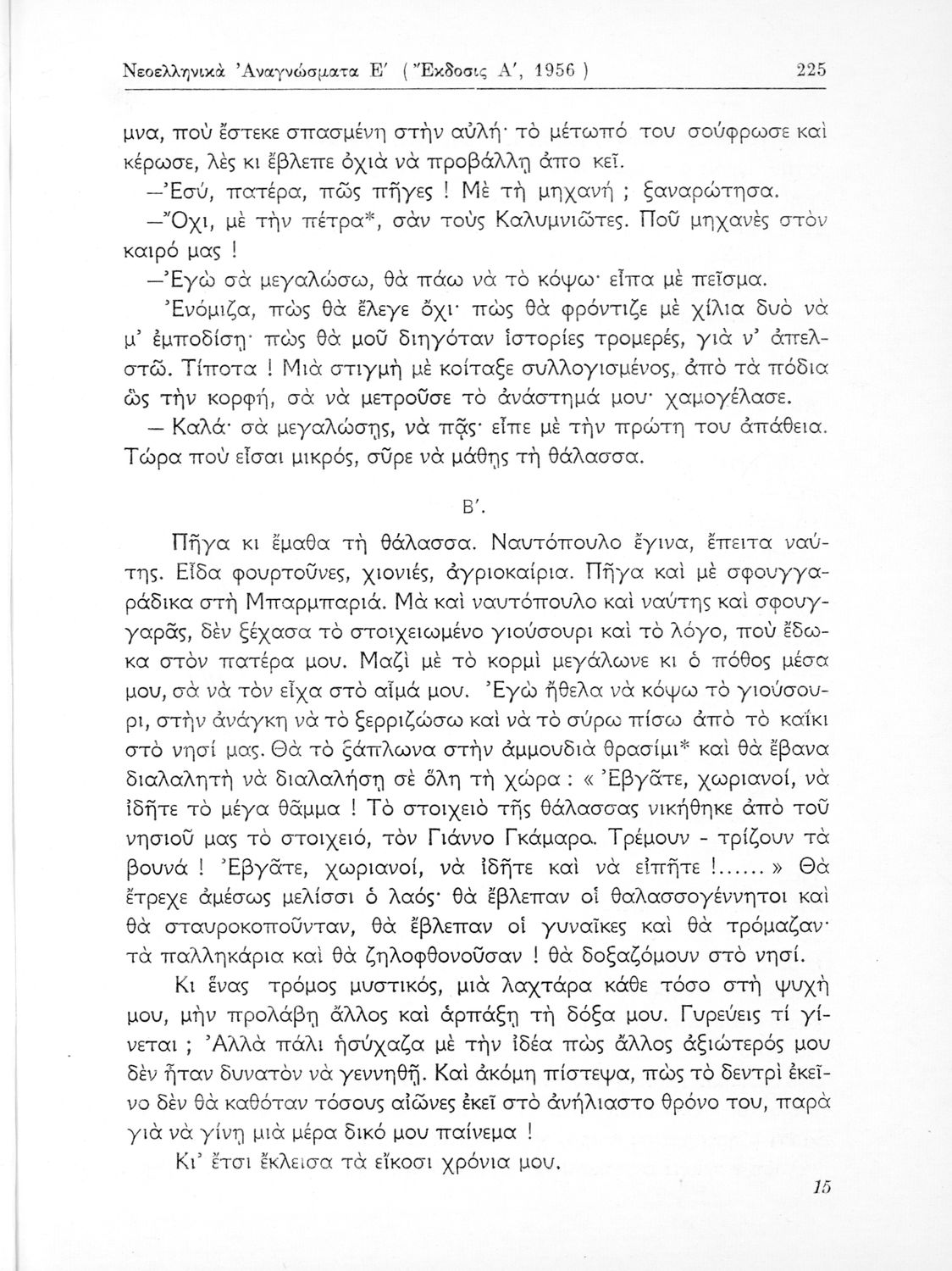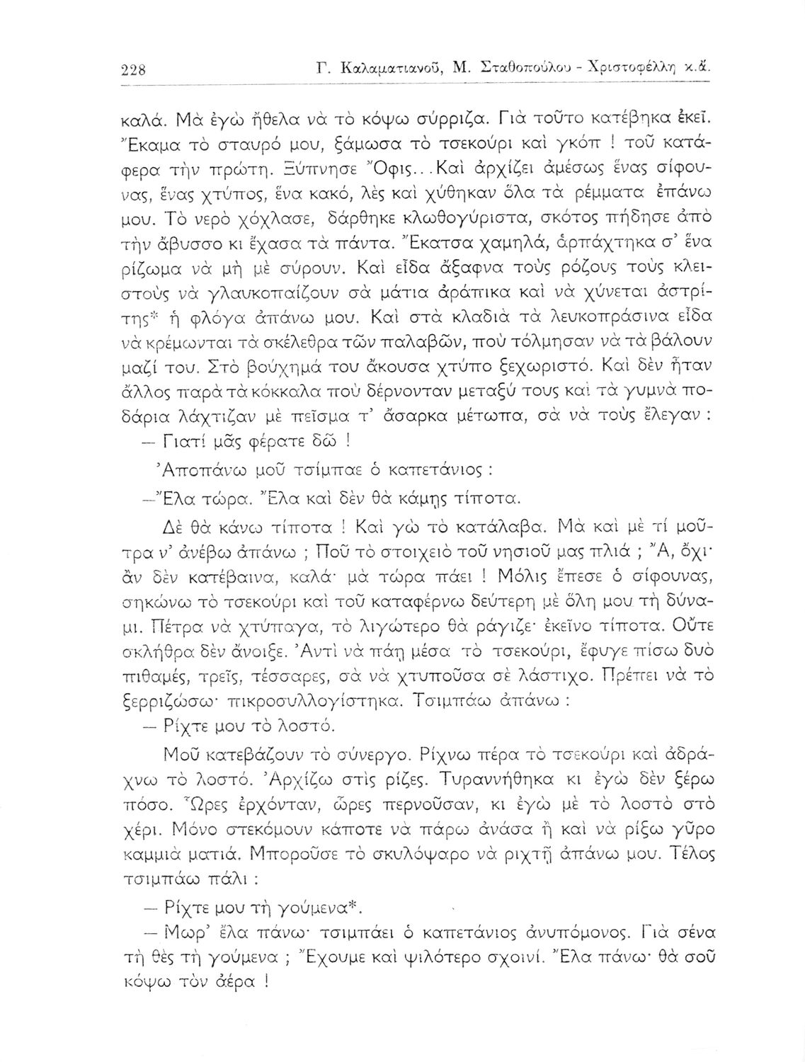 Σχολικό εγχειρίδιο Νέων Ελληνικών Ε΄ Γυμνασίου που περιέχει πεζά και ποιήματα συγγραφέων της βυζαντινής και μεταβυζαντινής περιόδου πατριωτικού και θρησκευτικού περιεχομένου. Περιλαμβάνει και πεζά και ποιήματα Ελλήνων και ξένων συγγραφέων και δημοτικά τραγούδια πατριωτικού περιεχομένου και παράρτημα με βιογραφίες των συγγραφέων και λεξιλόγιο.