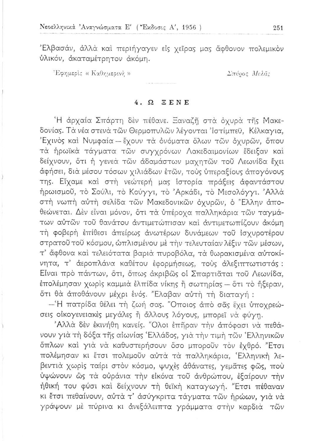 Σχολικό εγχειρίδιο Νέων Ελληνικών Ε΄ Γυμνασίου που περιέχει πεζά και ποιήματα συγγραφέων της βυζαντινής και μεταβυζαντινής περιόδου πατριωτικού και θρησκευτικού περιεχομένου. Περιλαμβάνει και πεζά και ποιήματα Ελλήνων και ξένων συγγραφέων και δημοτικά τραγούδια πατριωτικού περιεχομένου και παράρτημα με βιογραφίες των συγγραφέων και λεξιλόγιο.