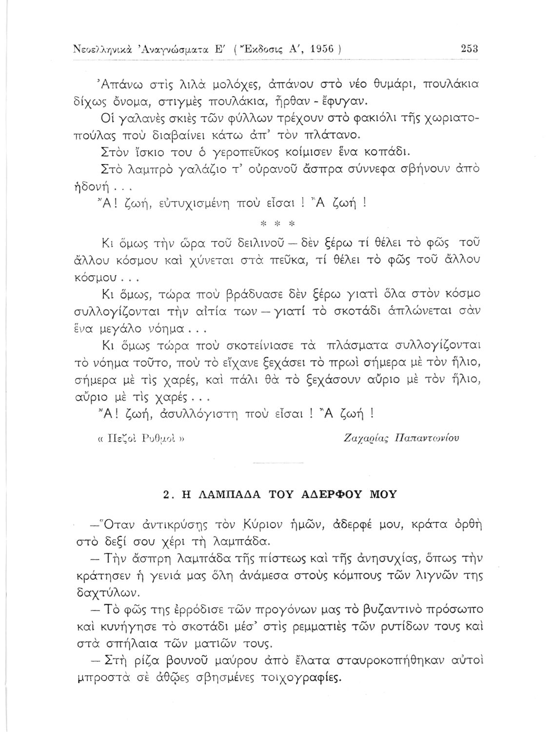 Σχολικό εγχειρίδιο Νέων Ελληνικών Ε΄ Γυμνασίου που περιέχει πεζά και ποιήματα συγγραφέων της βυζαντινής και μεταβυζαντινής περιόδου πατριωτικού και θρησκευτικού περιεχομένου. Περιλαμβάνει και πεζά και ποιήματα