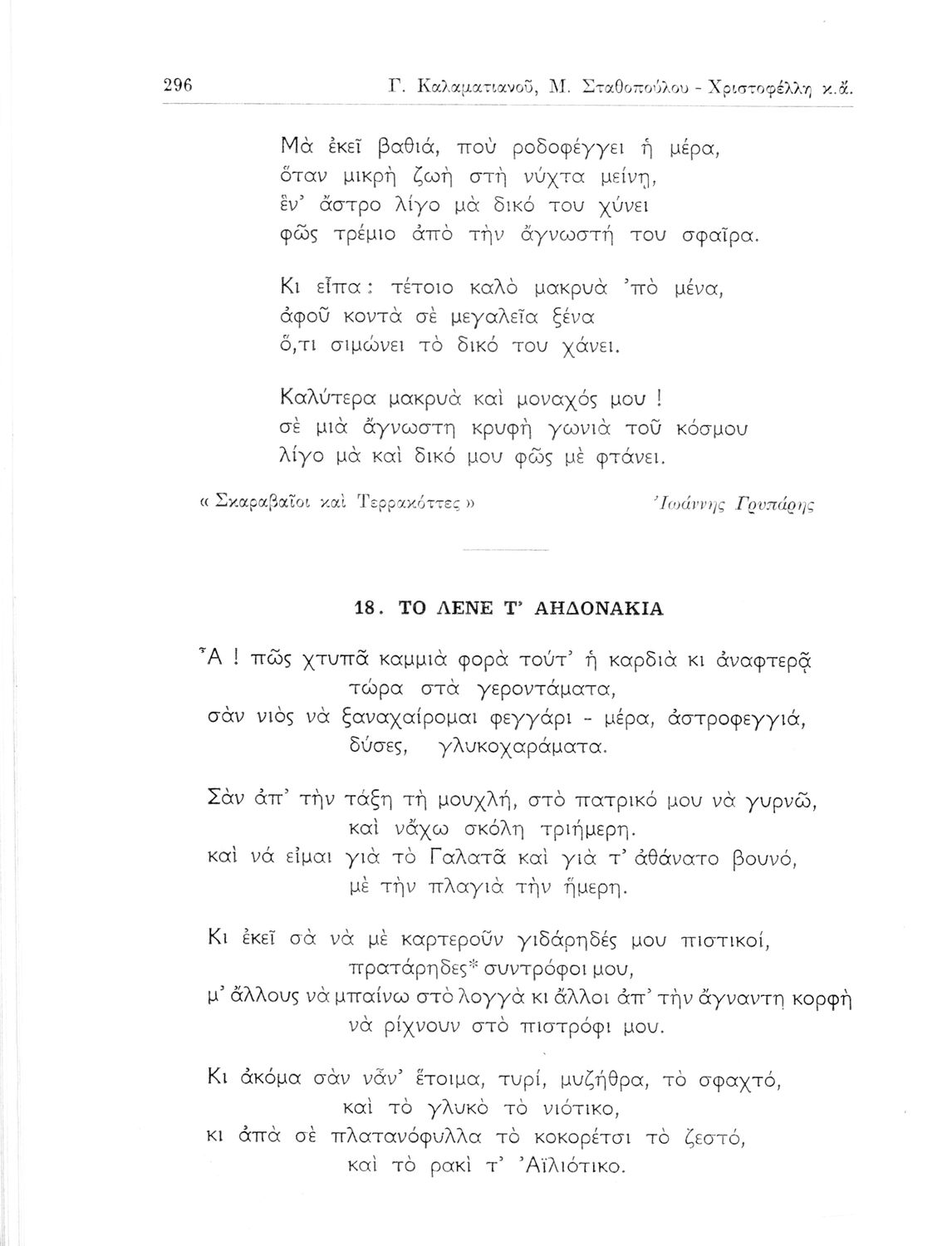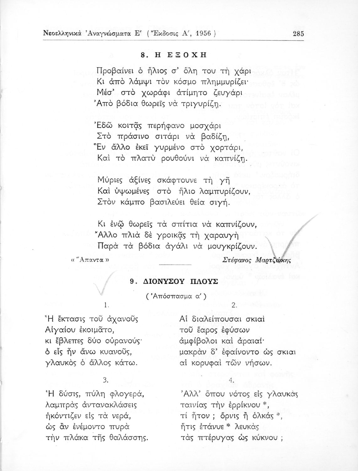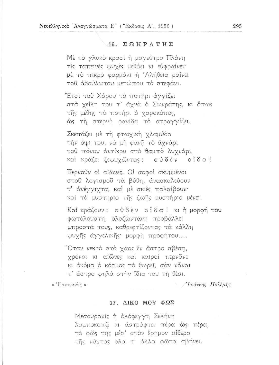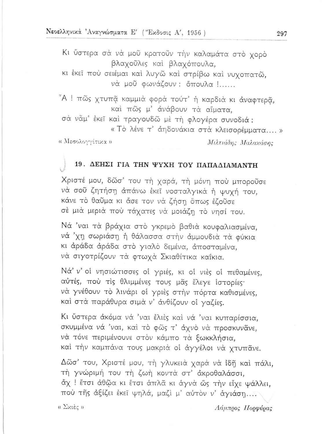 Σχολικό εγχειρίδιο Νέων Ελληνικών Ε΄ Γυμνασίου που περιέχει πεζά και ποιήματα συγγραφέων της βυζαντινής και μεταβυζαντινής περιόδου πατριωτικού και θρησκευτικού περιεχομένου. Περιλαμβάνει και πεζά και ποιήματα
