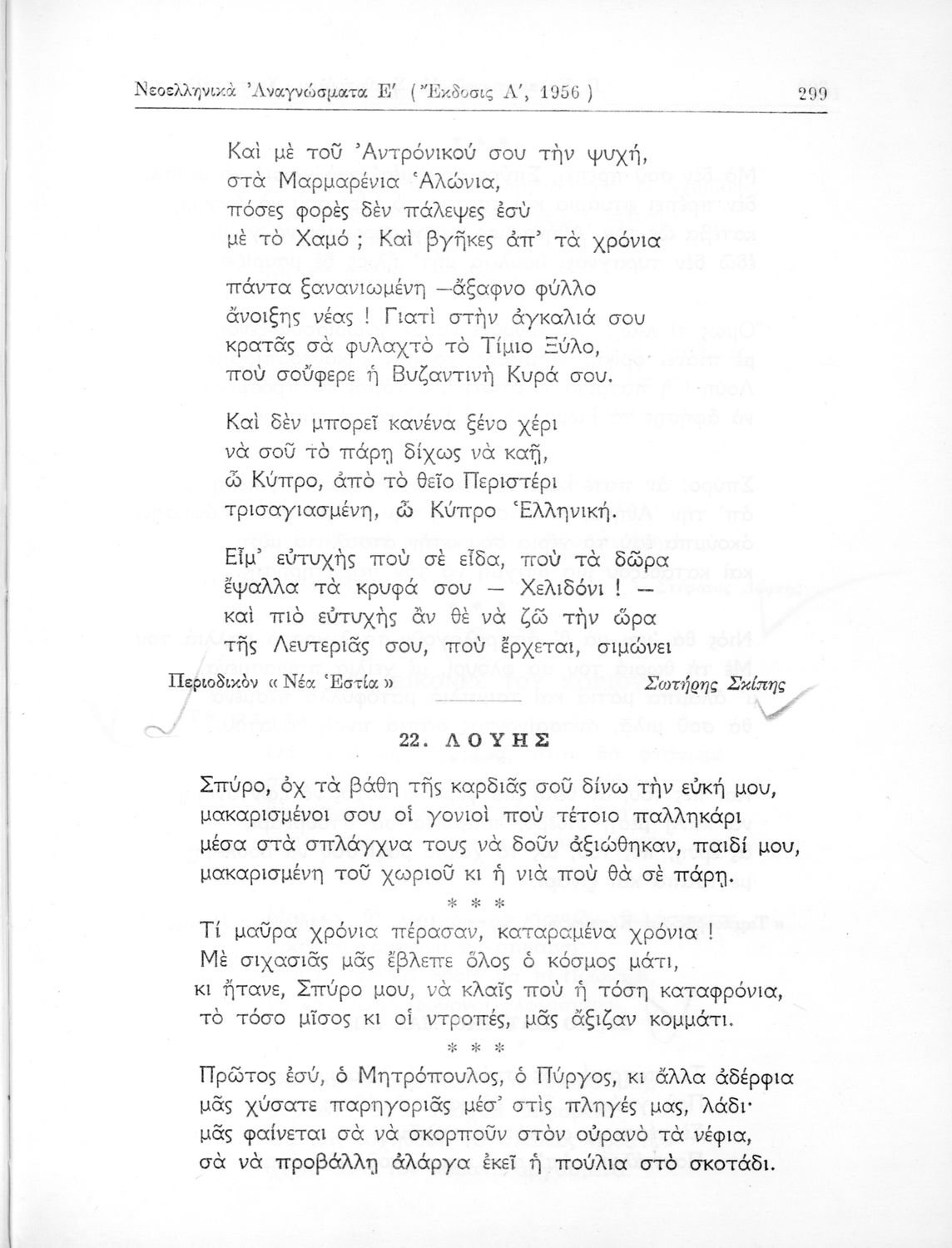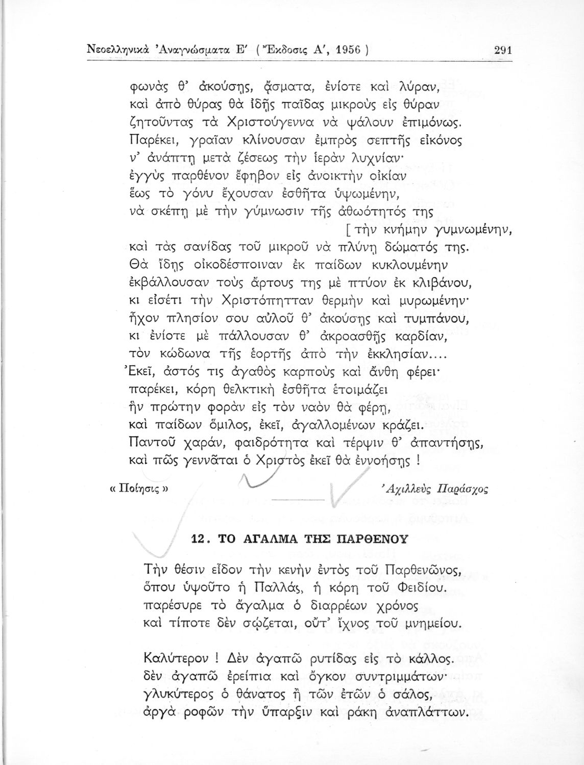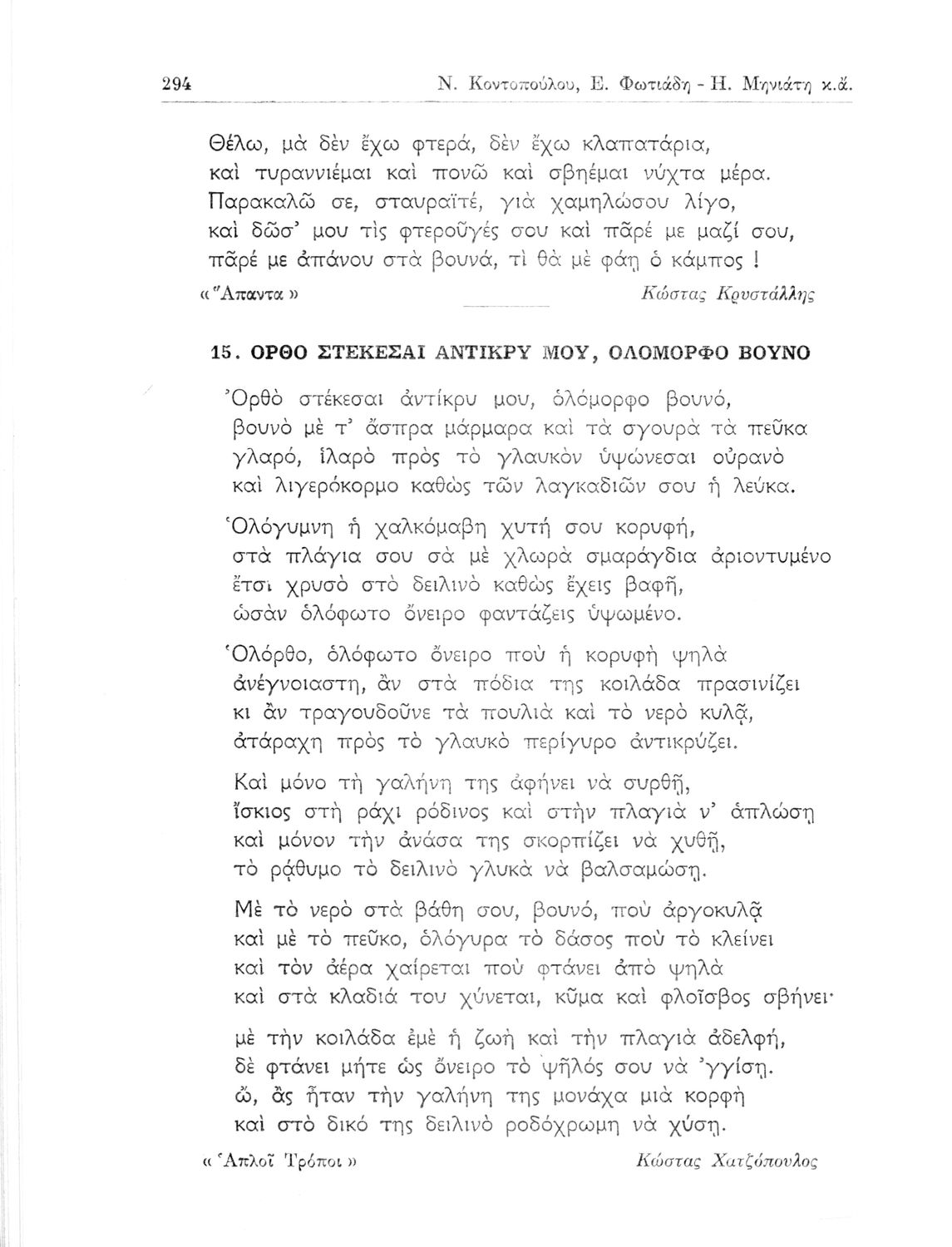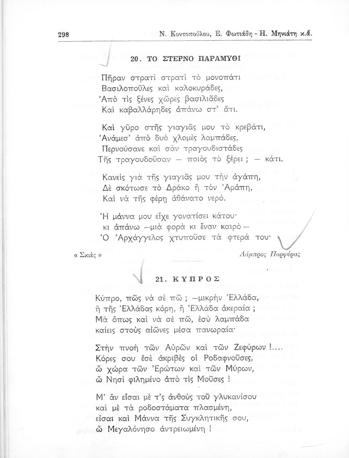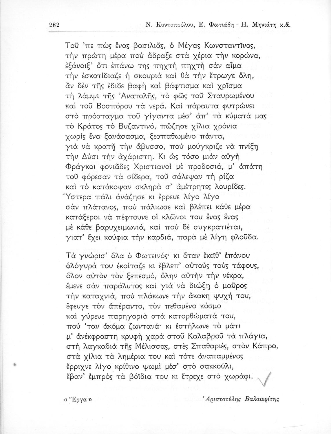 Σχολικό εγχειρίδιο Νέων Ελληνικών Ε΄ Γυμνασίου που περιέχει πεζά και ποιήματα συγγραφέων της βυζαντινής και μεταβυζαντινής περιόδου πατριωτικού και θρησκευτικού περιεχομένου. Περιλαμβάνει και πεζά και ποιήματα
