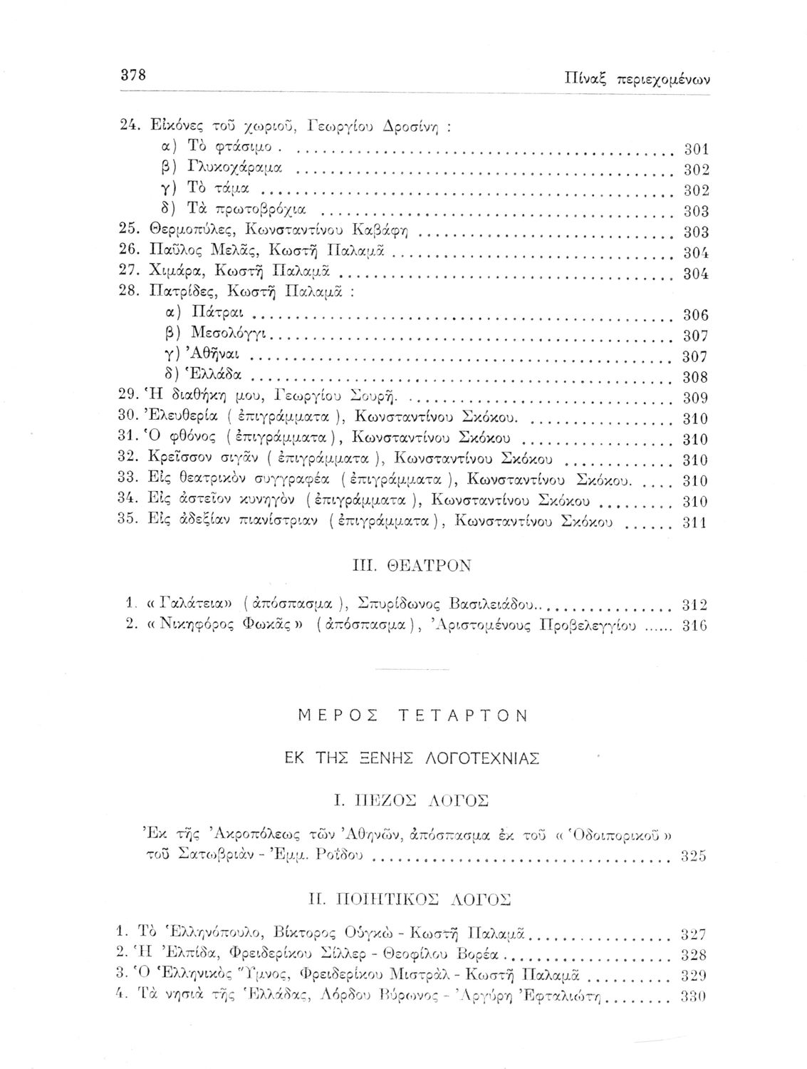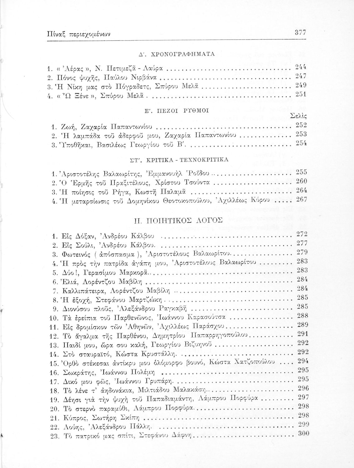 Σχολικό εγχειρίδιο Νέων Ελληνικών Ε΄ Γυμνασίου που περιέχει πεζά και ποιήματα συγγραφέων της βυζαντινής και μεταβυζαντινής περιόδου πατριωτικού και θρησκευτικού περιεχομένου. Περιλαμβάνει και πεζά και ποιήματα Ελλήνων και ξένων συγγραφέων και δημοτικά τραγούδια πατριωτικού περιεχομένου και παράρτημα με βιογραφίες των συγγραφέων και λεξιλόγιο.