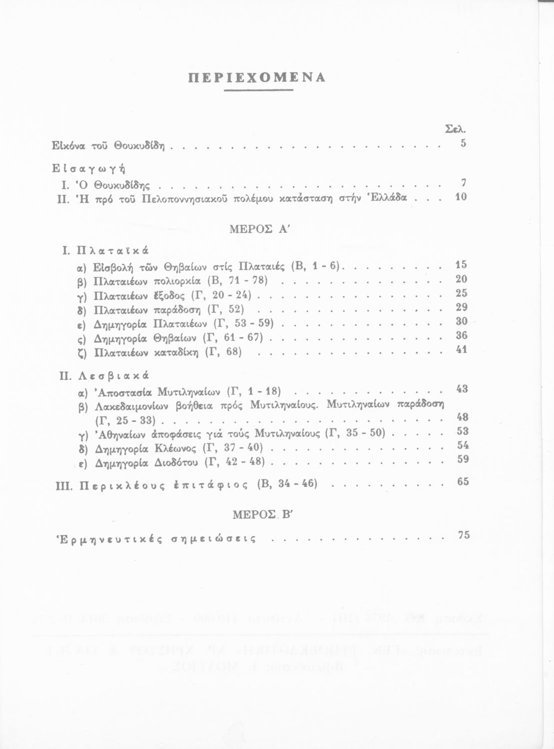 Σχολικό εγχειρίδιο Αρχαίων Ελληνικών Α΄ και Γ΄ Λυκείου που περιέχει εισαγωγή στη ζωή και το έργο του Θουκυδίδη, αποσπάσματα από τα Πλαταιϊκά, τα Λεσβιακά και τον Επιτάφιο του Περικλή και ερμηνευτικές ...