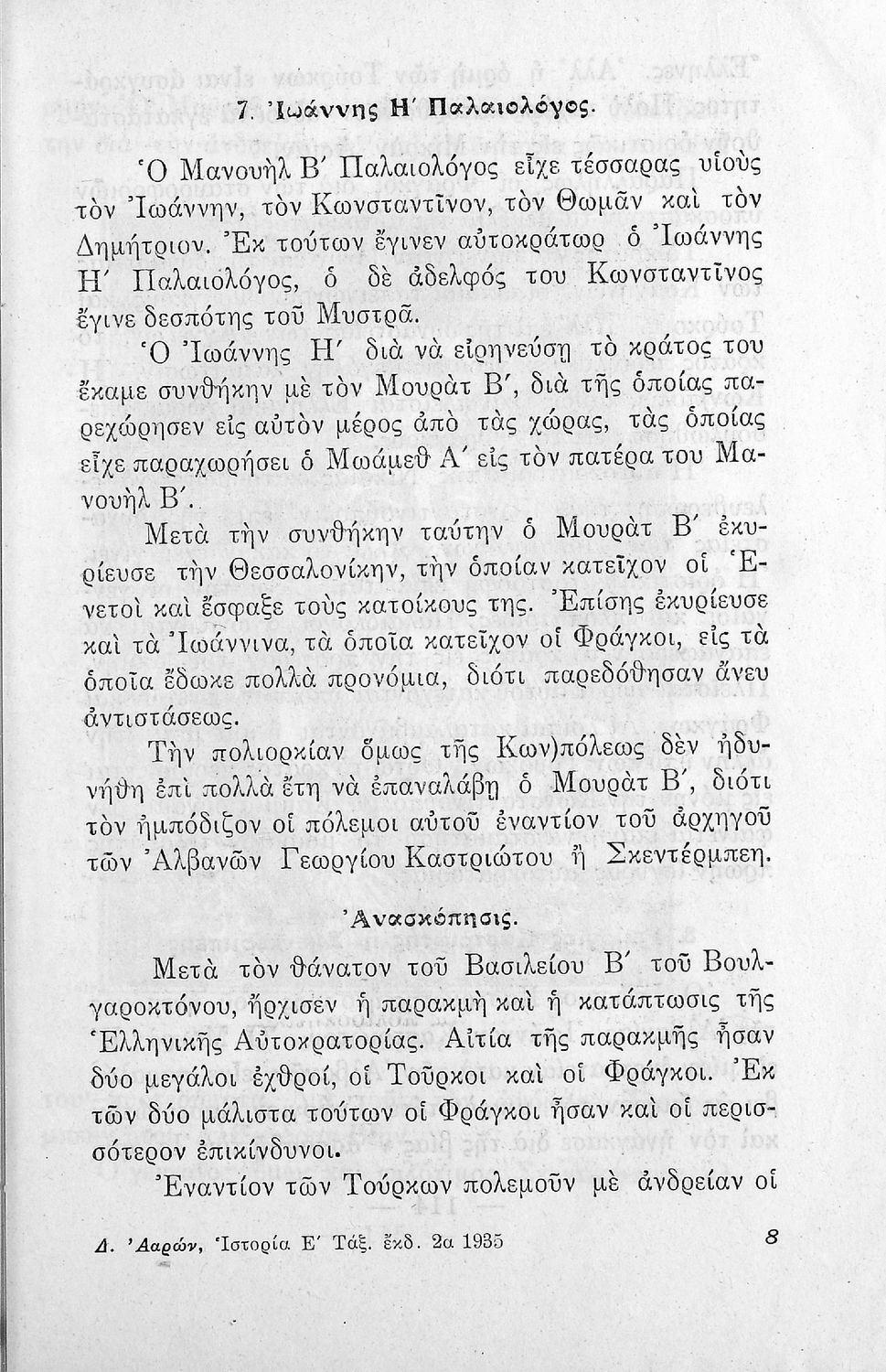 Ιστορία της Βυζαντινής Αυτοκρατορίας. Δια την Πέμπτη Τάξιν των Δημ. Σχολείων