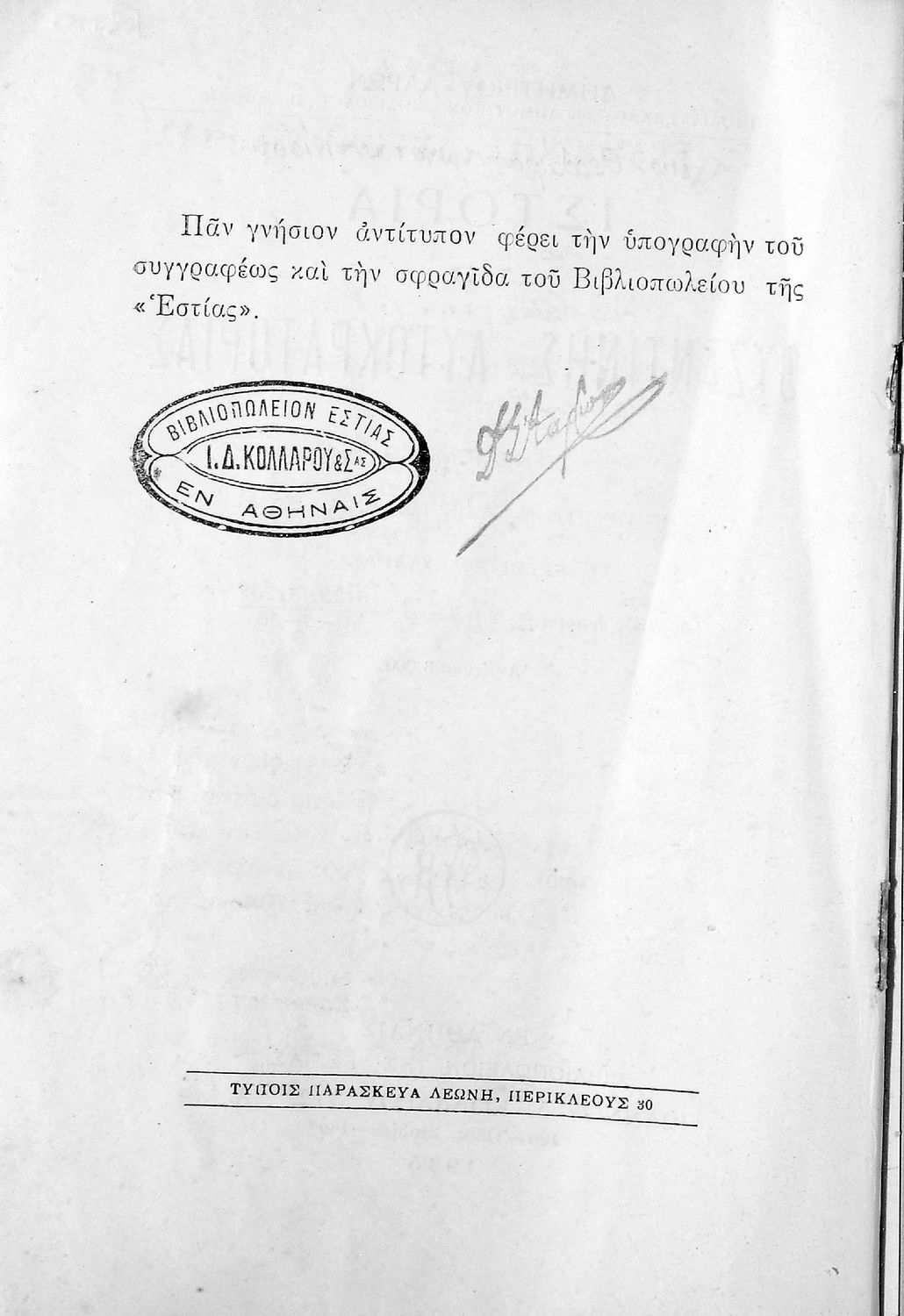 Εκδότης: Ιωάννης Δ. Κολλάρος και ΣΙΑ, Βιβλιοπωλείο της "Εστίας"