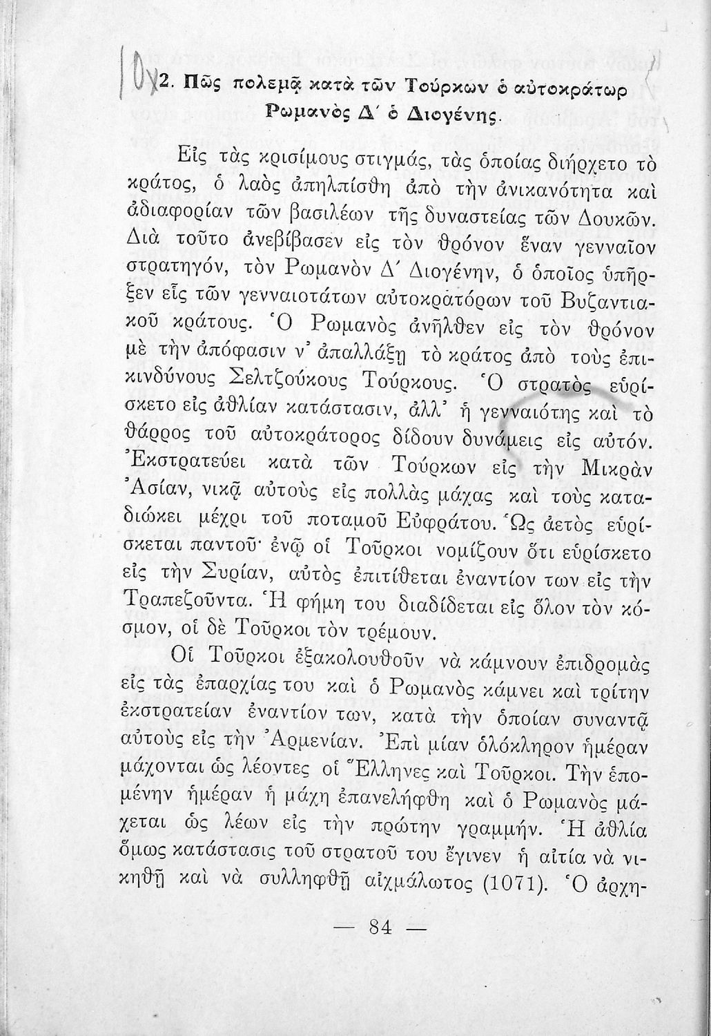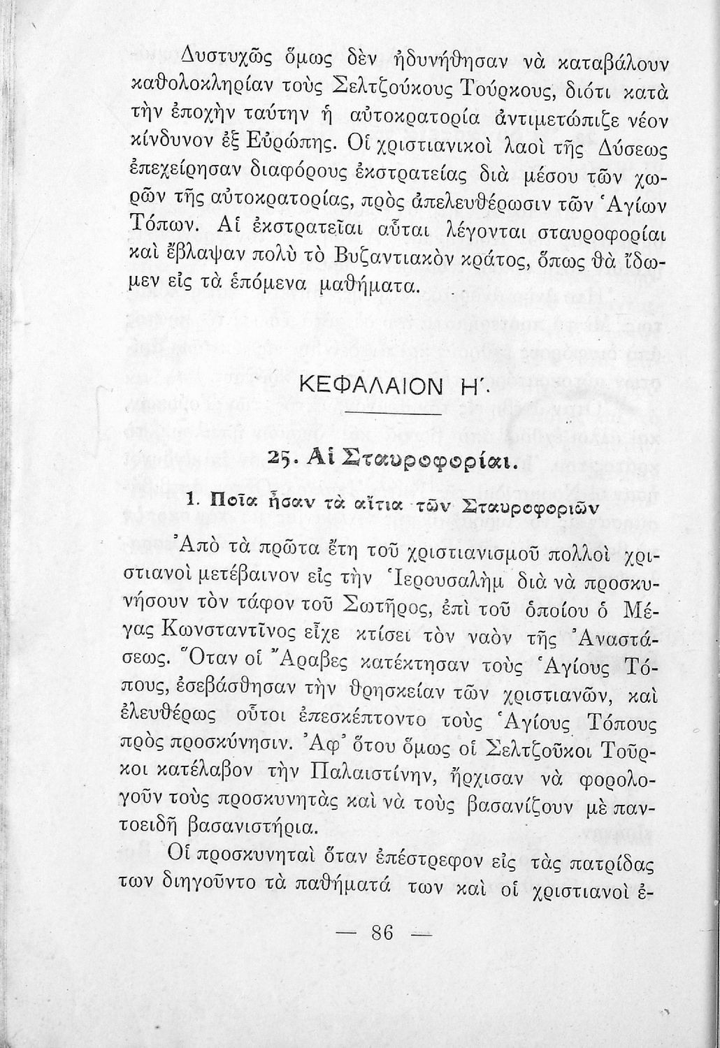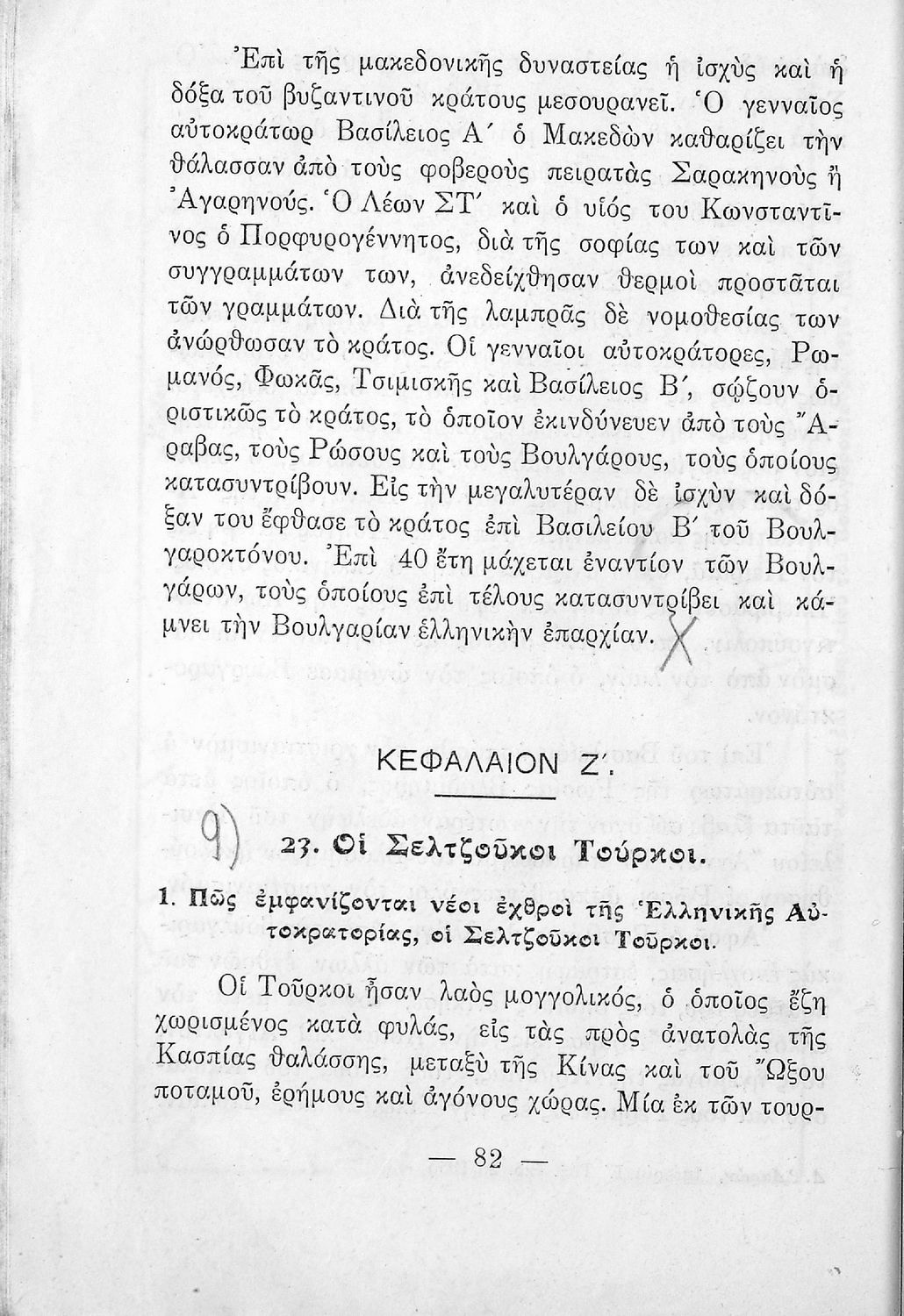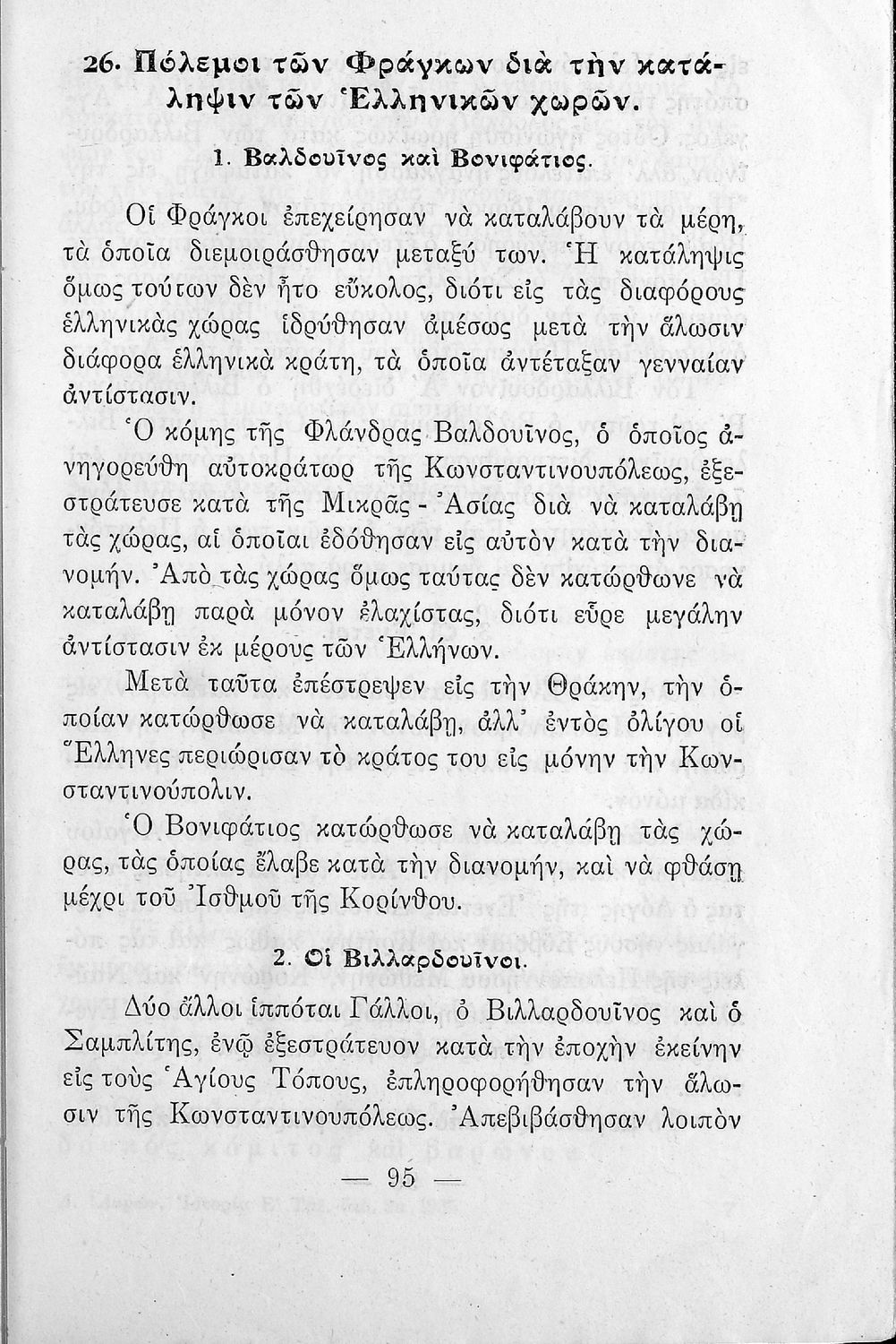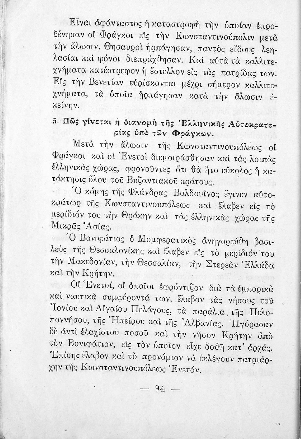 Βαθμίδα εκπαίδευσης: Πρωτοβάθμια Τάξη: Ε' Δημοτικού Μάθημα: Ιστορία Γλώσσα: Απλή καθαρεύουσα Παρουσίαση περιεχομένου: Σχολικό εγχειρίδιο Ιστορίας Ε΄ Δημοτικού που καλύπτει την περίοδο από την ίδρυση της ρωμαϊκής αυτοκρατορίας ως την άλωση της Κωνσταντινούπολης και την Αναγέννηση στην Ευρώπη. Αναφέρεται στην πνευματική κίνηση της εποχής και τις μεγάλες ανακαλύψεις. |