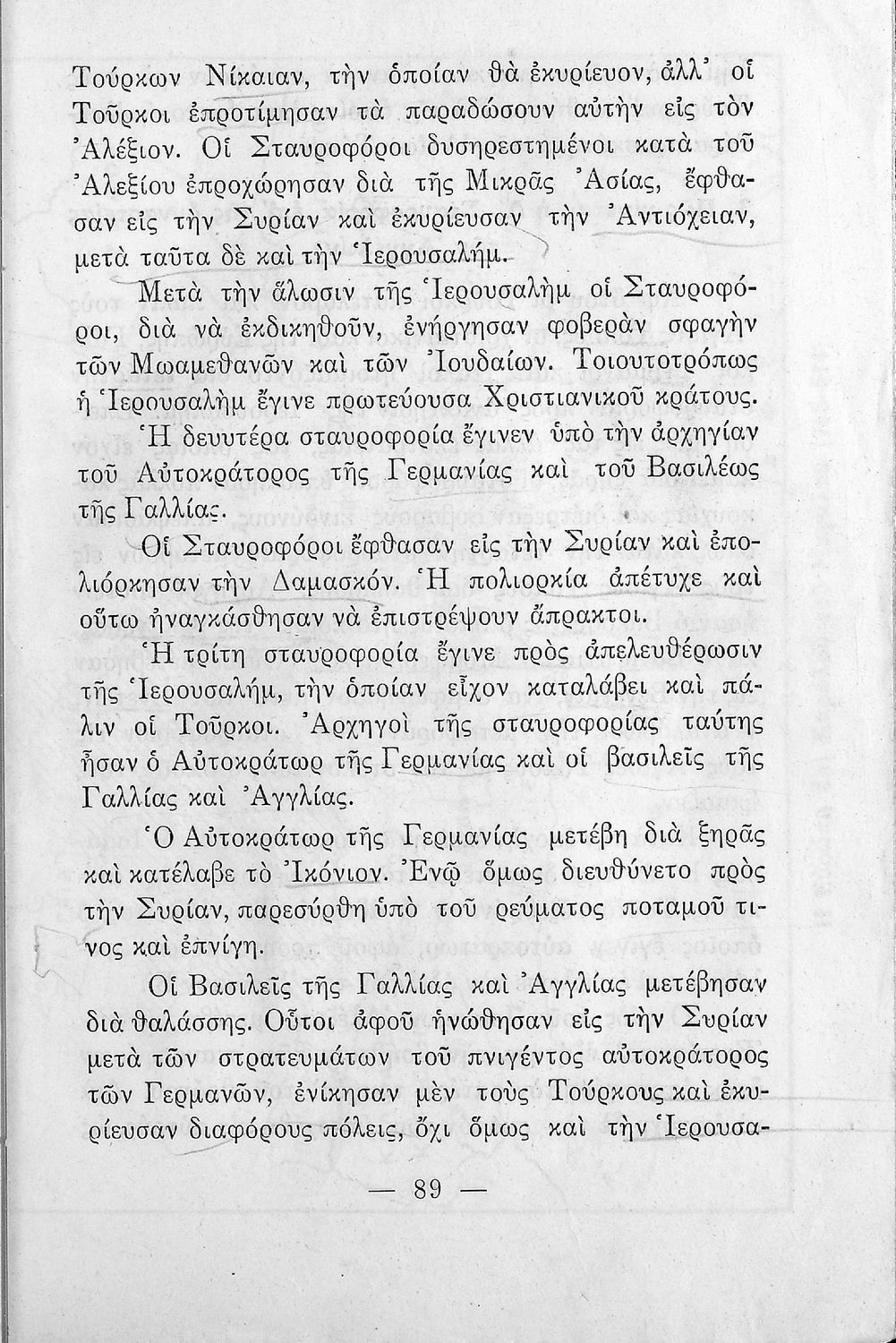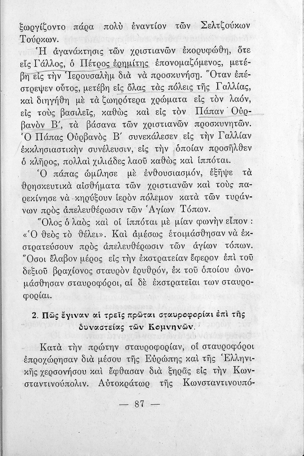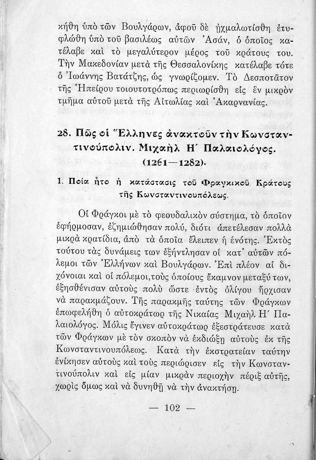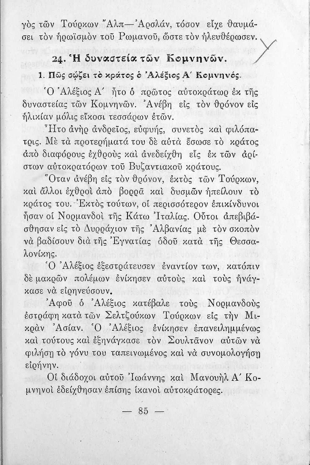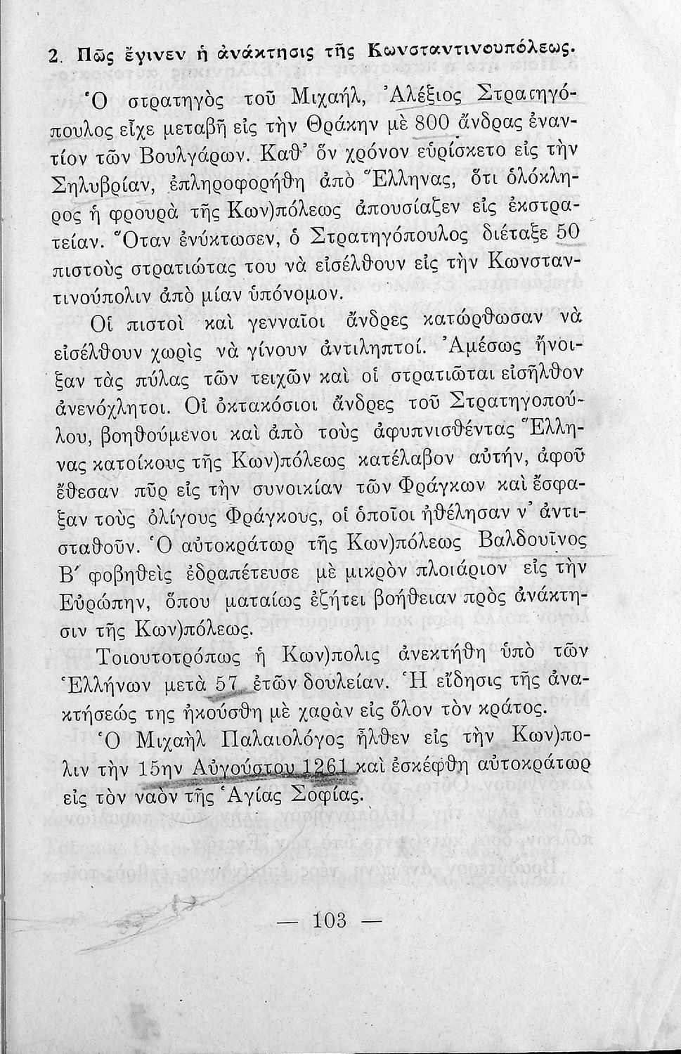 Βαθμίδα εκπαίδευσης: Πρωτοβάθμια Τάξη: Ε' Δημοτικού Μάθημα: Ιστορία Γλώσσα: Απλή καθαρεύουσα Παρουσίαση περιεχομένου: Σχολικό εγχειρίδιο Ιστορίας Ε΄ Δημοτικού που καλύπτει την περίοδο από την ίδρυση της ρωμαϊκής αυτοκρατορίας ως την άλωση της Κωνσταντινούπολης και την Αναγέννηση στην Ευρώπη. Αναφέρεται στην πνευματική κίνηση της εποχής και τις μεγάλες ανακαλύψεις. |
