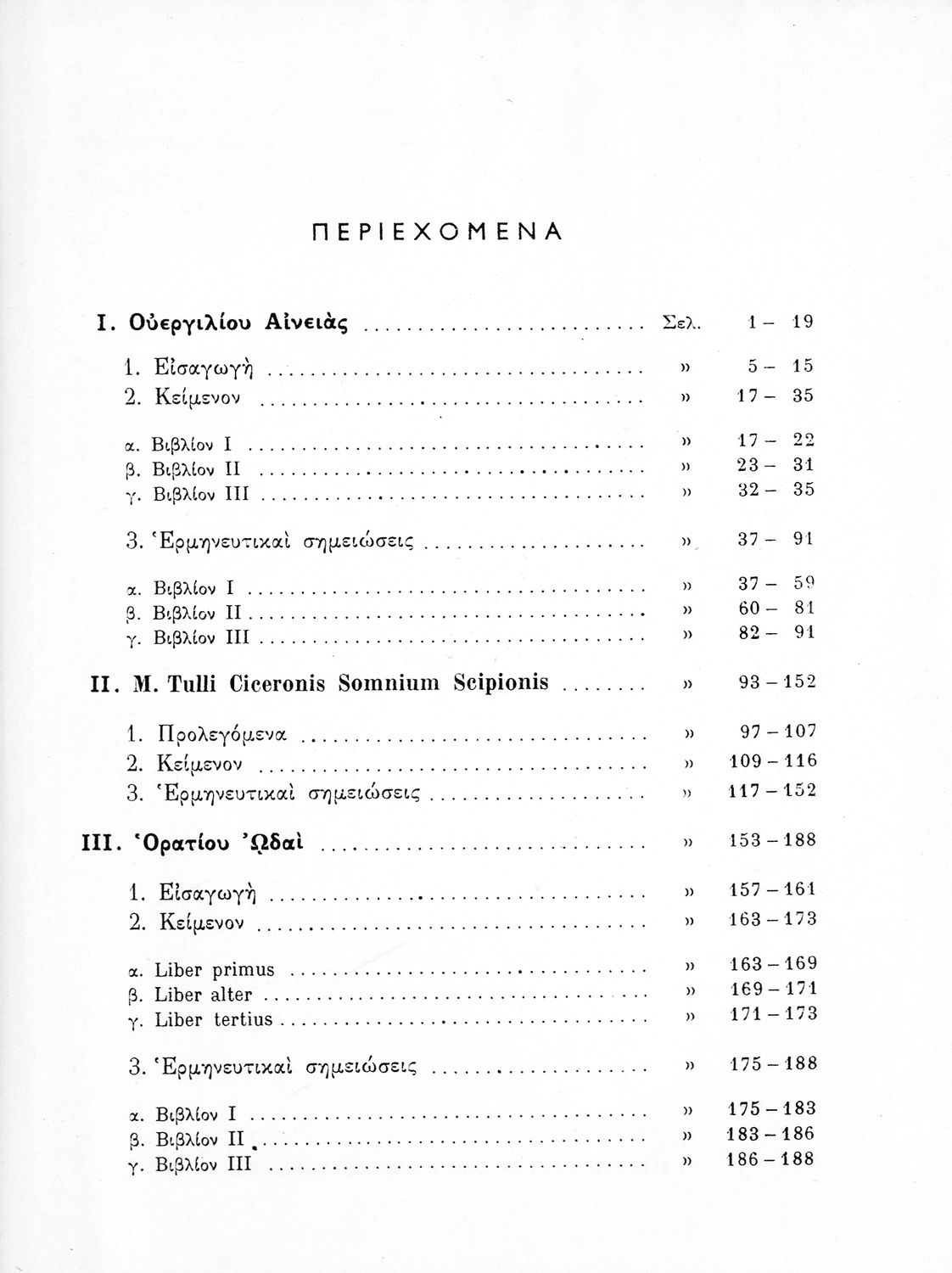 Συγγραφέας: Πόπλιος Βιργίλιος Μάρων (P. Vergilius Maro), Μάρκος Τύλλιος Κικέρωνας (Marcus Tullius Ciceco), Κουίντος Οράτιος Φλάκκος (Q. Horati Flacci), Φωκίωνας Β. Βουσβούνης, Ερρίκος Σκάσσης, Ζαφείριος Ν. Φραγκίσκος (εισαγωγή/σχόλια)