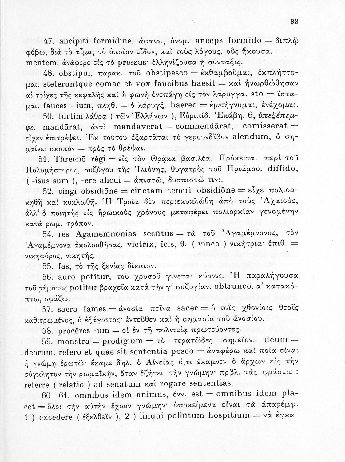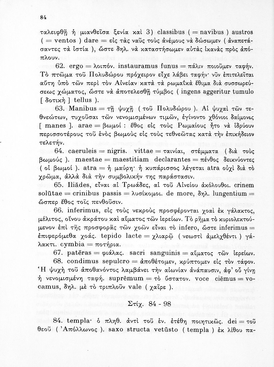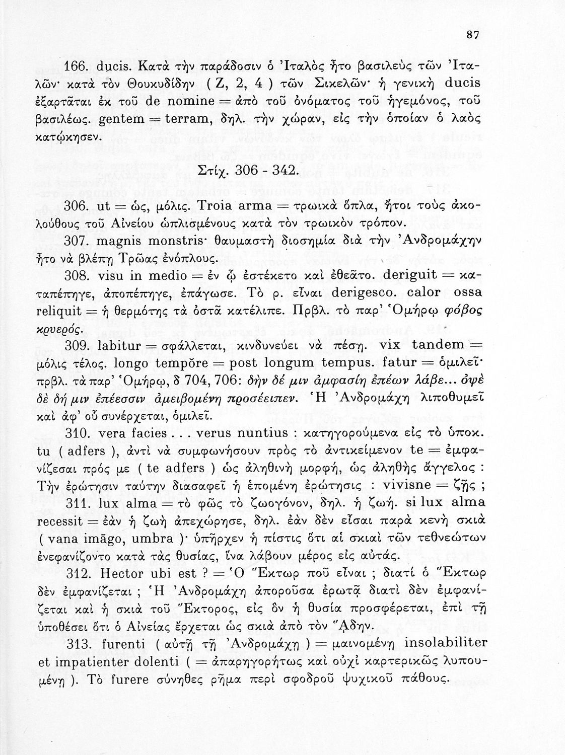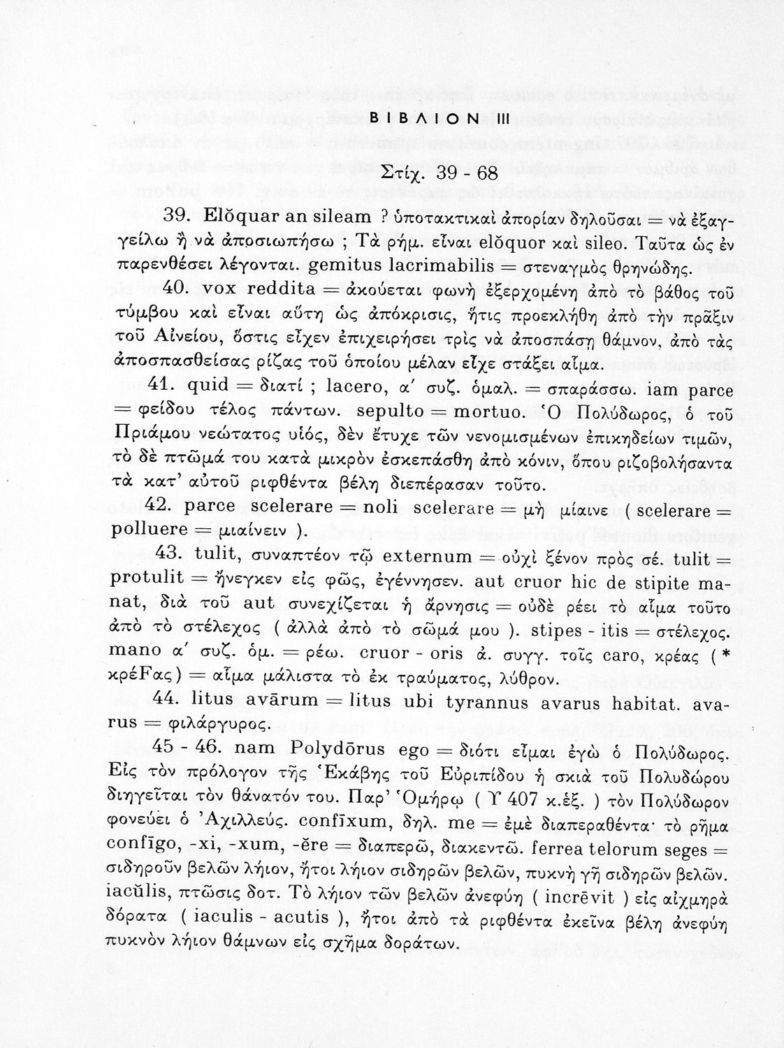 Πόπλιος Βιργίλιος Μάρων (P. Vergilius Maro), Μάρκος Τύλλιος Κικέρωνας (Marcus Tullius Ciceco), Κουίντος Οράτιος Φλάκκος (Q. Horati Flacci), Φωκίωνας Β. Βουσβούνης, Ερρίκος Σκάσσης, Ζαφείριος Ν. Φραγκίσκος (σχόλια)
