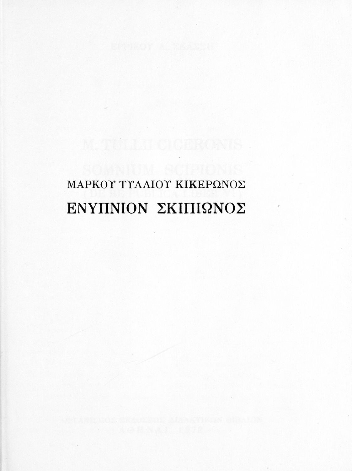 Ουεργιλίου Αινειάς (Εκλογαί), M. Tulli Ciceronis Somnium Scipionis,Οράτιου Ωδαί