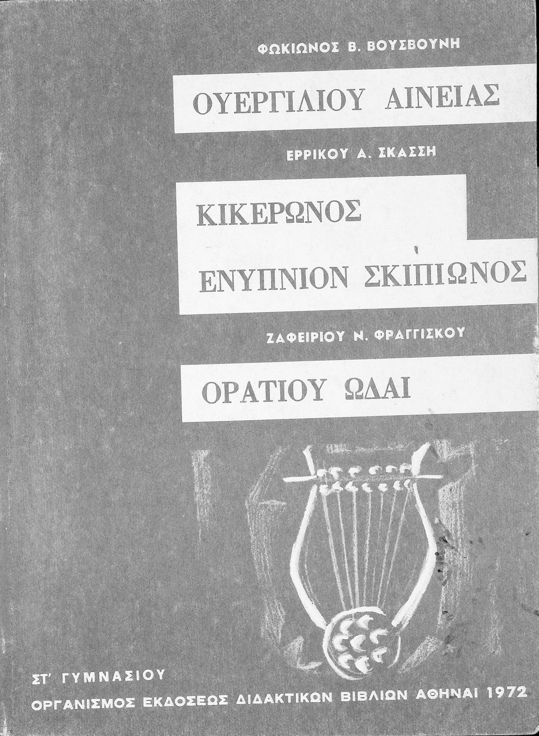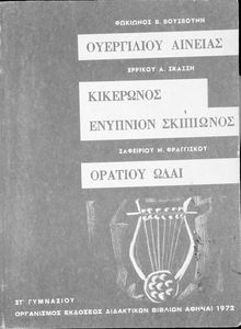 Κωδικός αναγνώρισης: 01-46109 Τίτλος: Ουεργιλίου Αινειάς (Εκλογαί), M. Tulli Ciceronis Somnium Scipionis,Οράτιου Ωδαί Συγγραφέας: Πόπλιος Βιργίλιος Μάρων (P. Vergilius Maro), Μάρκος Τύλλιος Κικέρωνας (Marcus Tullius Ciceco), Κουίντος Οράτιος Φλάκκος (Q. Horati Flacci), Φωκίωνας Β. Βουσβούνης, Ερρίκος Σκάσσης, Ζαφείριος Ν. Φραγκίσκος (εισαγωγή/σχόλια) Εικονογράφος: Λουΐζα Μοντεσάντου (εξώφυλλο) Μέγεθος και υπόστρωμα: Σχολικό εγχειρίδιο, 20εκ., μαλακό εξώφυλλο, 188 σελίδες. |