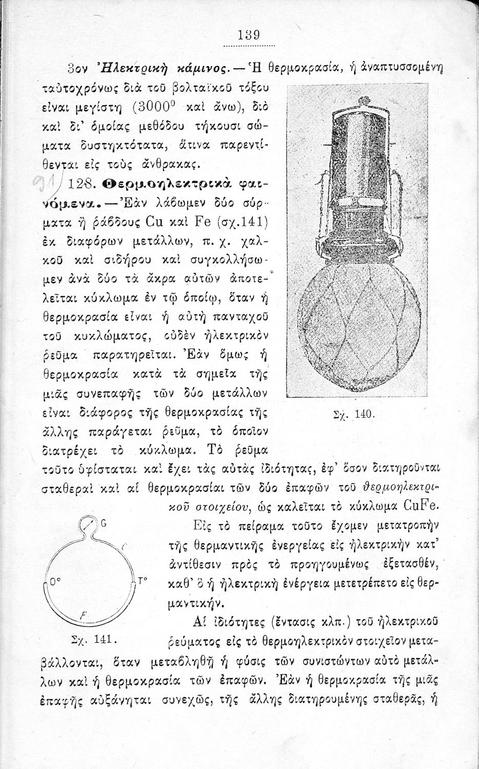 Σχολικό εγχειρίδιο Φυσικής και Χημείας για τη Δ΄ Γυμνασίου που περιλαμβάνει στοιχεία ακουστικής, οπτικής, μαγνητισμού, ηλεκτρισμού και οργανικής χημείας. Ο συγγραφέας ήταν καθηγητής της Φυσικής στο Εθνικό Πανεπιστήμιο.