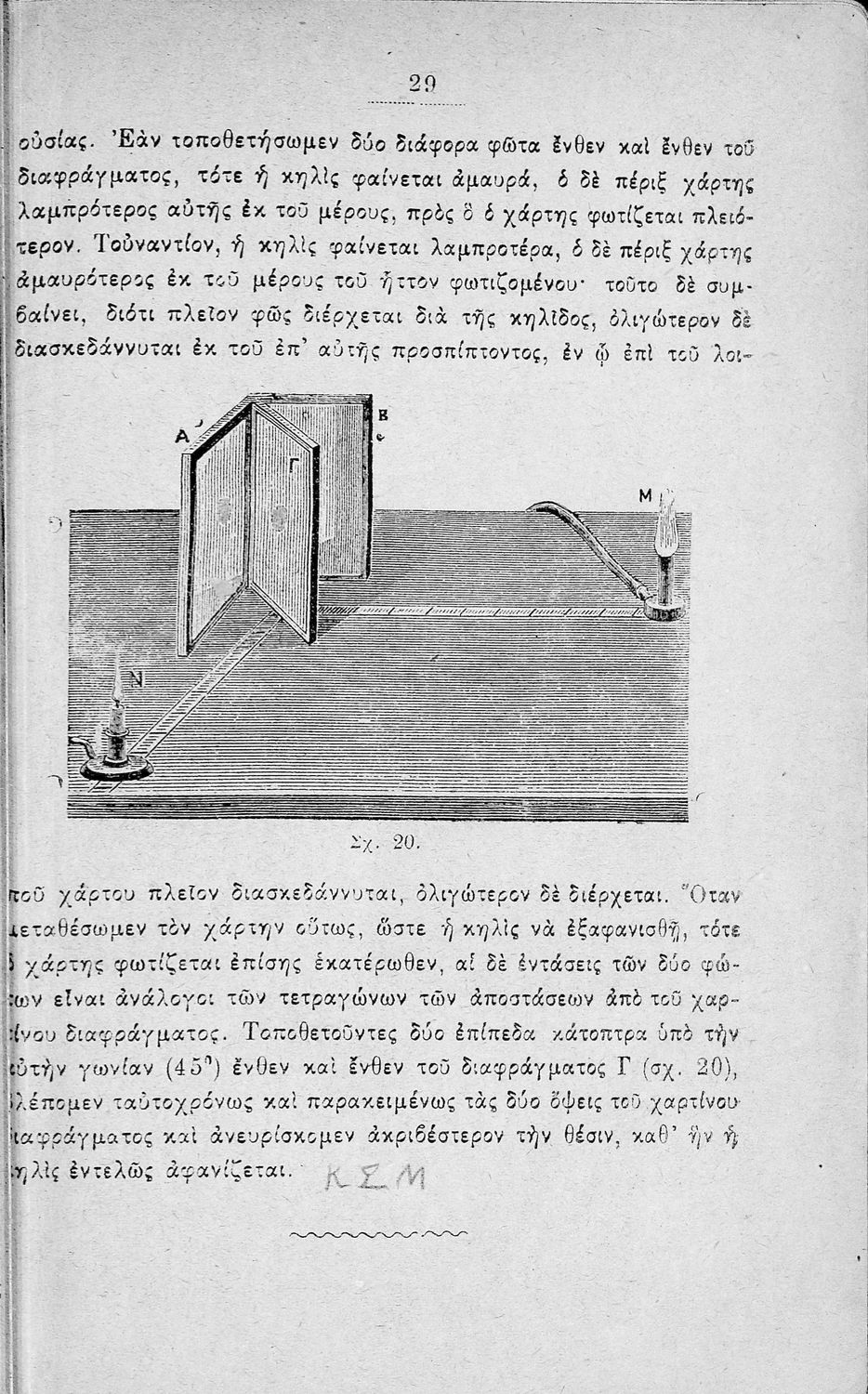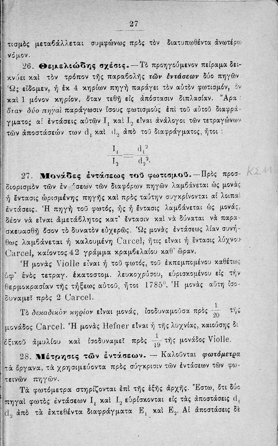 Σχολικό εγχειρίδιο Φυσικής και Χημείας για τη Δ΄ Γυμνασίου που περιλαμβάνει στοιχεία ακουστικής, οπτικής, μαγνητισμού, ηλεκτρισμού και οργανικής χημείας. Ο συγγραφέας ήταν καθηγητής της Φυσικής στο Εθνικό Πανεπιστήμιο.