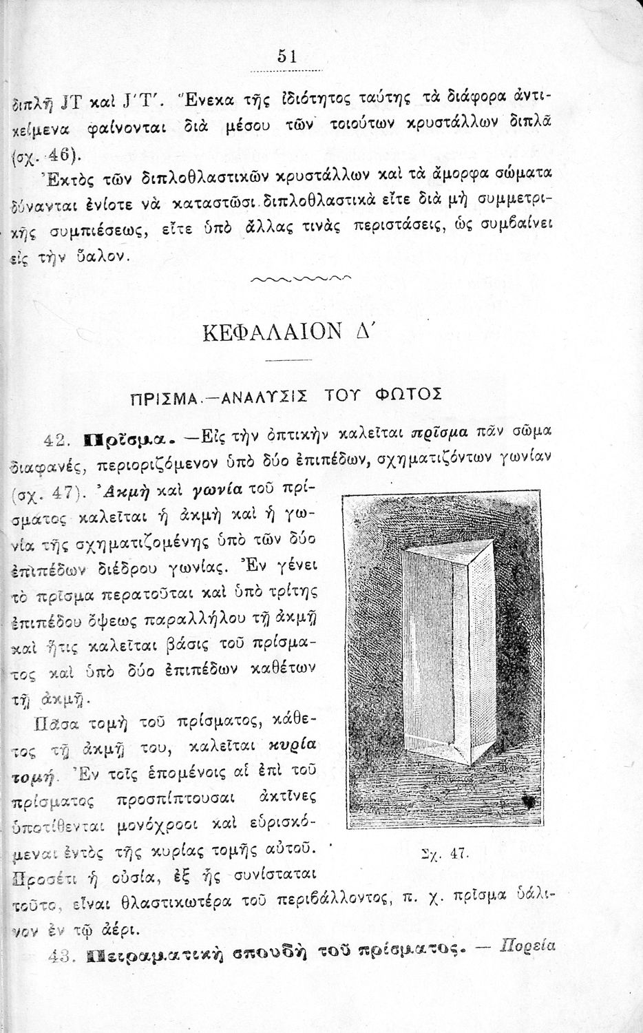 Παρουσίαση περιεχομένου: Σχολικό εγχειρίδιο Φυσικής και Χημείας για τη Δ΄ Γυμνασίου που περιλαμβάνει στοιχεία ακουστικής, οπτικής, μαγνητισμού, ηλεκτρισμού και οργανικής χημείας. Ο συγγραφέας ήταν καθηγητής της Φυσικής στο Εθνικό Πανεπιστήμιο.