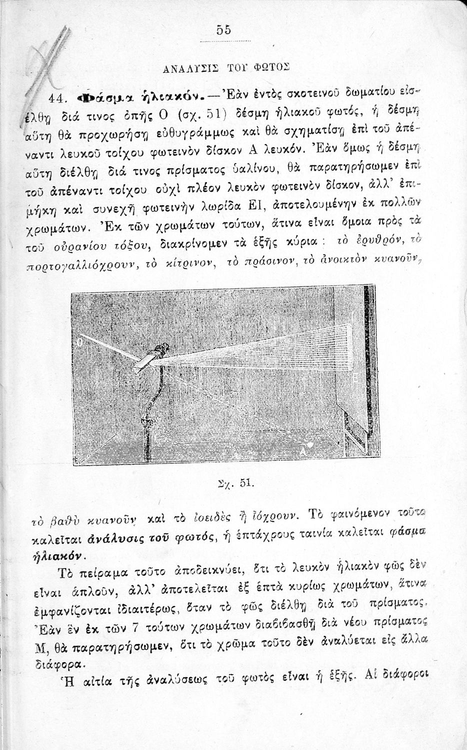 Σχολικό εγχειρίδιο Φυσικής και Χημείας για τη Δ΄ Γυμνασίου που περιλαμβάνει στοιχεία ακουστικής, οπτικής, μαγνητισμού, ηλεκτρισμού και οργανικής χημείας. Ο συγγραφέας ήταν καθηγητής της Φυσικής στο Εθνικό Πανεπιστήμιο.
