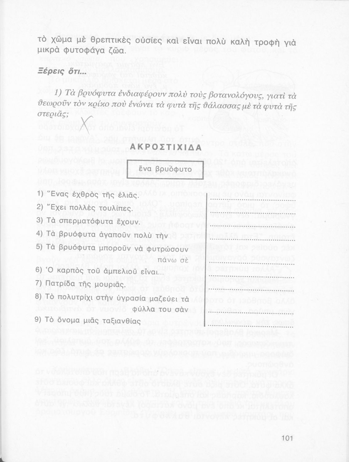 Πρόκειται για βιβλίο Φυτολογίας και Ζωολογίας για την Γ΄ Δημοτικού. Περιέχει στοιχεία για τα μέρη του φυτού, για φυτά και ζώα που υπάρχουν στον κήπο, τον ανθόκηπο και τον λαχανόκηπο.