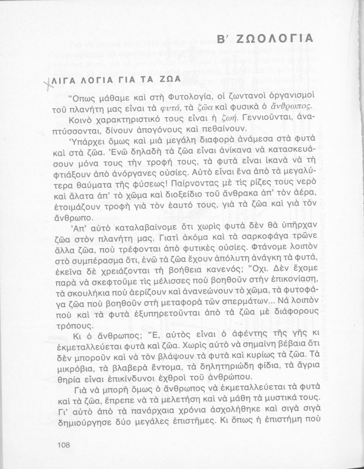 Σχολικό εγχειρίδιο Φυτολογίας και Ζωολογίας για τη Δ΄ Δημοτικού που γράφτηκε στη σειρά εκδόσεων της Σχολή Μωραΐτη. Παρουσιάζει πλήθος φυτών και ζώων και εστιάζει στην αναπαραγωγή, τους εχθρούς, τις διατροφικές