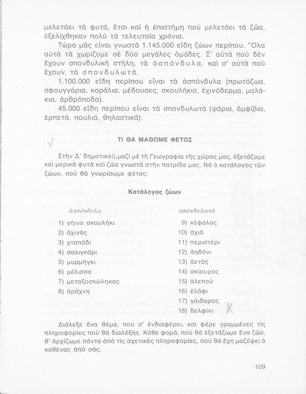 Φυτά και ζώα της πατρίδας μας, Δ΄ Δημοτικού