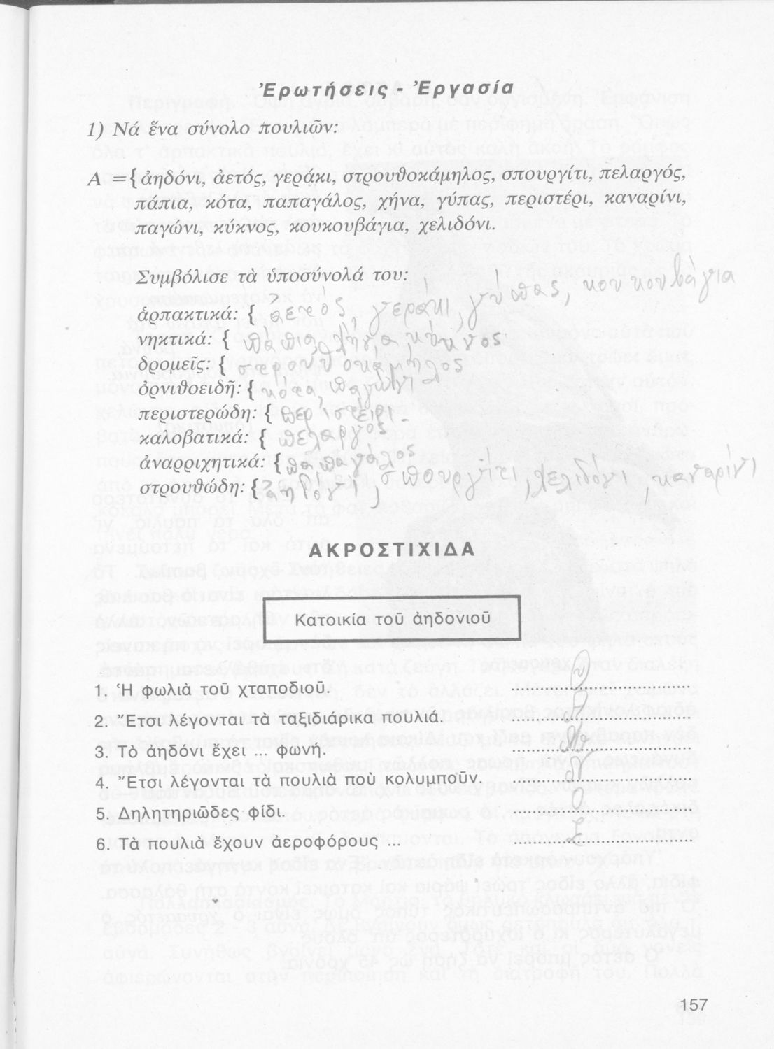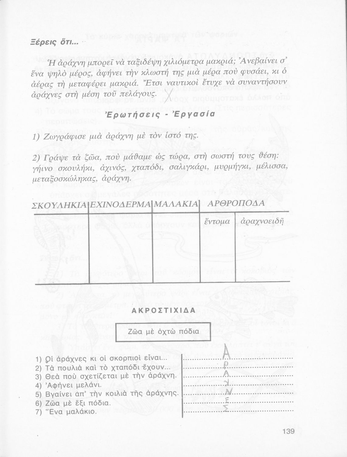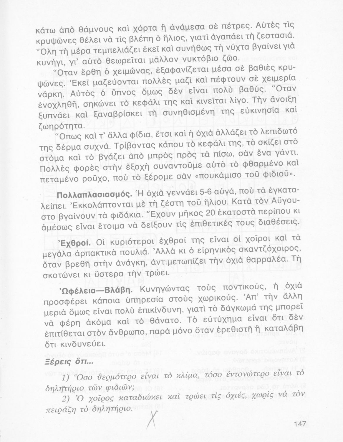 Φυτά και ζώα της πατρίδας μας, Δ΄ Δημοτικού