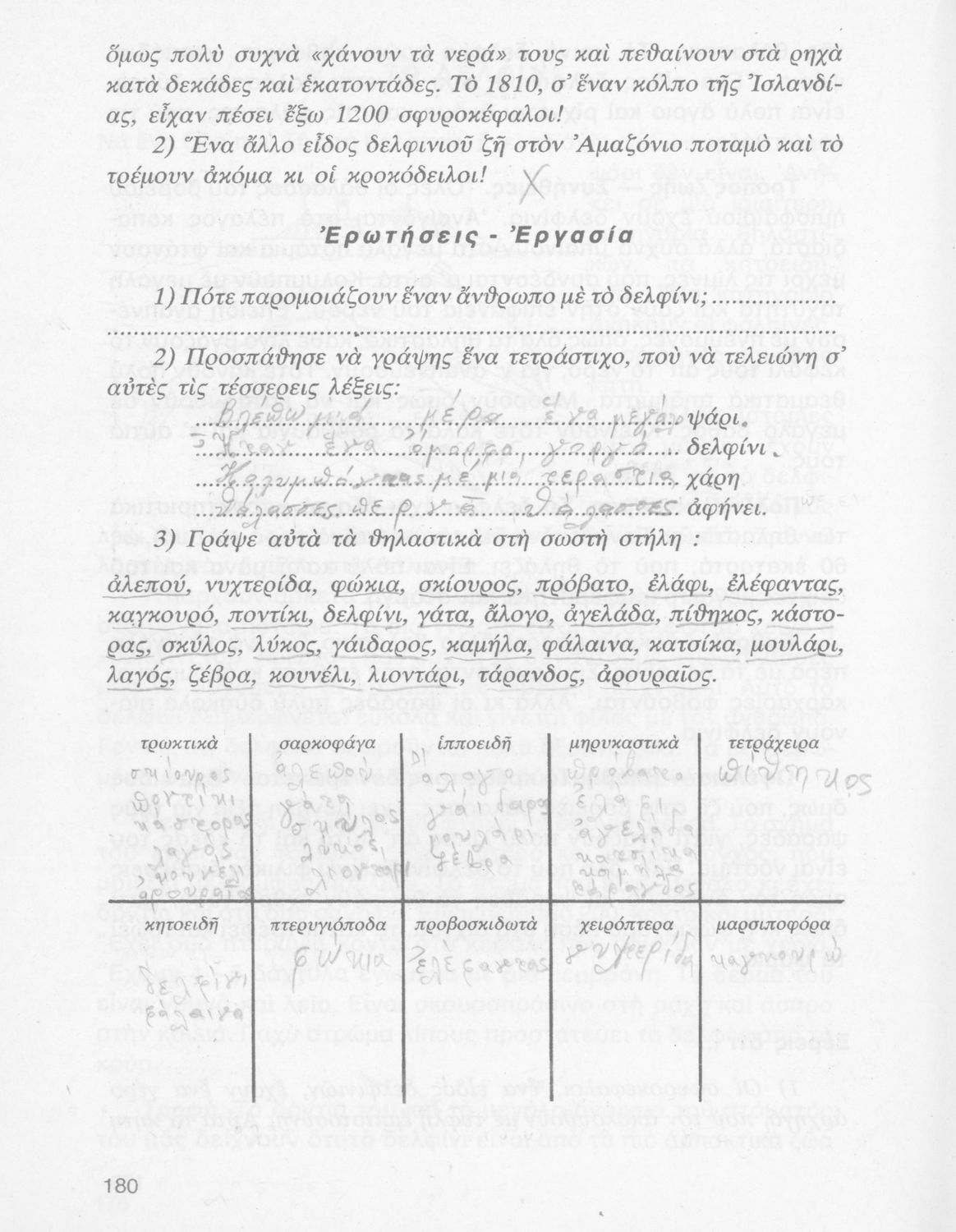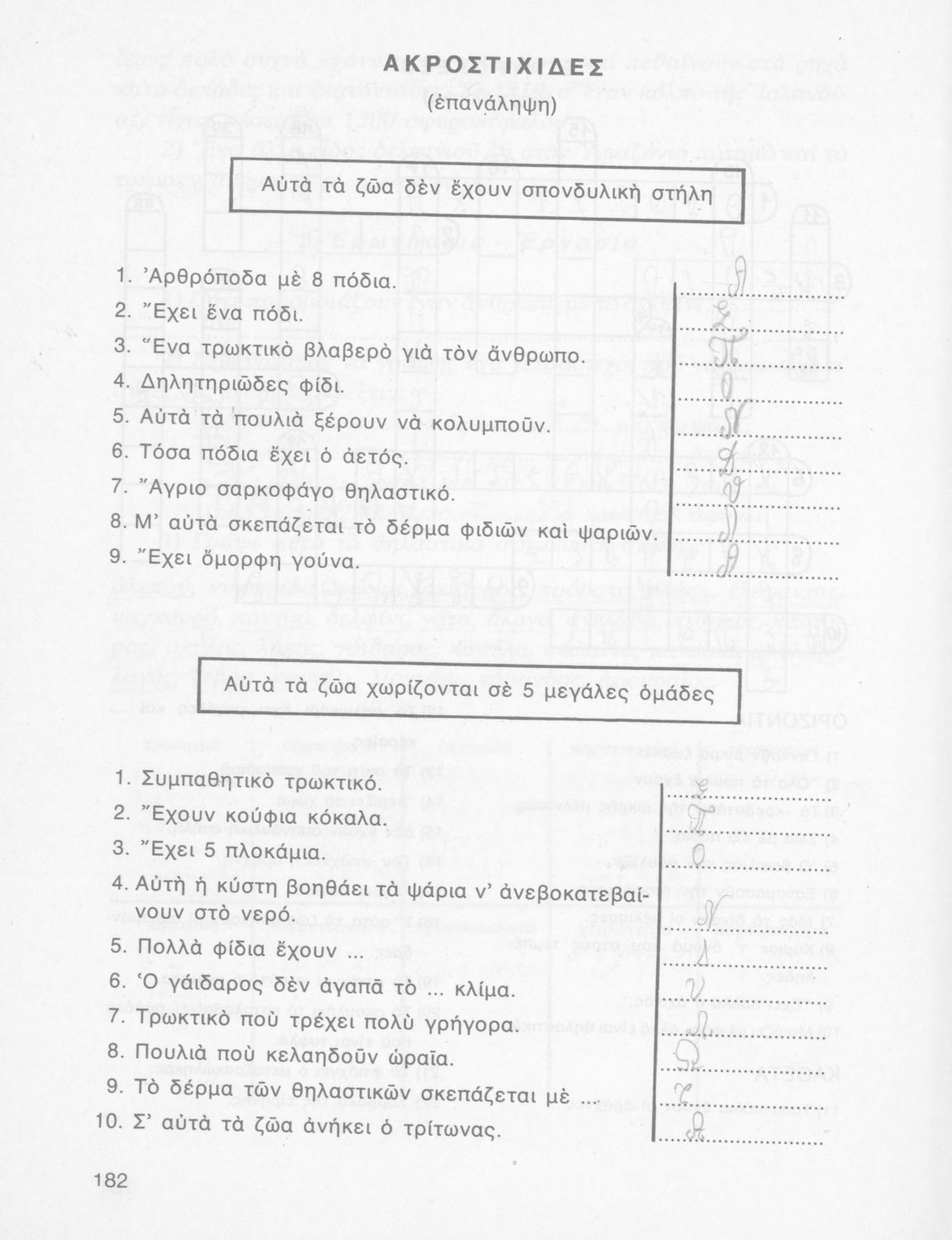 Φυτά και ζώα της πατρίδας μας, Δ΄ Δημοτικού